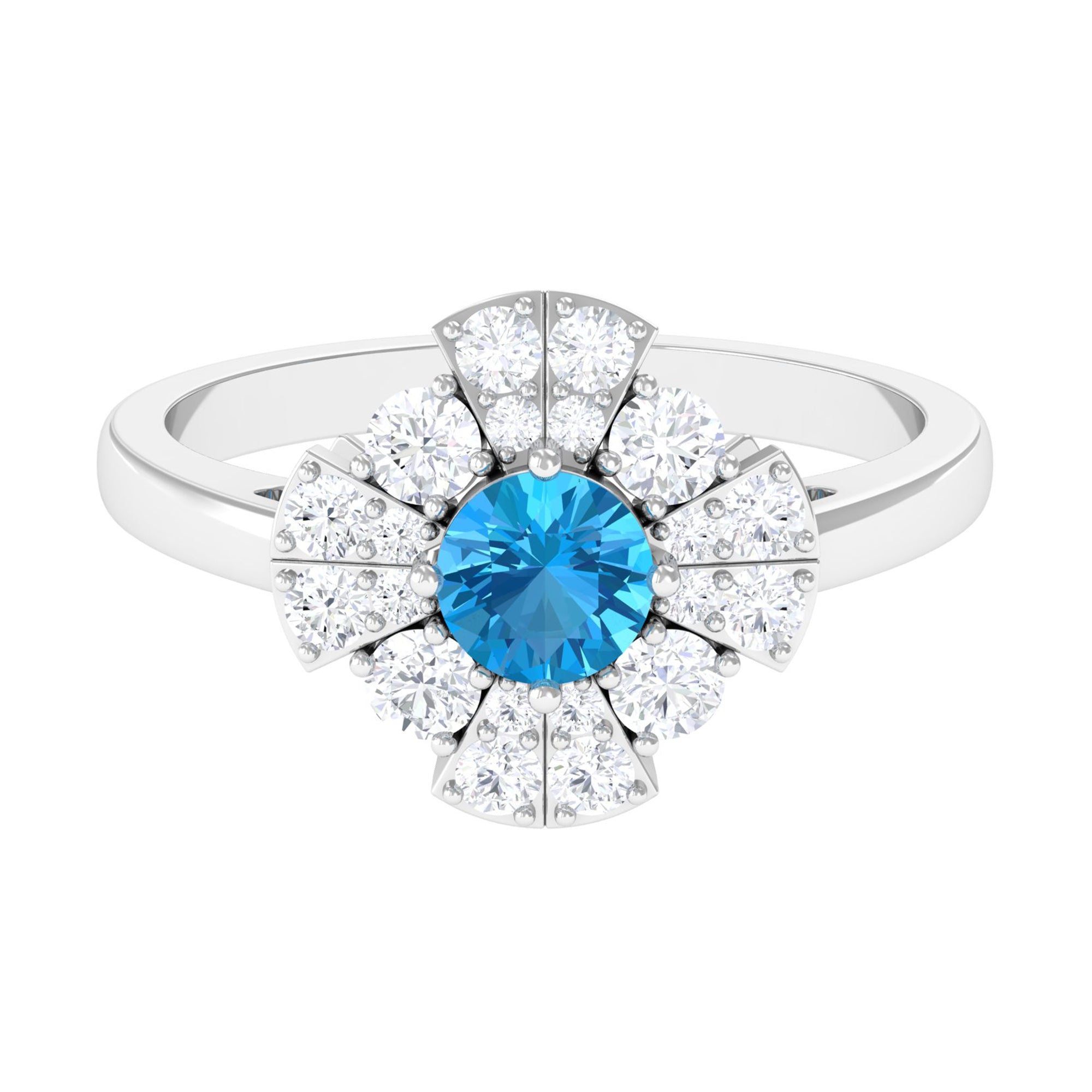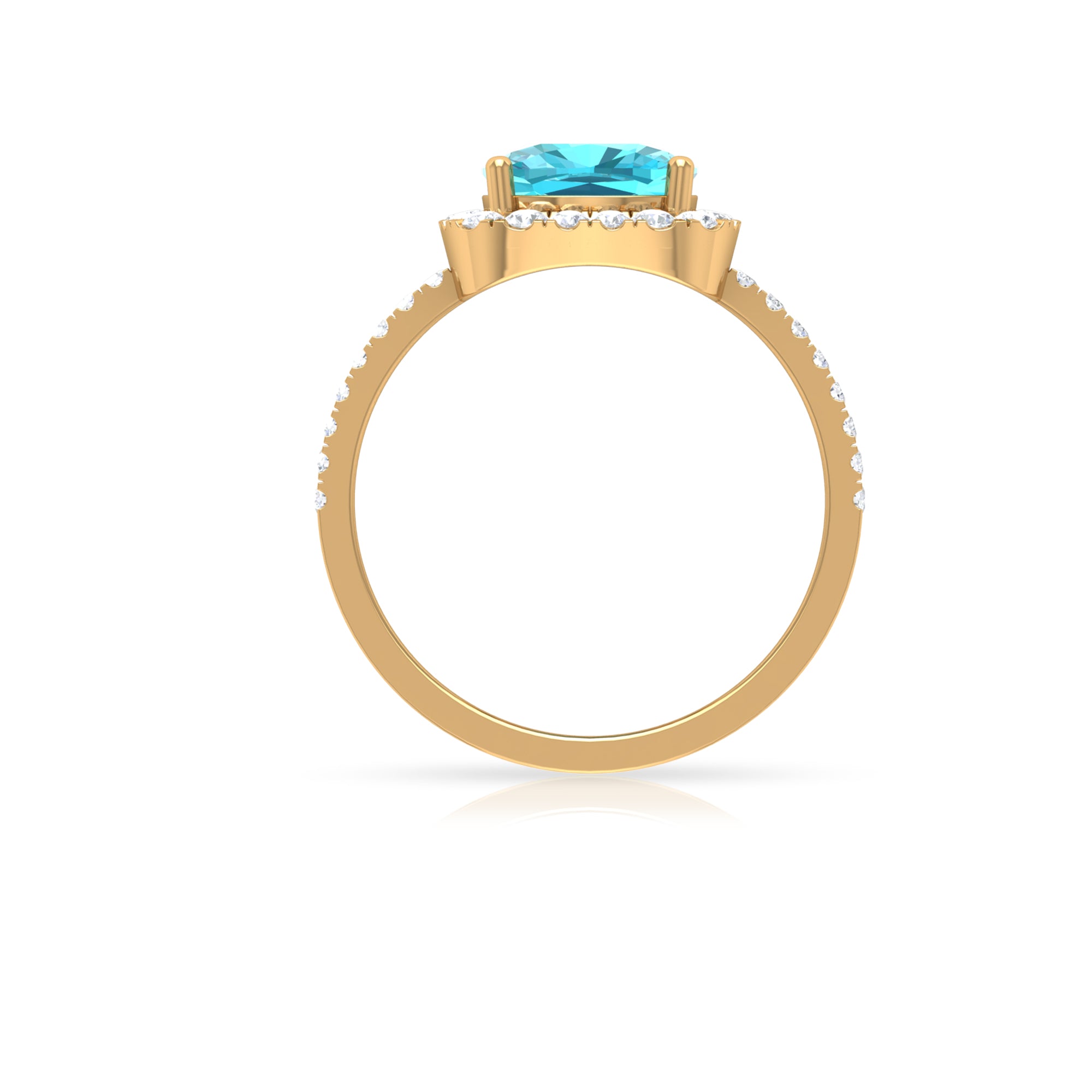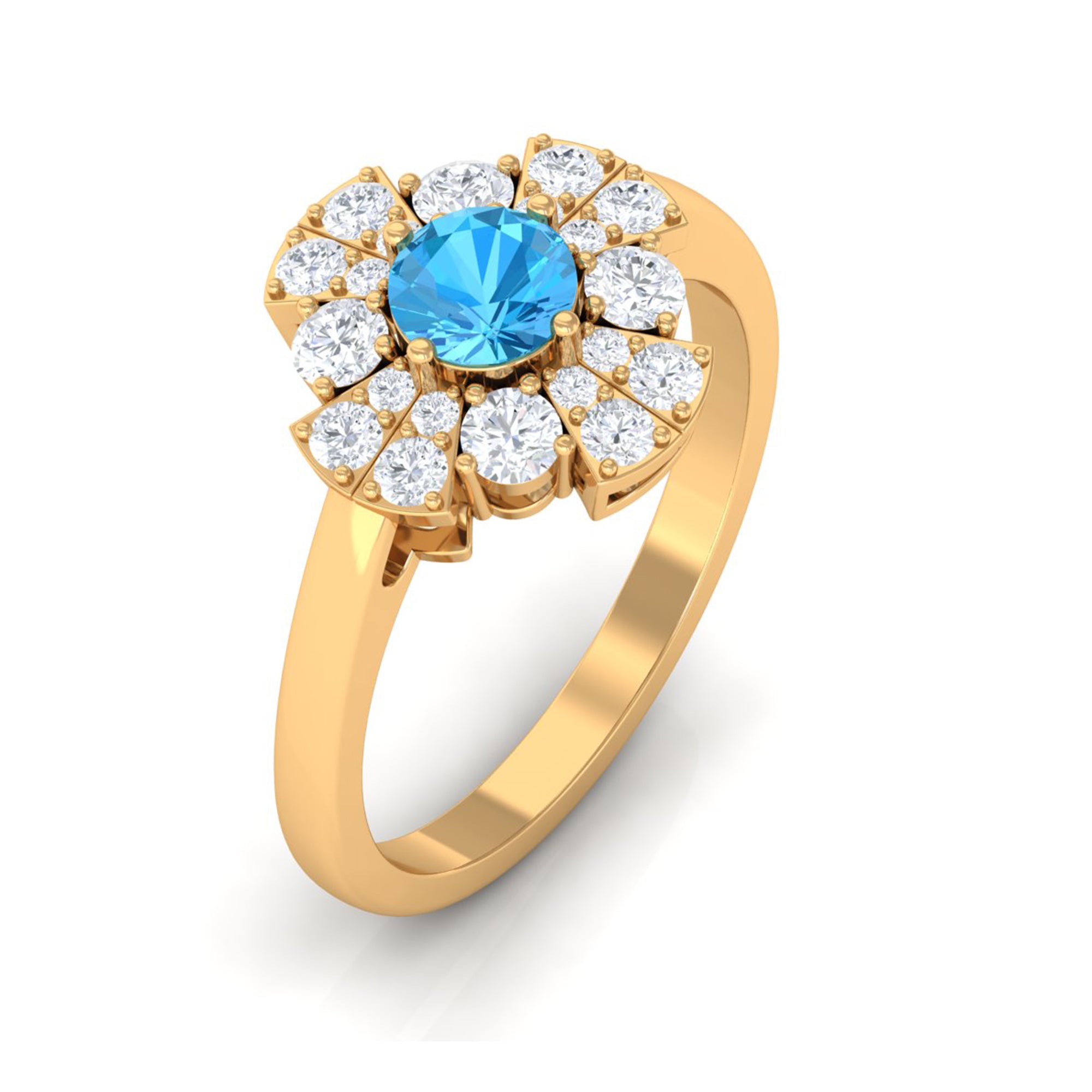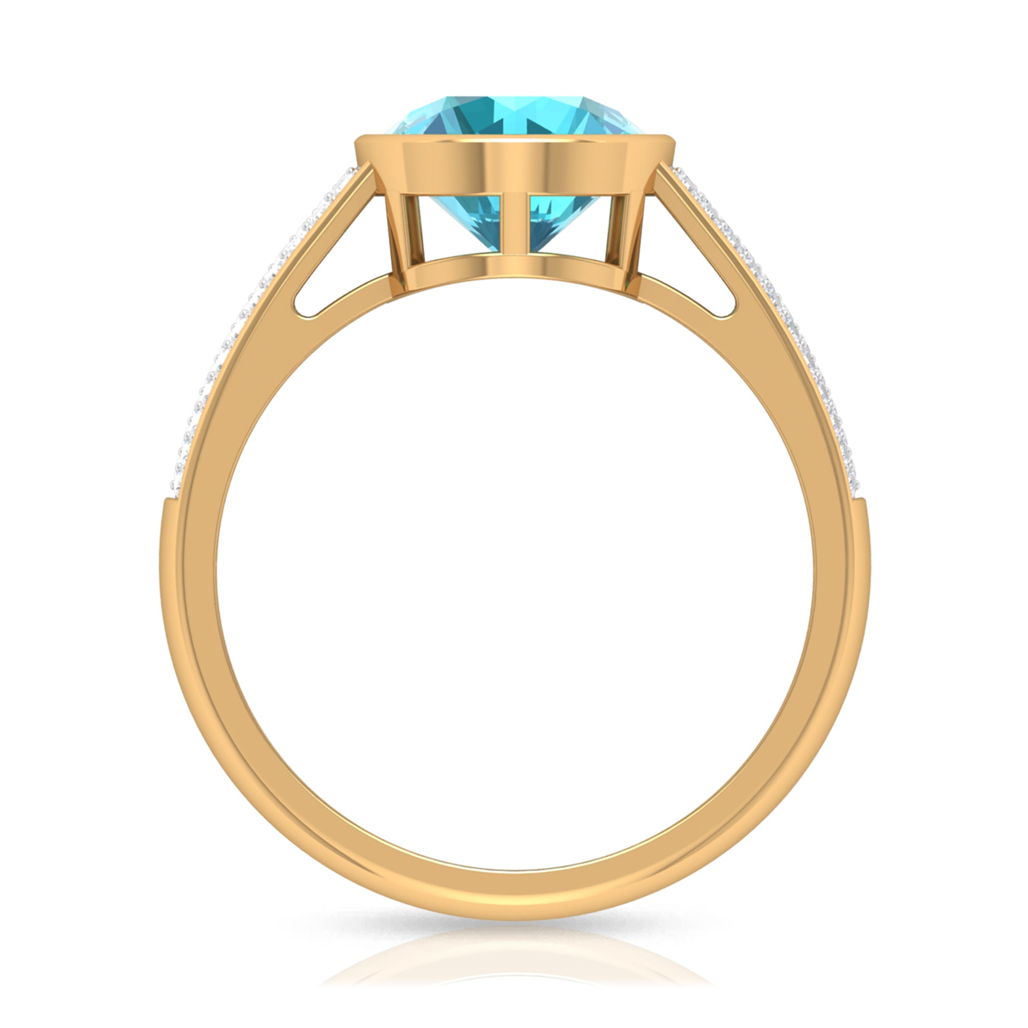 For the amalgamation of ring designs, our experts constantly experiment with different gold colors and Swiss blue topaz shapes to curate out of the box designs of Swiss blue topaz ring in yellow gold, white gold and rose gold. Popular & diverse shapes like oval, round, princess and cushion, further helps in broadening Swiss blue topaz engagement ring styles. Also, fine metal details and embellishments helps us in crafting vintage style blue topaz rings and many more to best suit your personal style.