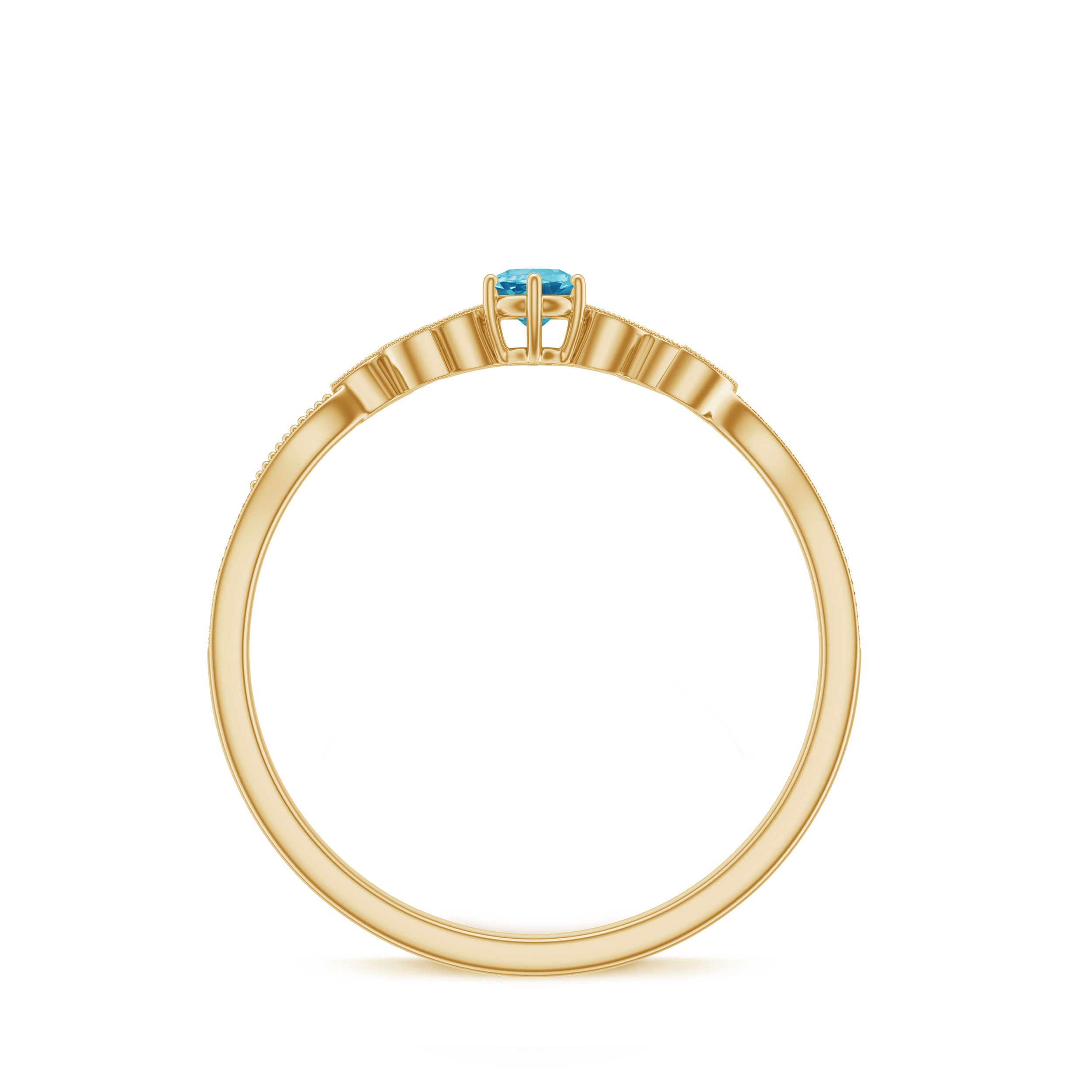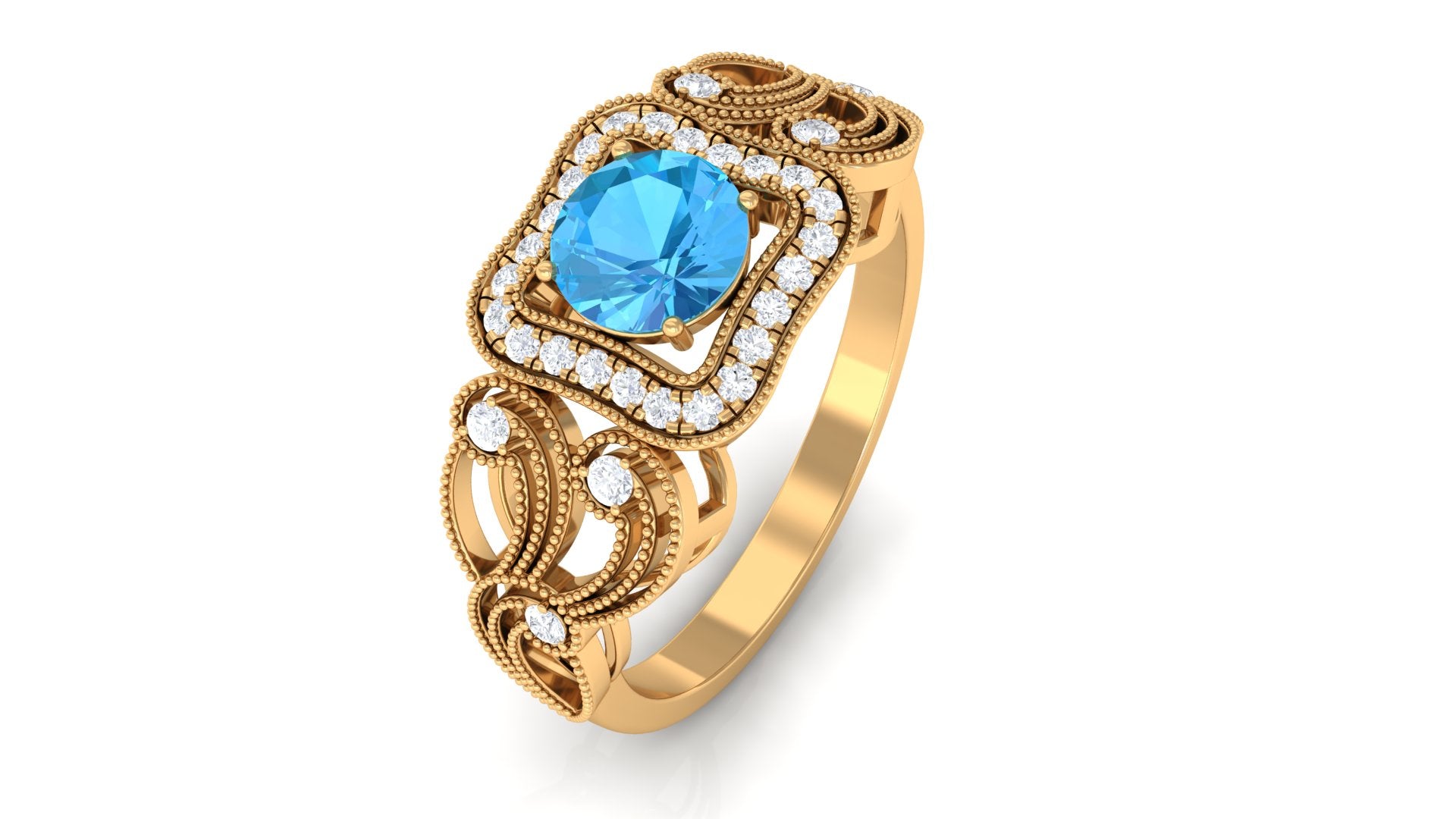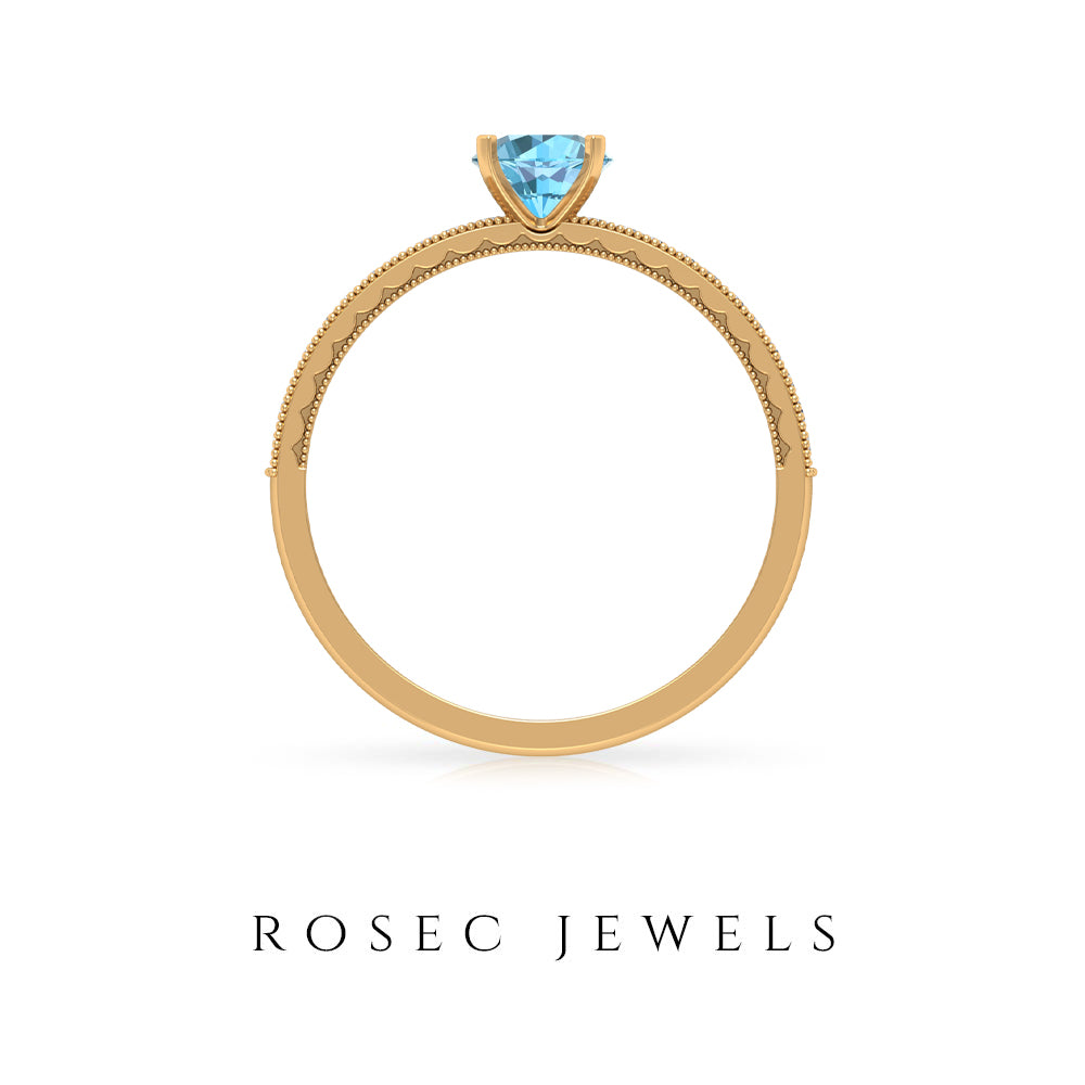 A Vintage Swiss Blue Topaz Ring is reminiscent of the iconic styles that were popular back in the art-forward Edwardian, Victorian, and Art Deco Eras. It features ornate designs that breathe life into abstract patterns, heavy migraine and filigree detailing, and other retro engravings. Needless to mention, it makes your Swiss Blue Topaz Ring look nothing short of a wearable piece of art.
