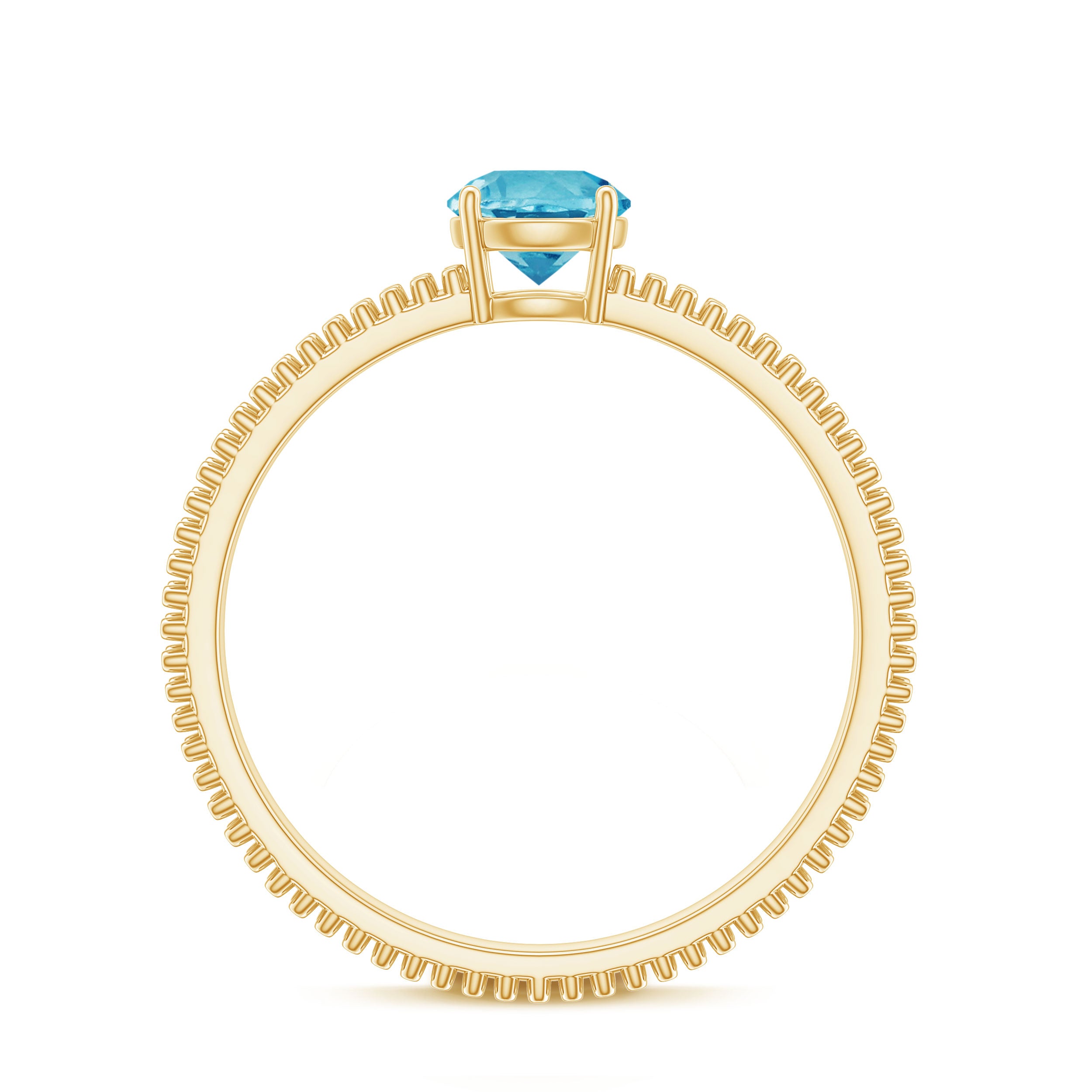This Wedding Ring is bejeweled by Swiss Blue Topaz all over the band. It could be a classic band that is meant to fit with your Swiss Blue Topaz Engagement Ring or be more ornate by featuring a floating halo, old-world designs, or even a triple-row band. Thanks to its conventional aesthetics, a Yellow Gold Swiss Blue Topaz Ring is considered most appealing in this category. Symbolically, it commemorates the lifelong union of two souls as one and is thus, exchanged along with the wedding vows.