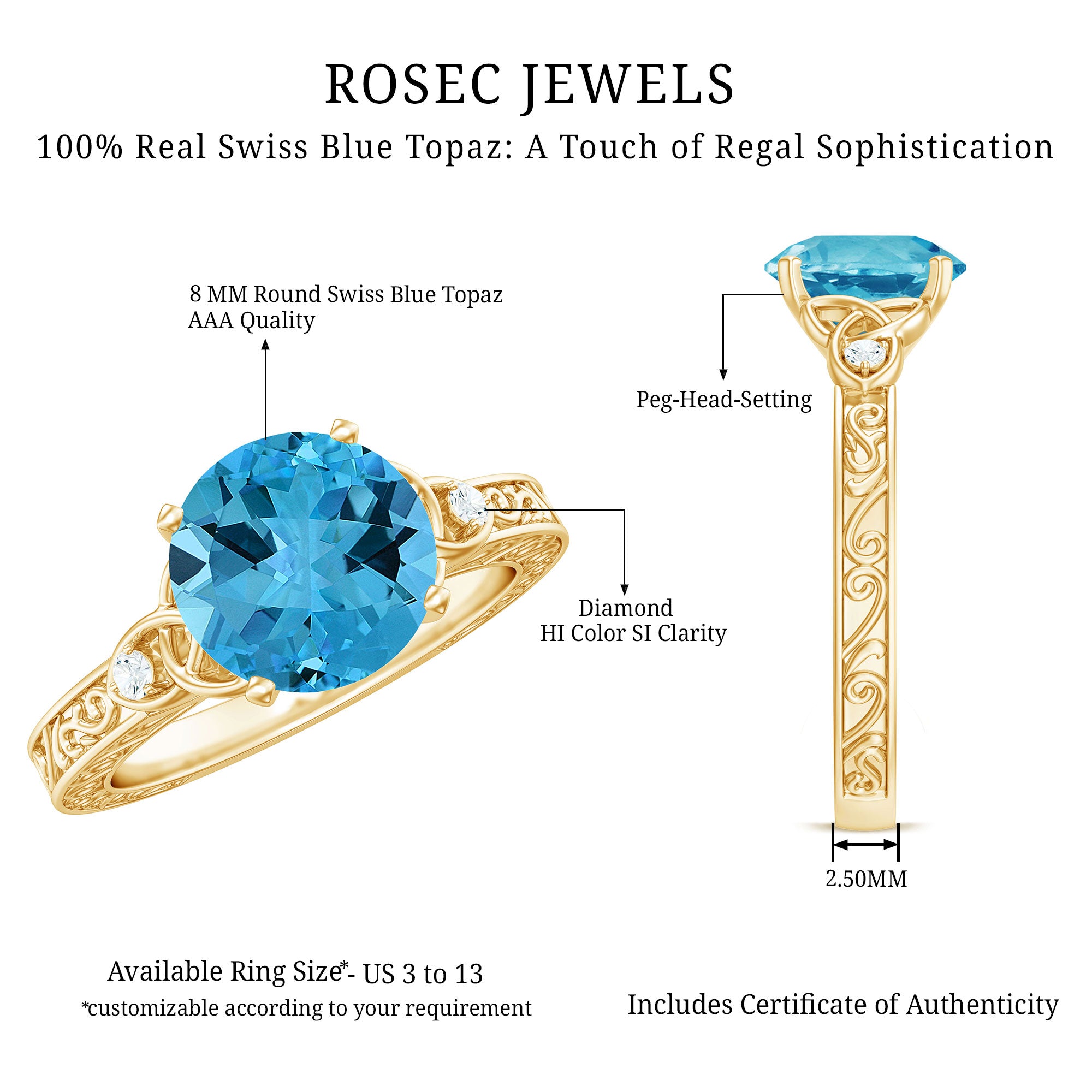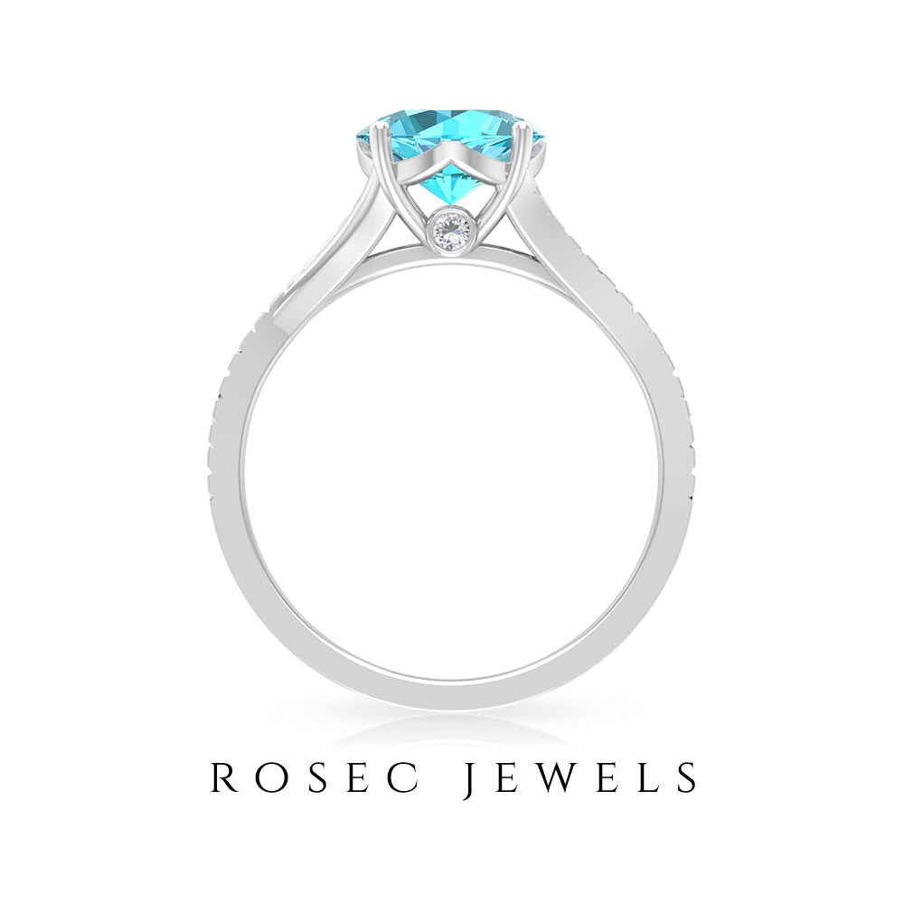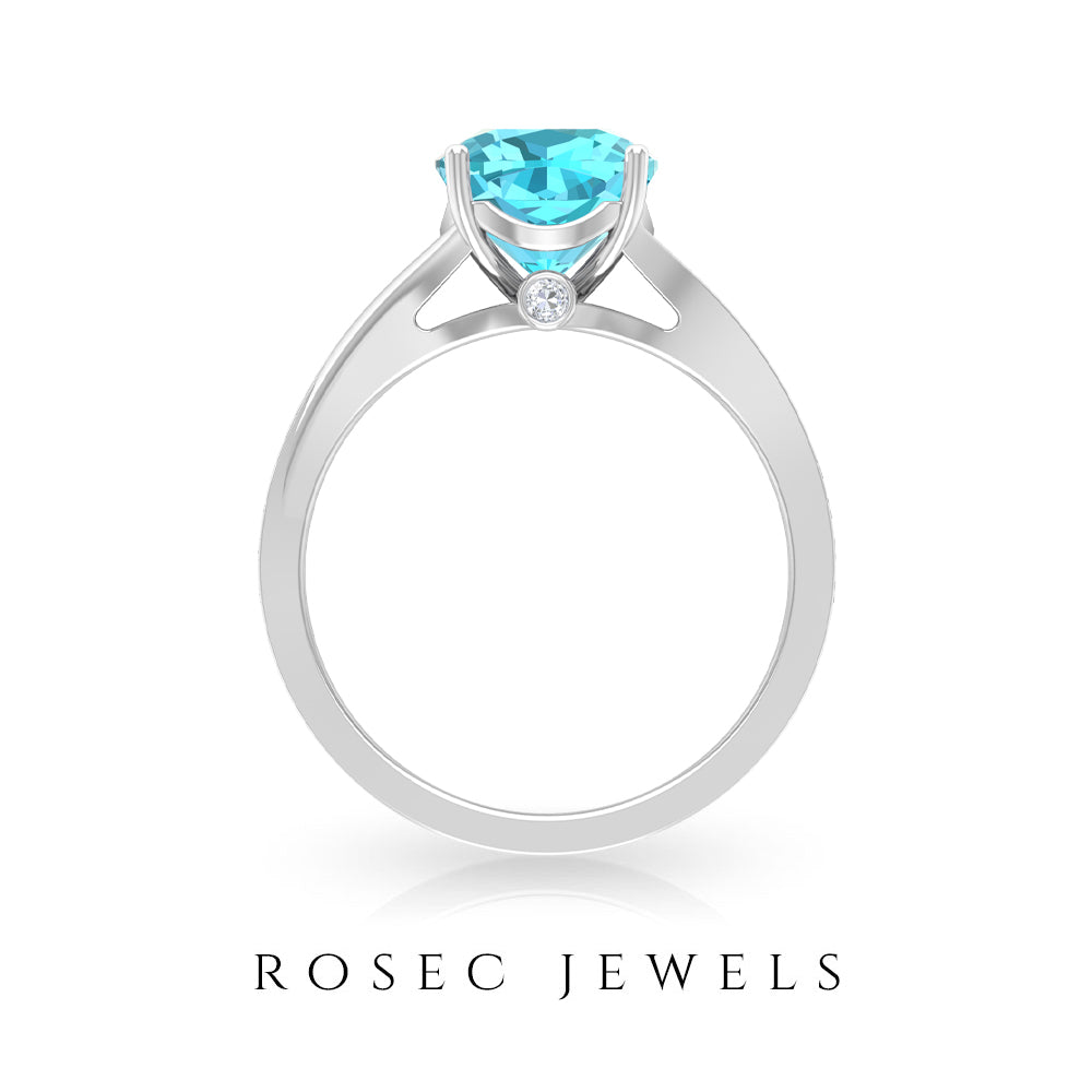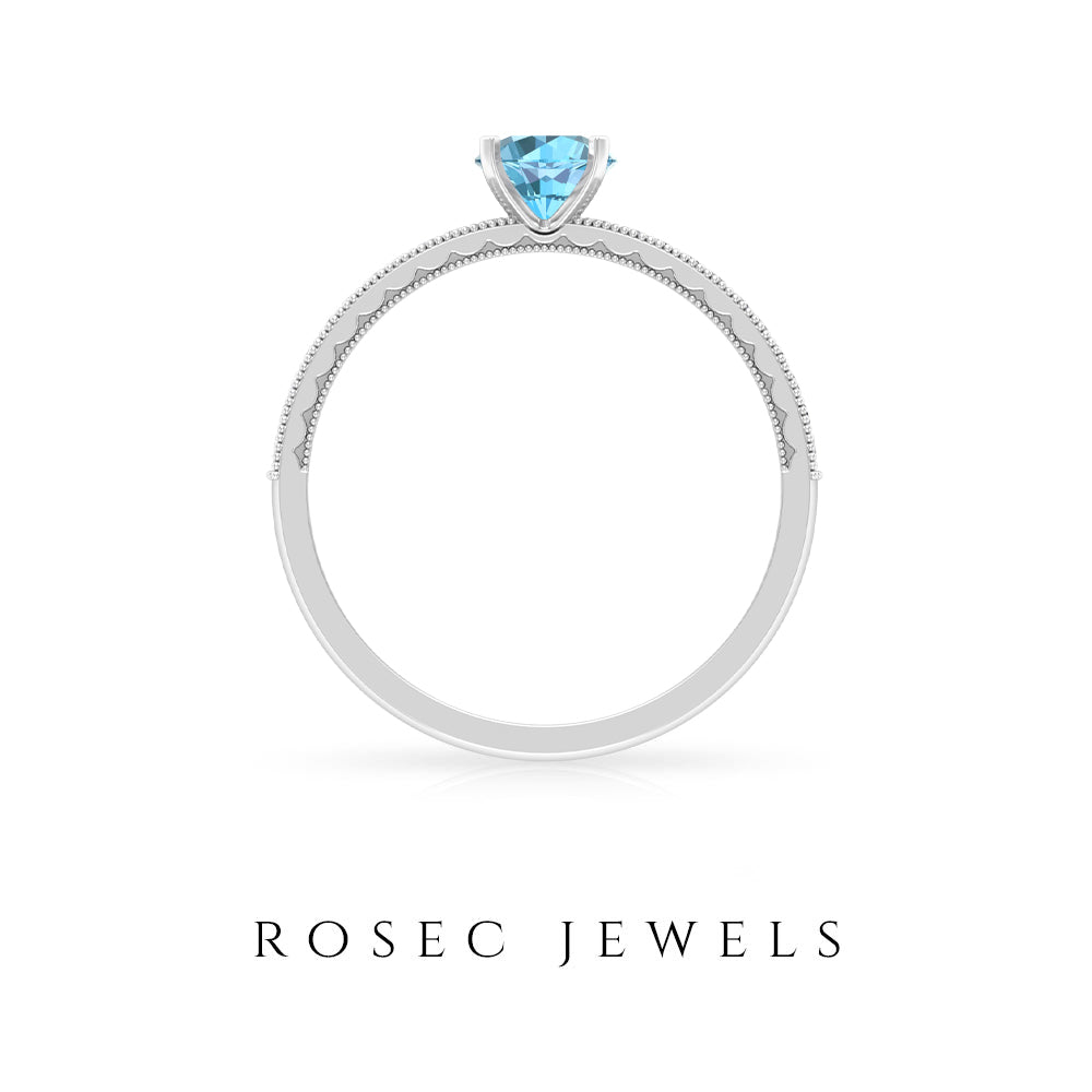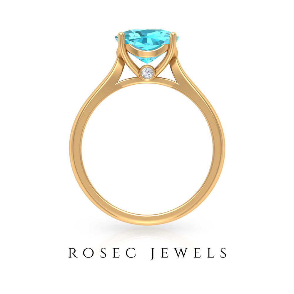 Wearing a Swiss Blue Topaz Ring is often believed to signify loyalty, true love, clear-sightedness, and righteousness. True to its serene hue, it works miraculously for enhancing creativity, honesty, and clarity of feelings. And interestingly, Blue Topaz is considered a wonderful gemstone for expressing love which makes a Swiss Blue Topaz Engagement Ring such a meaningful pick.