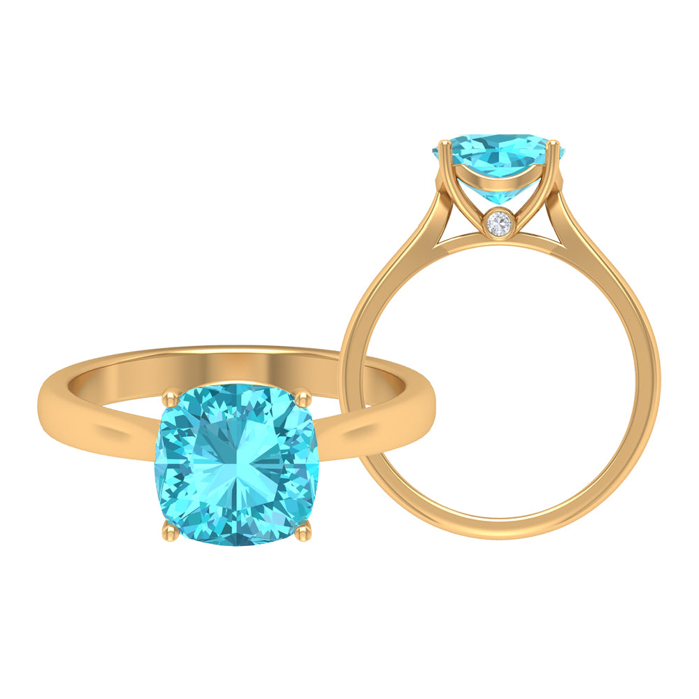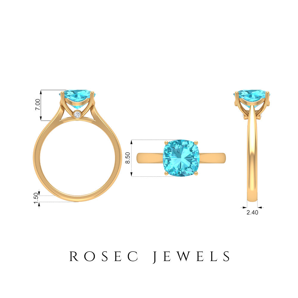 Apart from that, make sure to store it away from any harder gemstones that hold the potential of scratching it. Remember, products loaded with harmful chemicals can cause substantial damage to your gemstone. So, whether you wear a white, rose, or yellow gold Swiss Blue Topaz Ring, make sure to put it off while applying makeup, before hopping in the shower, etc.