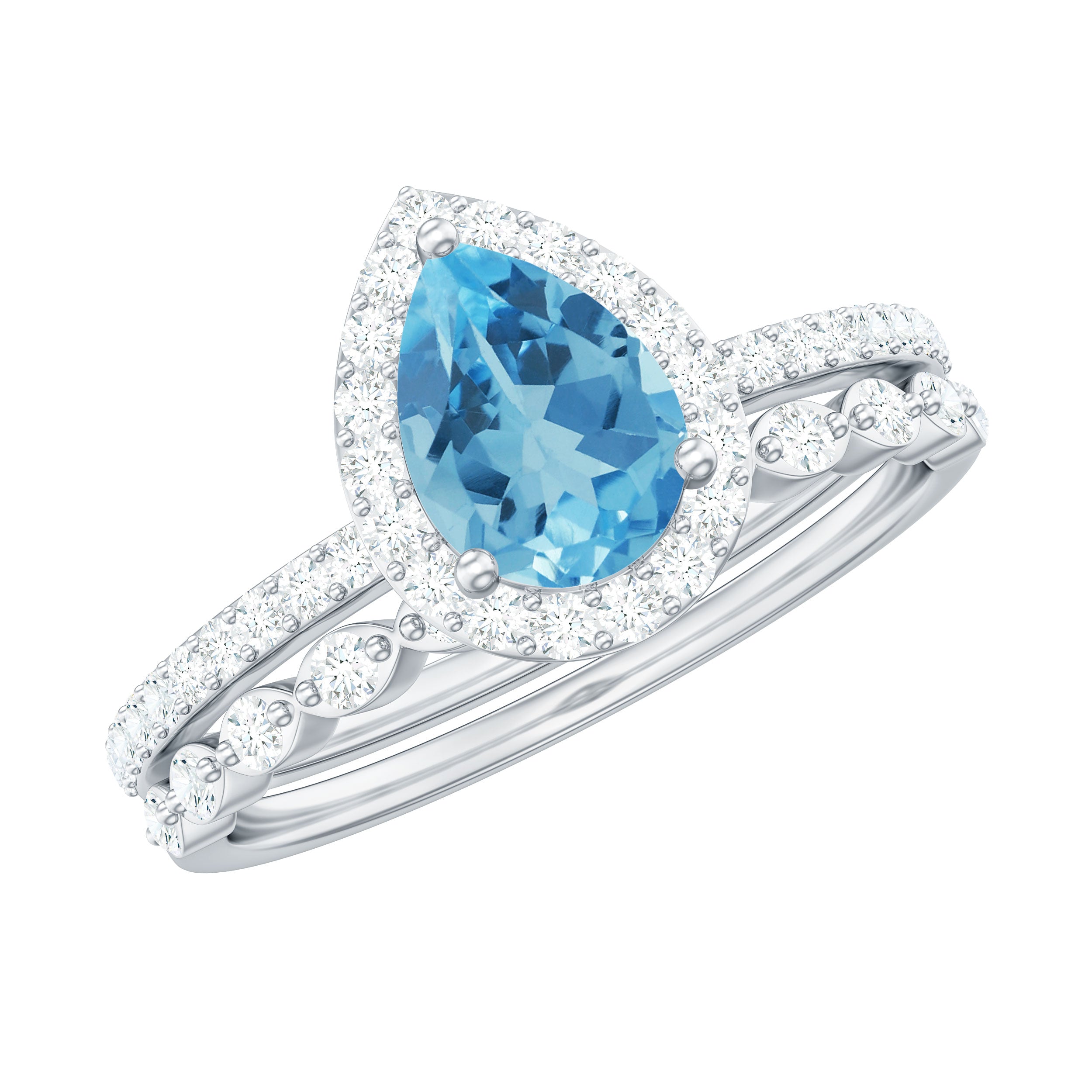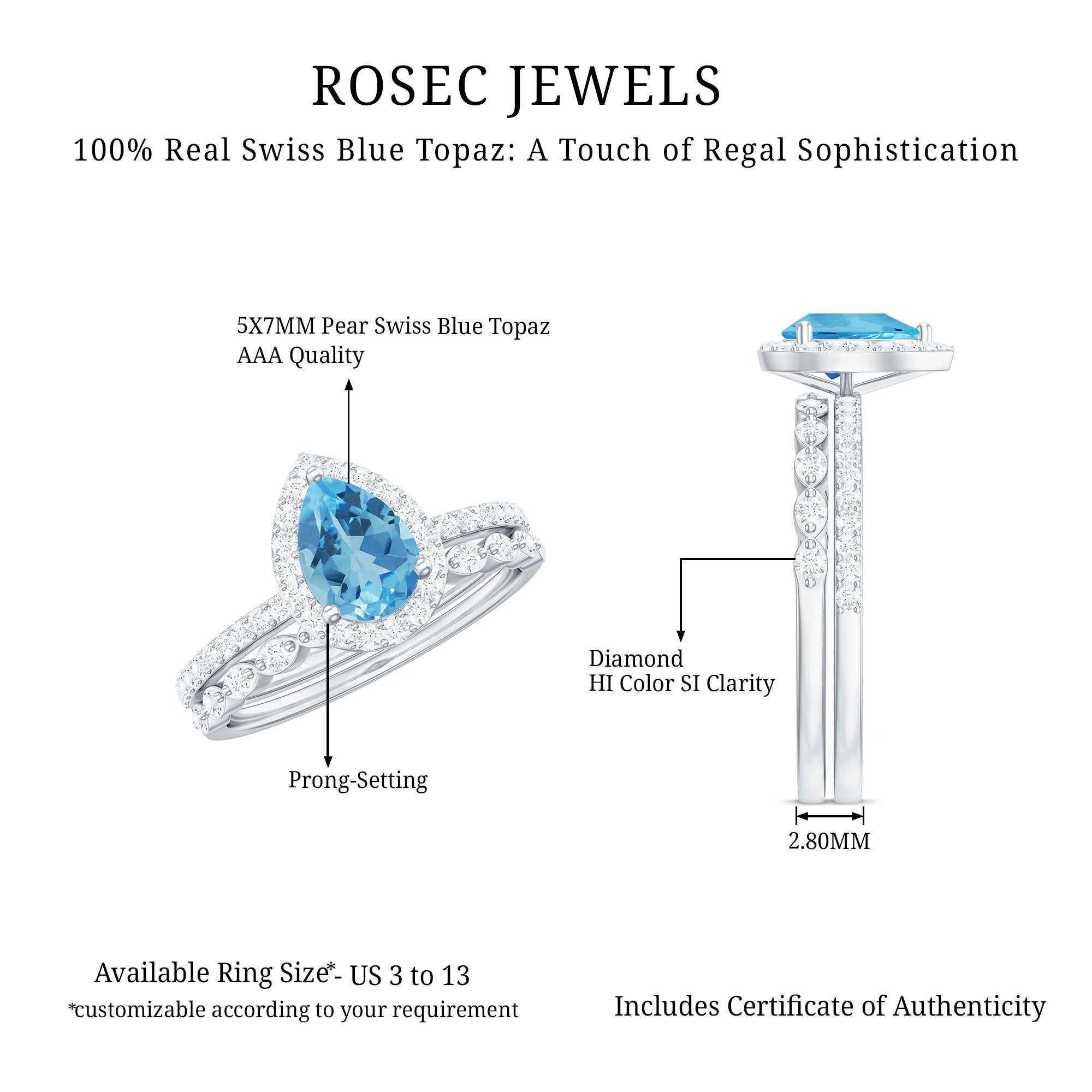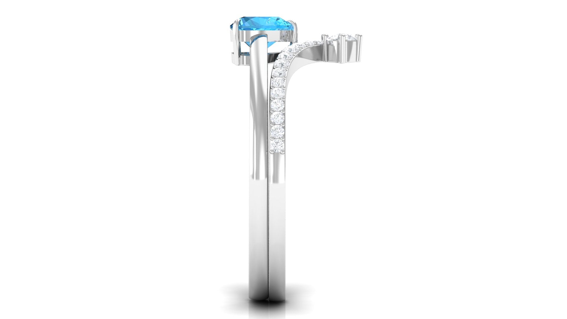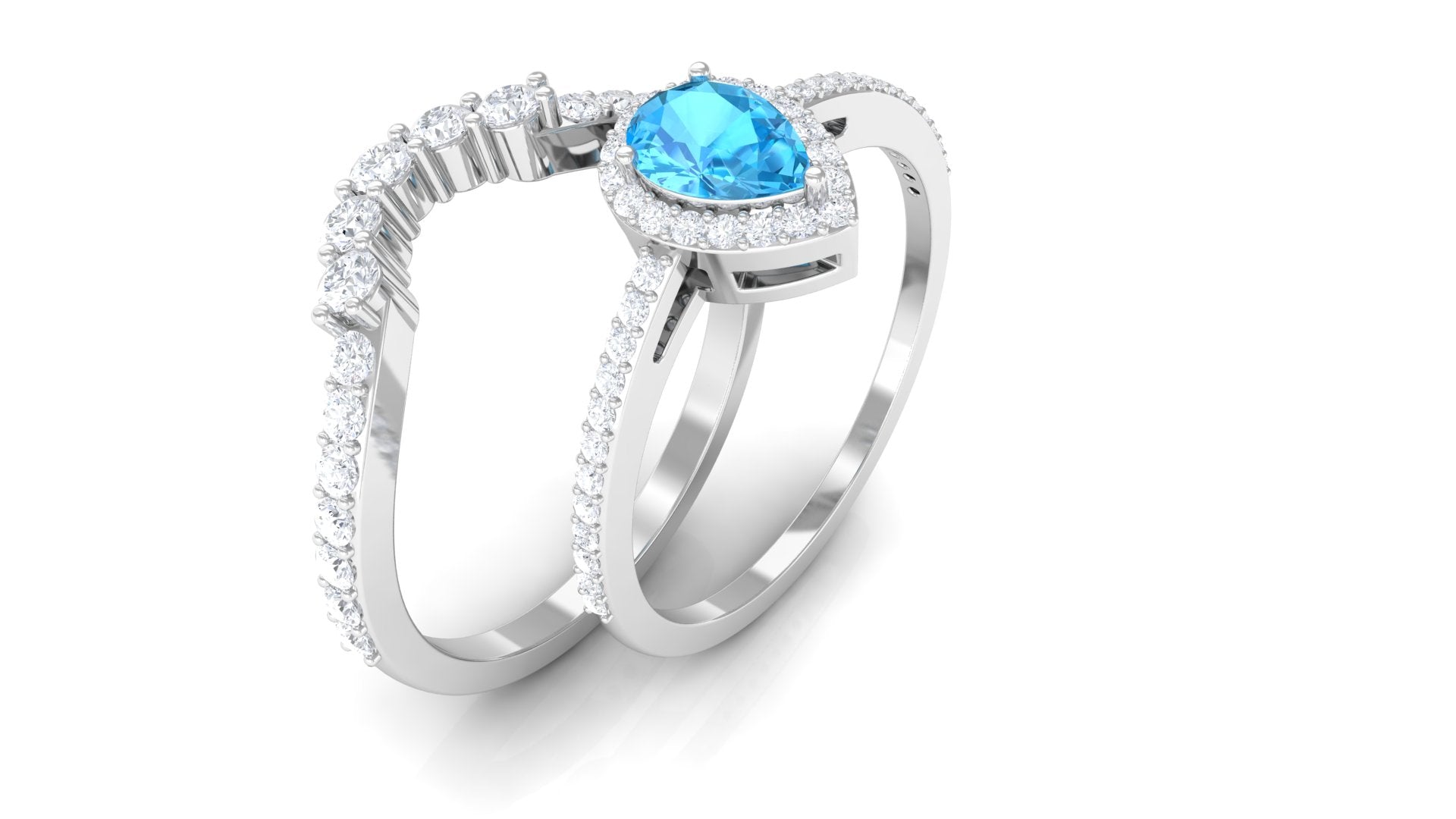 - Color: The signature color of Swiss blue topaz wedding rings is characterized by bright to light shades falling mid-range in colors of London Blue to Sky Blue Topaz.