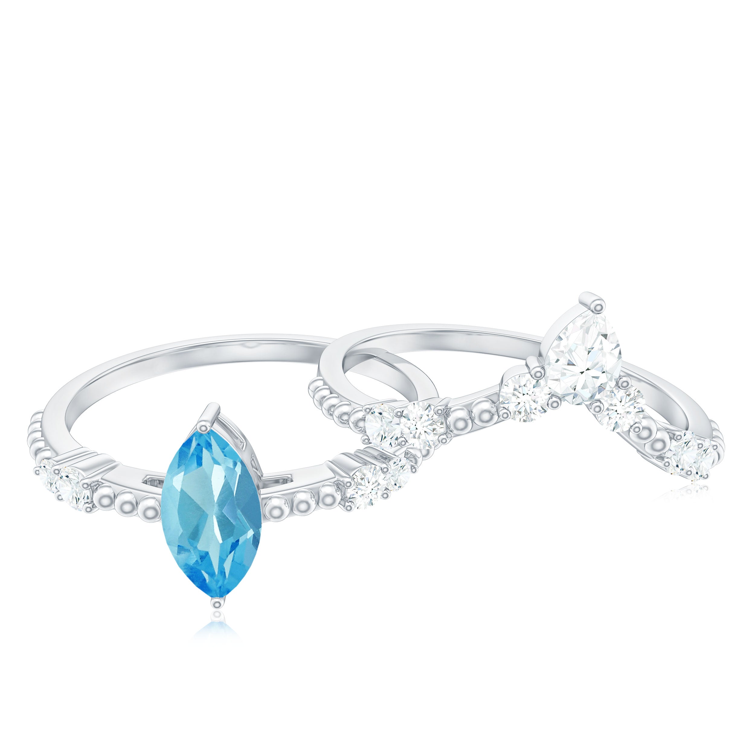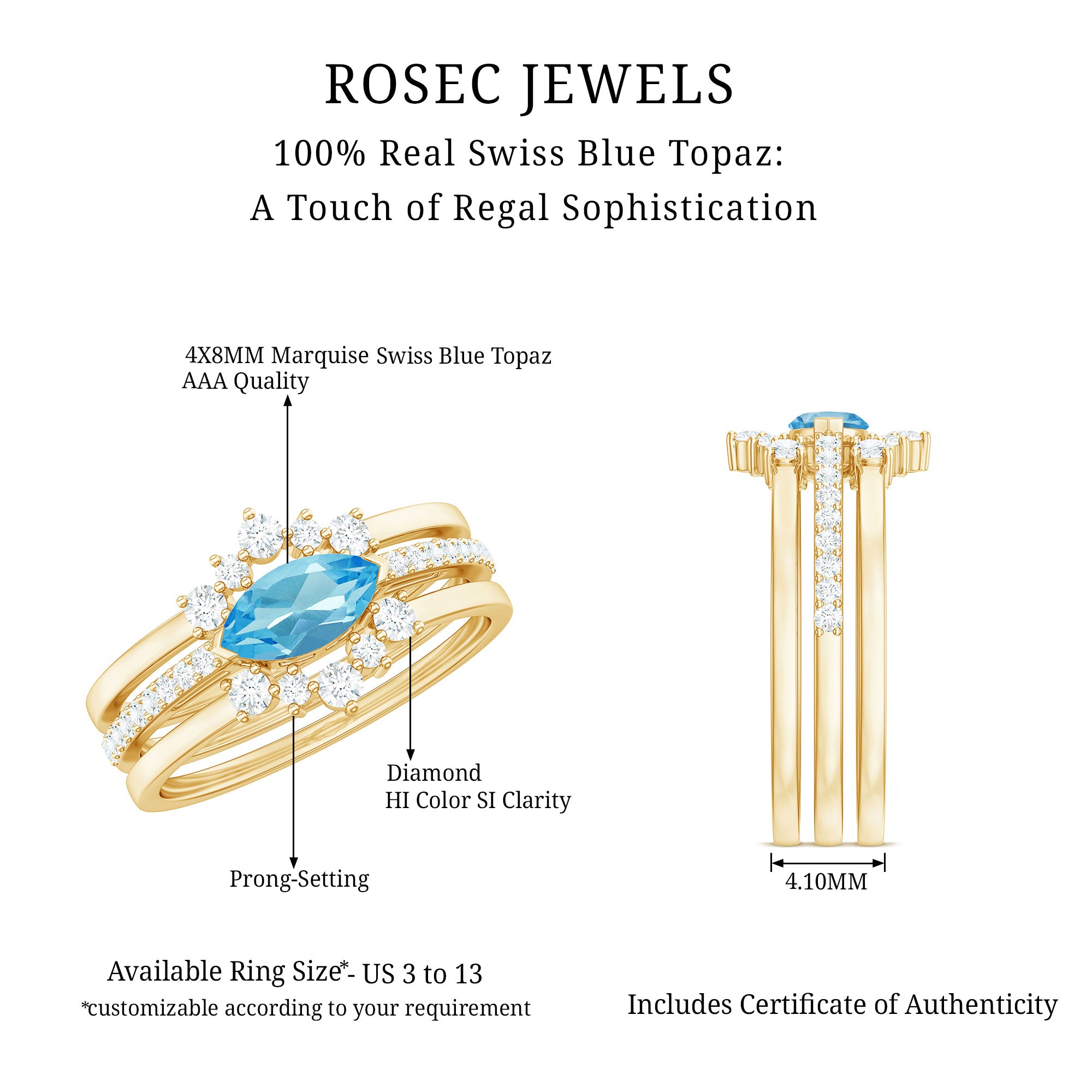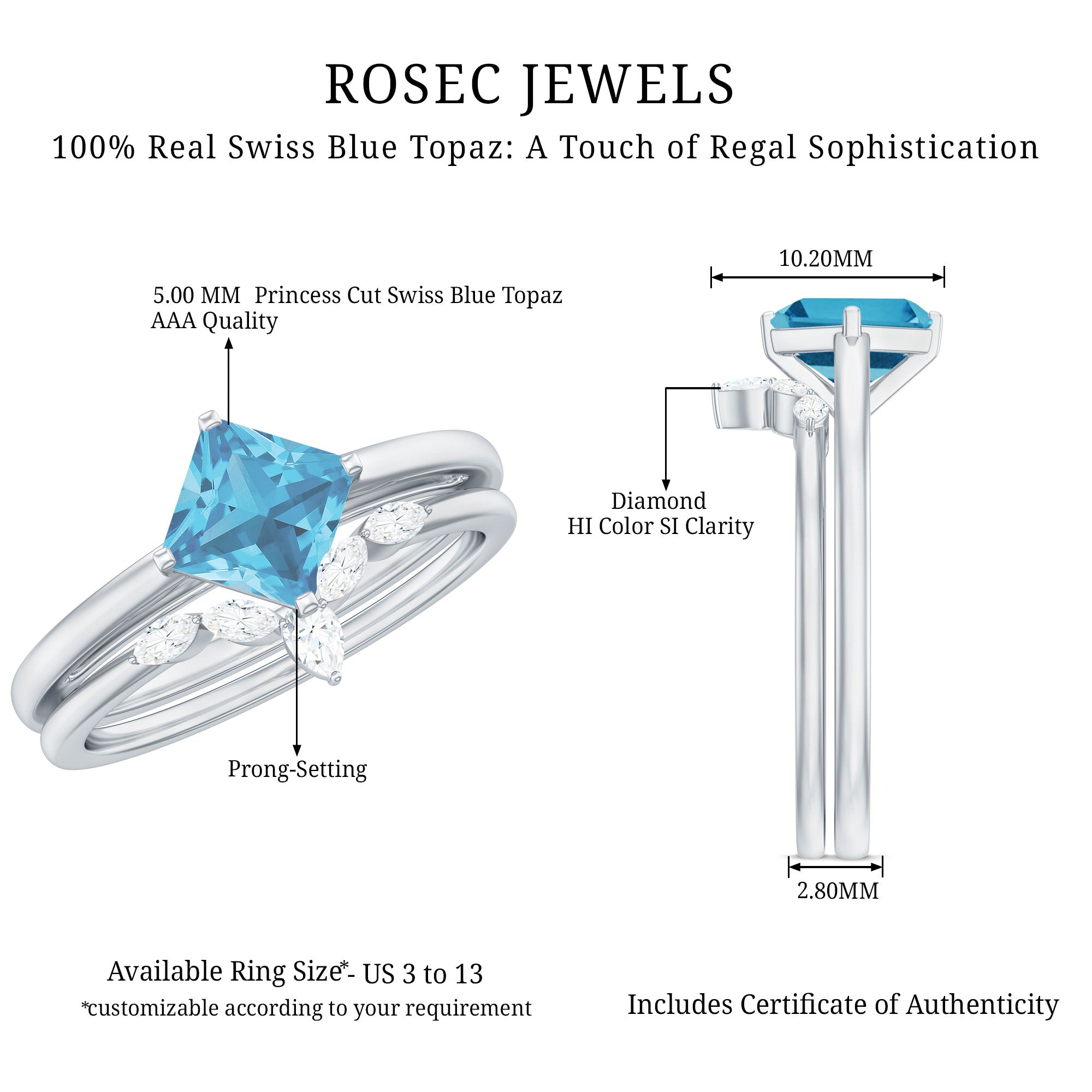 An amazing collection of Swiss blue topaz wedding rings for the love of your life. The bright blue colors of this silicate mineral are an utmost desirable characteristic for crafting charming wedding jewelry. The sparkling radiance of the Swiss blue topaz rings is owed to the fine craftsmanship of our artisans. We, at Rosec Jewels ensure that only after quality assurance, our Swiss topaz rings find their way into the lives of women with a taste for latest jewelry trends.