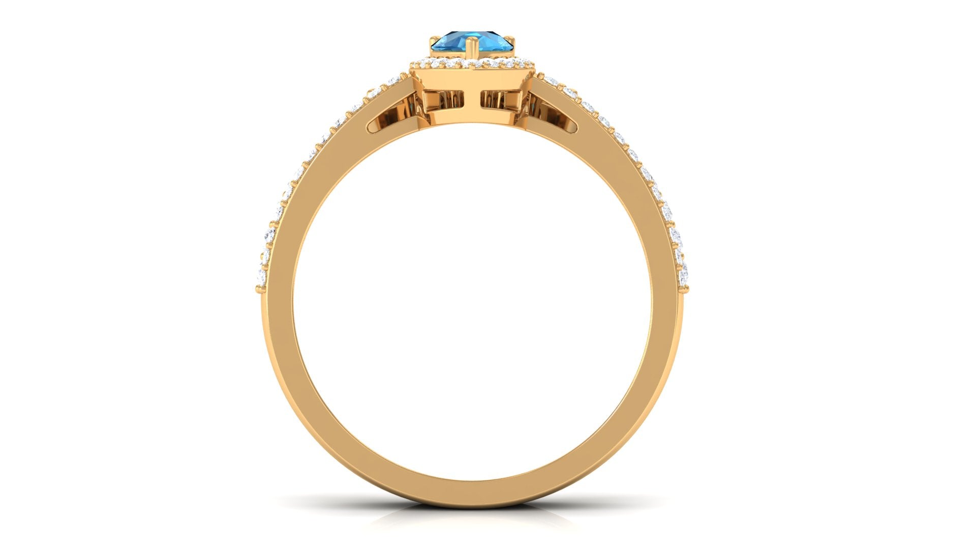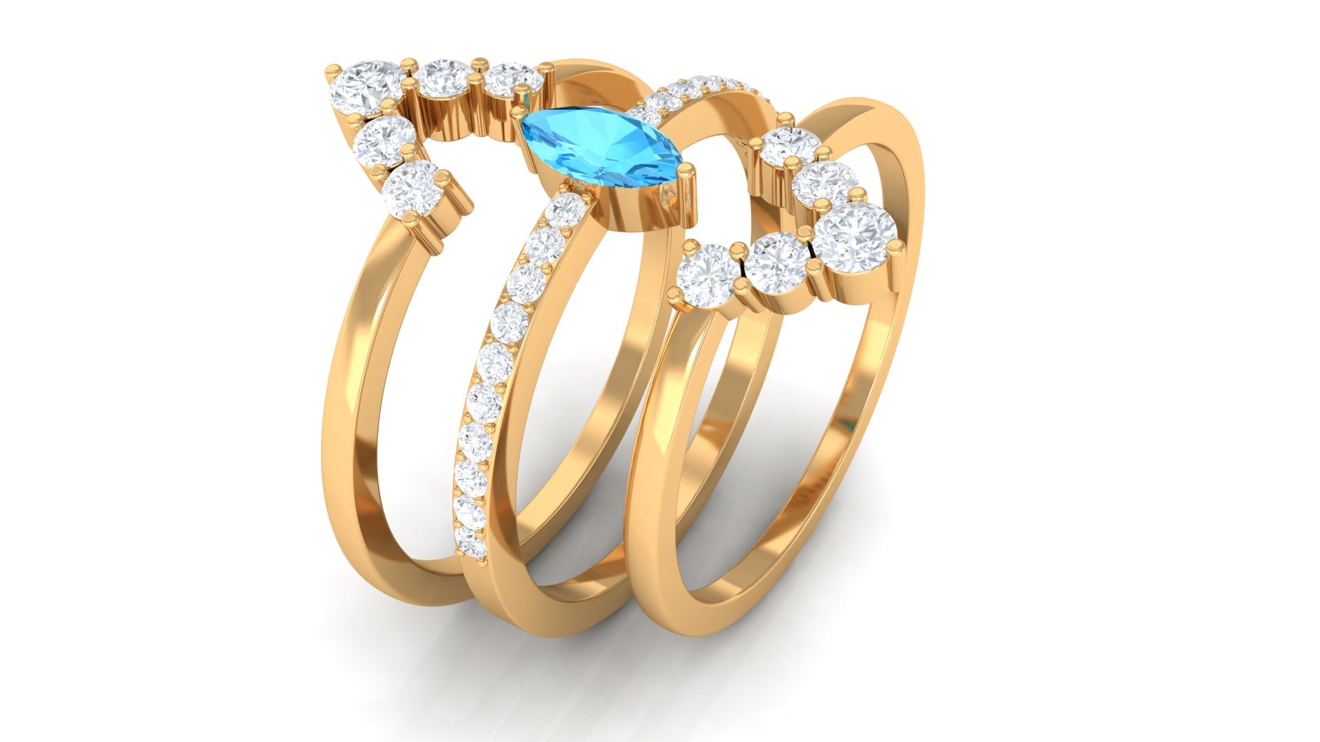 For diversification in ring designs, we experiment with variety of colorful gold and Swiss blue topaz shapes to curate out of the box designs of Swiss blue topaz ring in yellow gold, white gold and rose gold. Also, fine metal detailing and embellishments helps us in crafting vintage style blue topaz rings and many more to best suit your personal style.