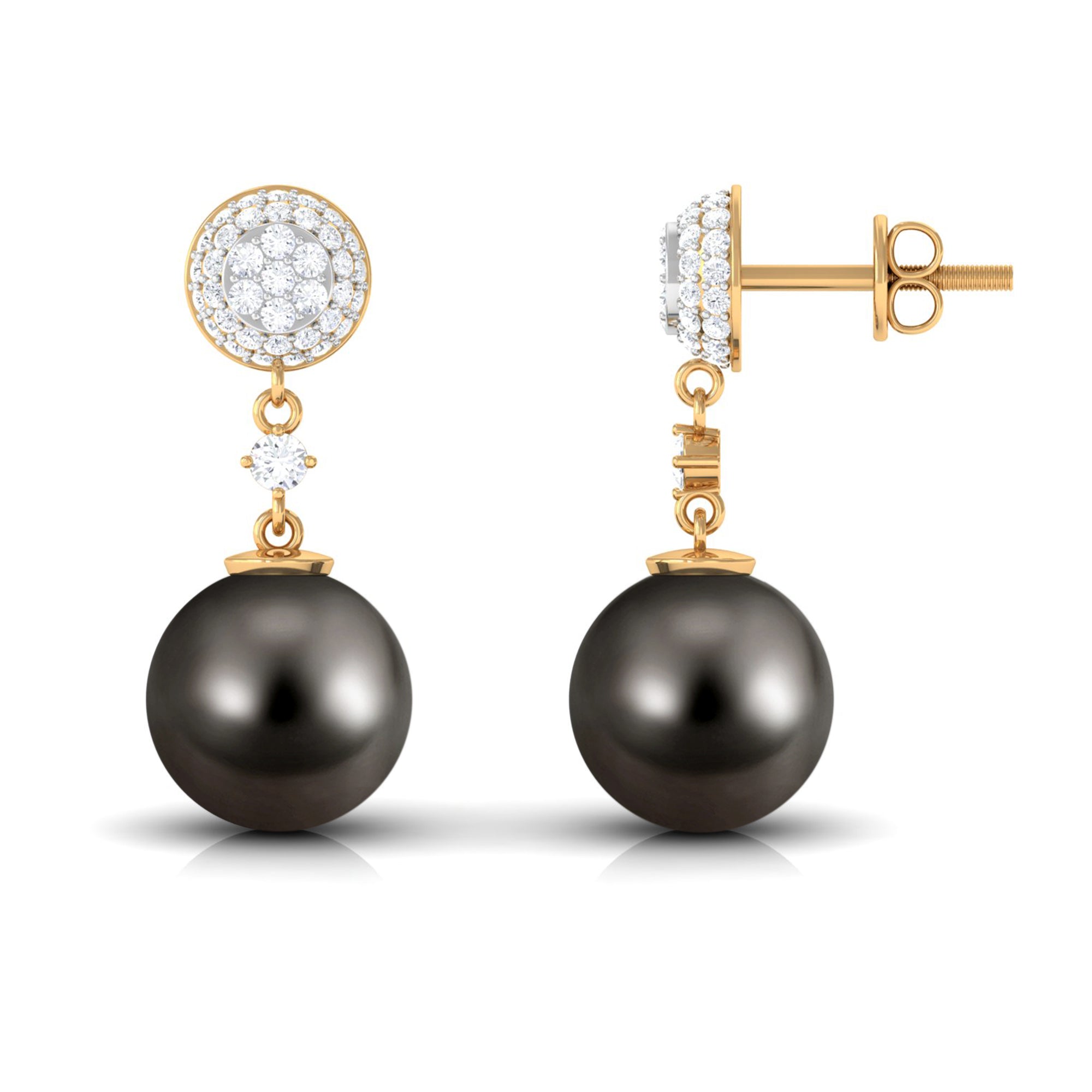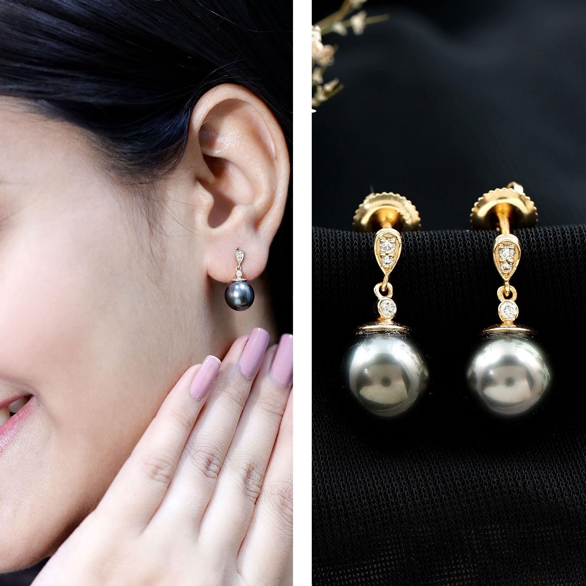 An everyday fashion staple, Tahitian Pearl Stud Earrings sit snug against the earlobe (without hanging or dangling down) while letting the Black Pearl take all the center stage. Owing to their minimalist and timeless appeal, they are considered a must-have in every woman’s jewelry box. From the classic round Black Pearl Gold Earrings for an understated cum classy look to the ones fashioned in eye-catching motifs such as floral and animal-inspired or a sparkly pair of Tahitian Pearl Earrings with Diamond (in Halo) if you’re looking for something more visually appealing, the world of options is endless.
