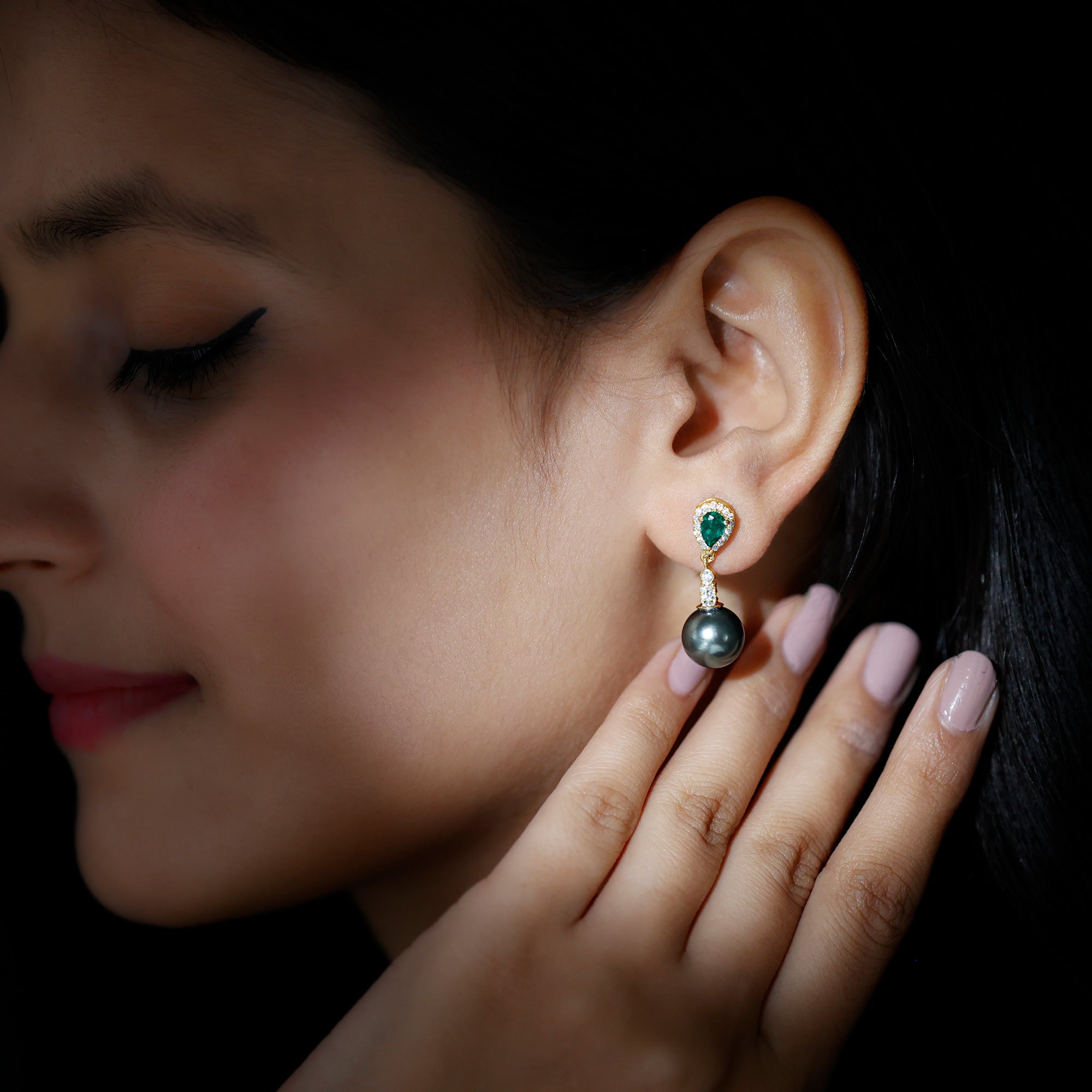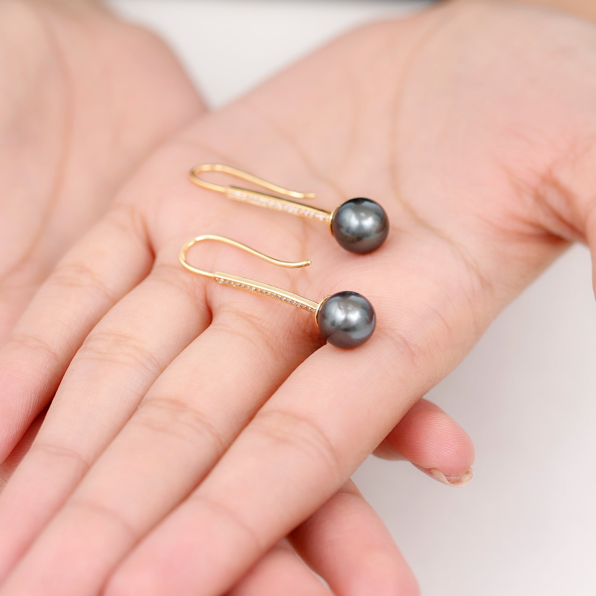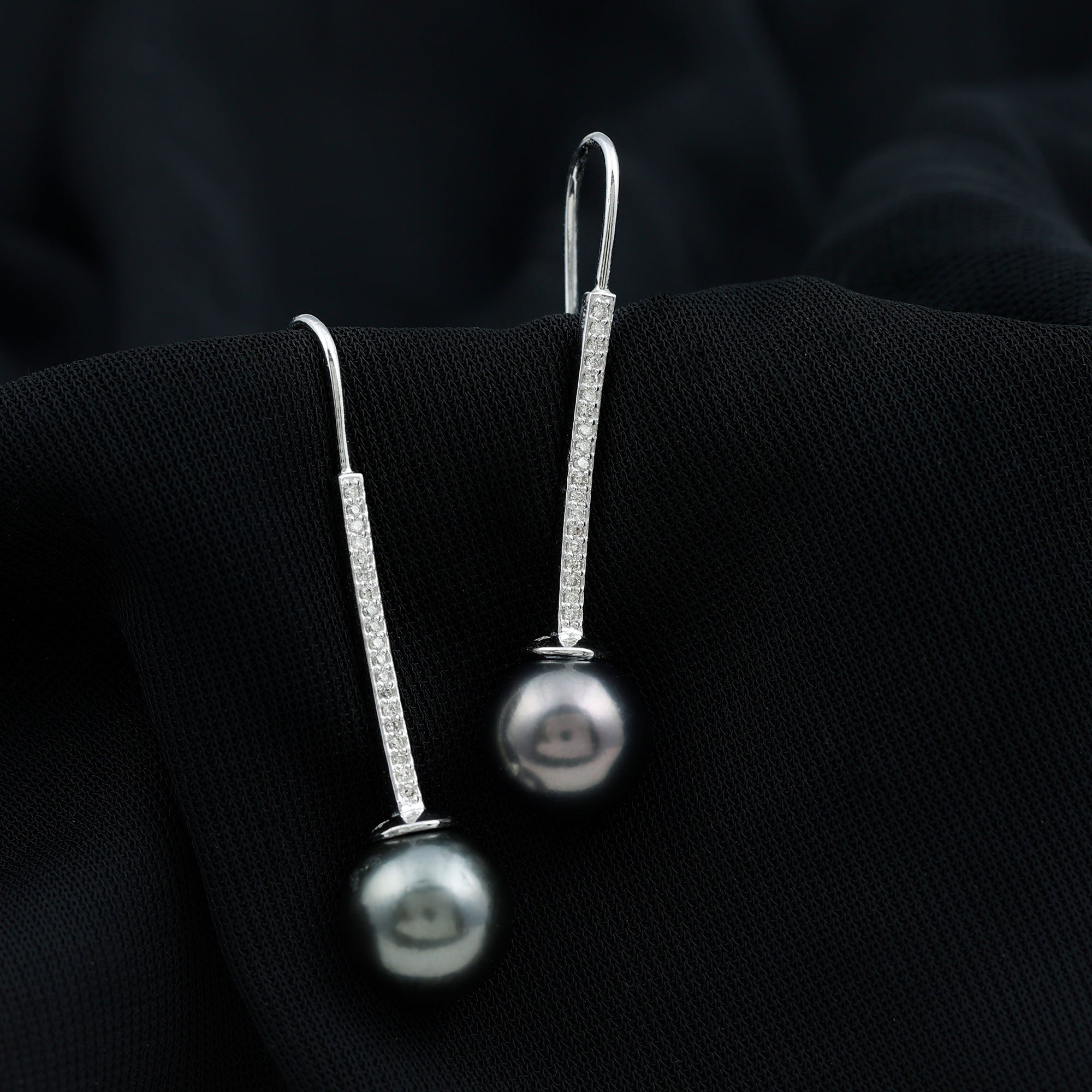 Fancied for their elegant appeal, Tahitian Pearl Drop Earrings hang (or drop) below the earlobe through a hook. The embellishment of Tahitian Pearl contrasts this feminine style with a pop of bold black color. So, whether you team up your formal ensembles with a pair of classic drops for an understated look or opt for a contemporary designer drop earrings for a date ready look, each pair here knows how to make a statement.