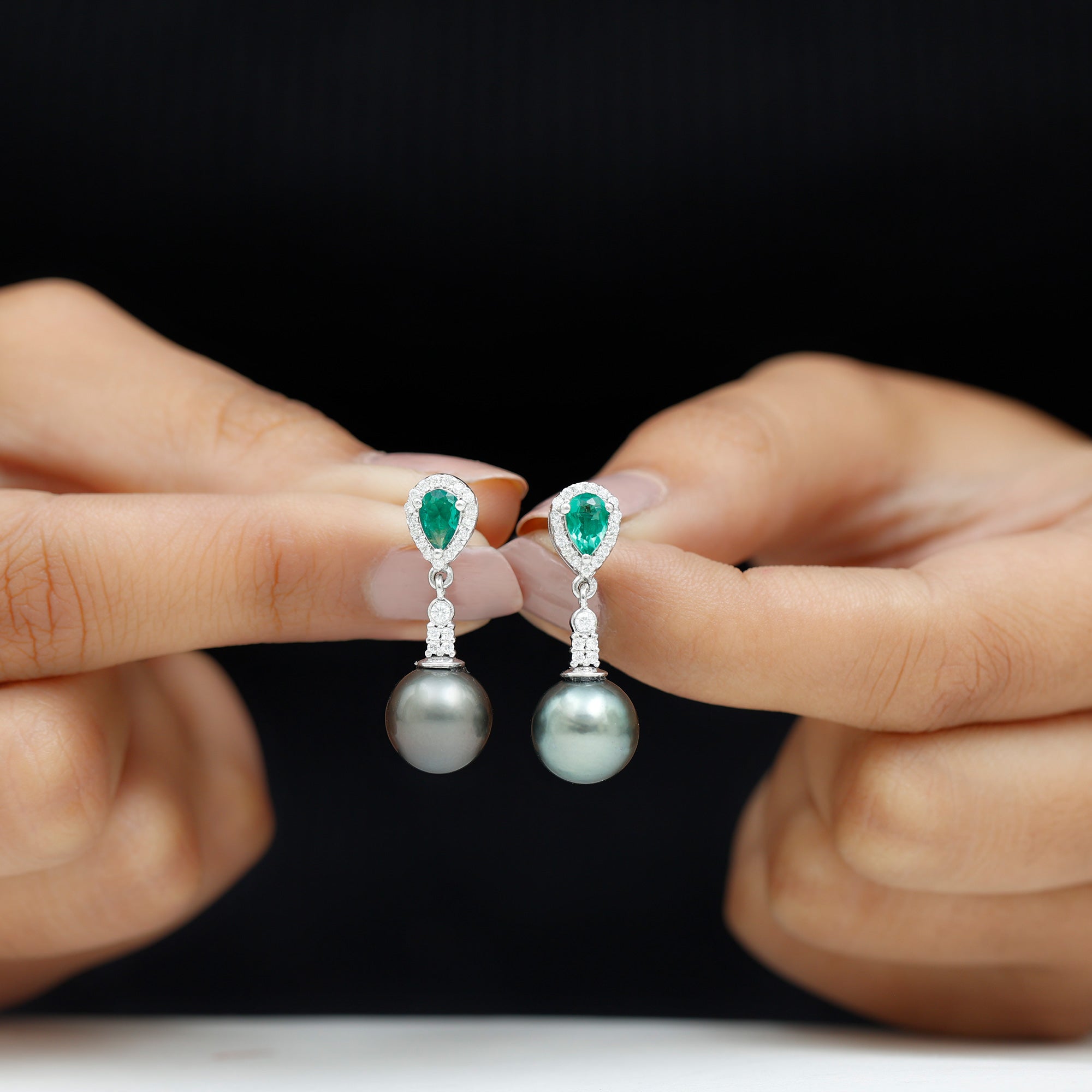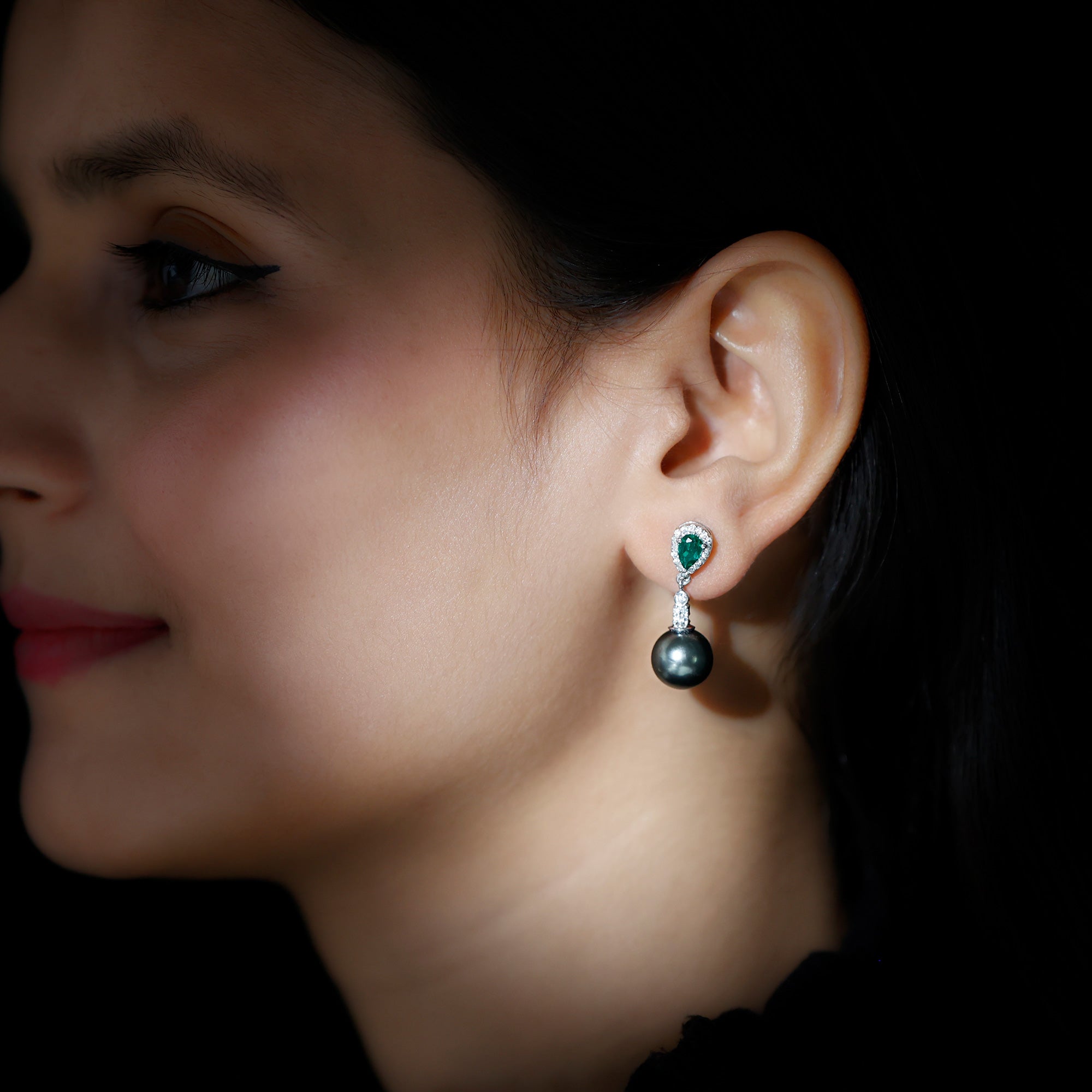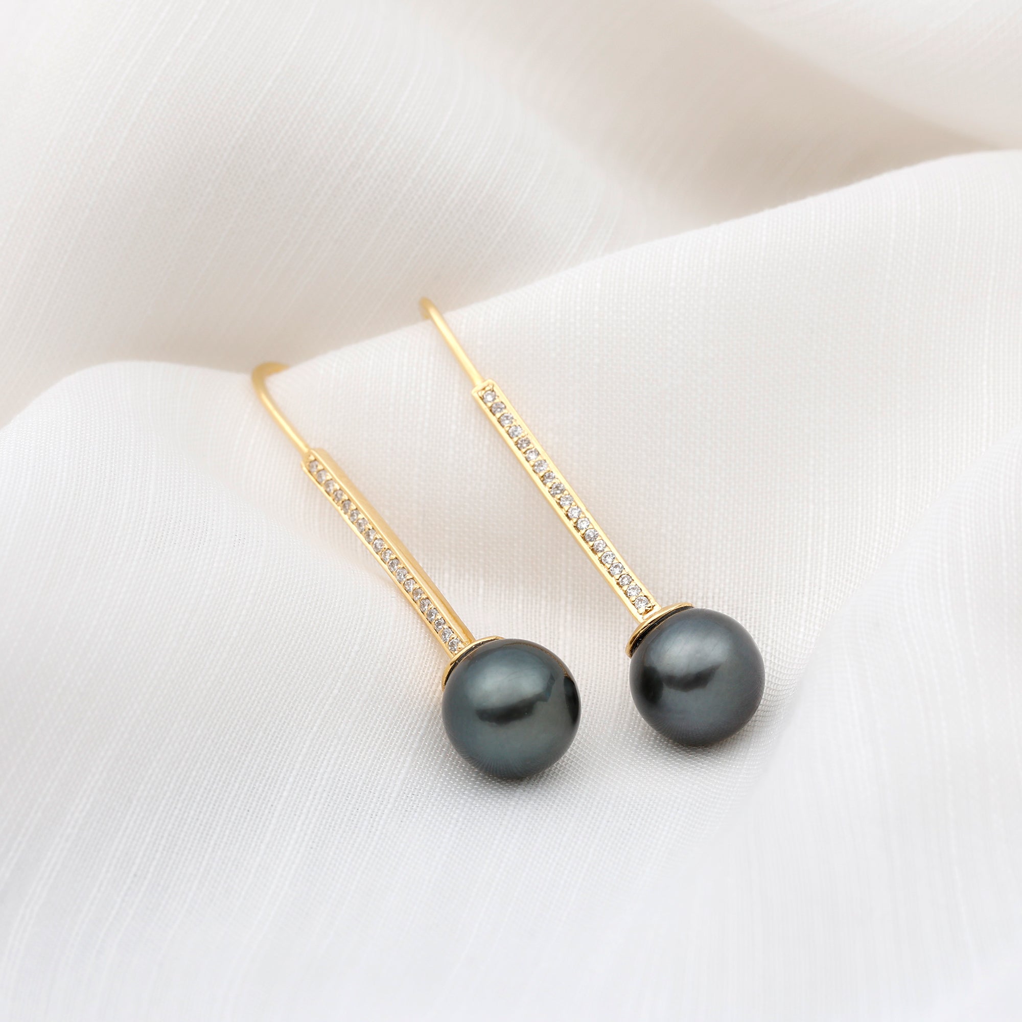 Fancied for their elegant appeal, Tahitian Pearl Drop Earrings hang (or drop) below the earlobe through a hook. The embellishment of Tahitian Pearl contrasts this feminine style with a pop of bold black color. So, whether you team up your formal ensembles with a pair of classic drops for an understated look or opt for a contemporary designer drop earrings for a date ready look, each pair here knows how to make a statement.