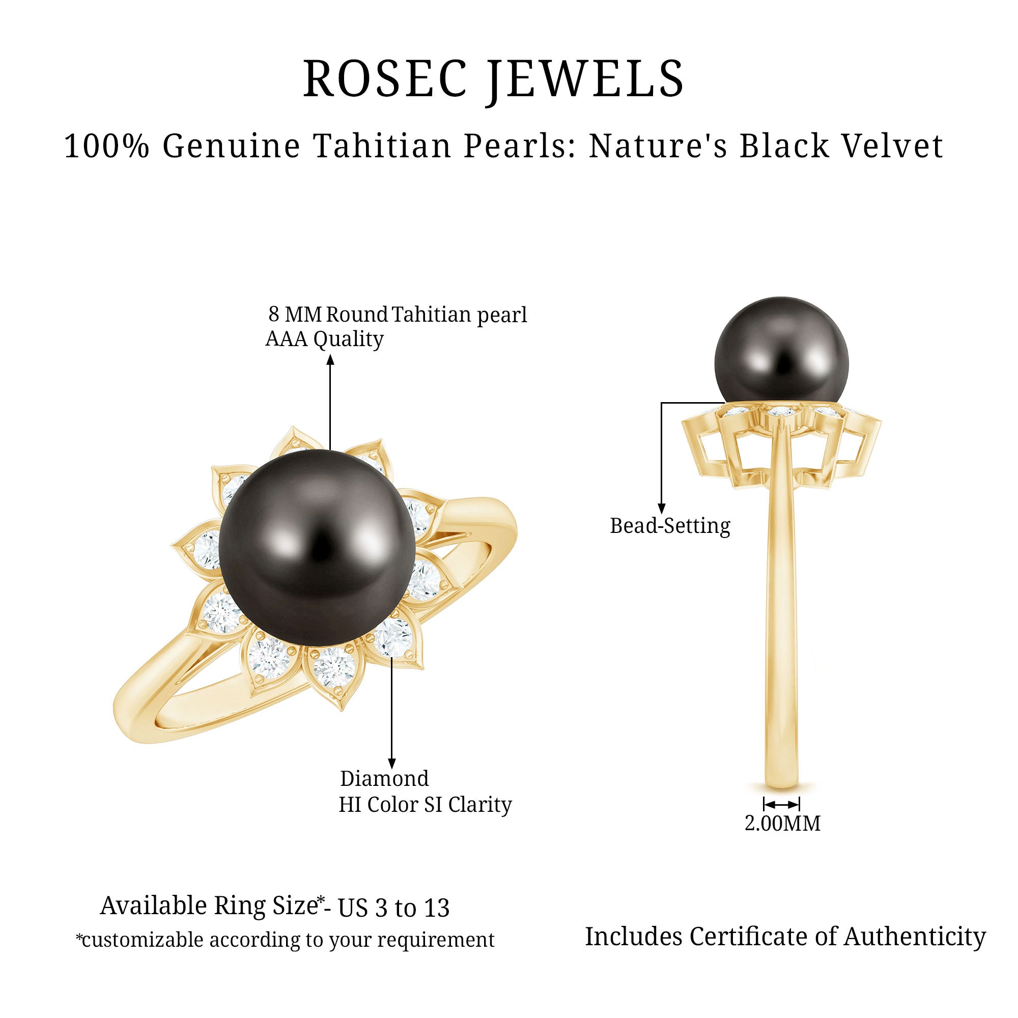 Tahitian Pearls symbolize love, wealth, loyalty, purity, and prosperity, making them an ideal choice for engagement rings. Our new collection of Tahitian engagement rings truly stands out for their uniqueness, smooth surface, and enduring beauty, also it is much more affordable than a diamond ring. They possess a unique charm that sets them apart from others. Buying this Tahitian pearl for a day adds an extra touch of elegance and glamour to your special moment. They are treasured for their dark and rich hues. Often, Tahitian pearl rings are worn by the upper classes, who are blessed with the nickname "Queen of Pearls".