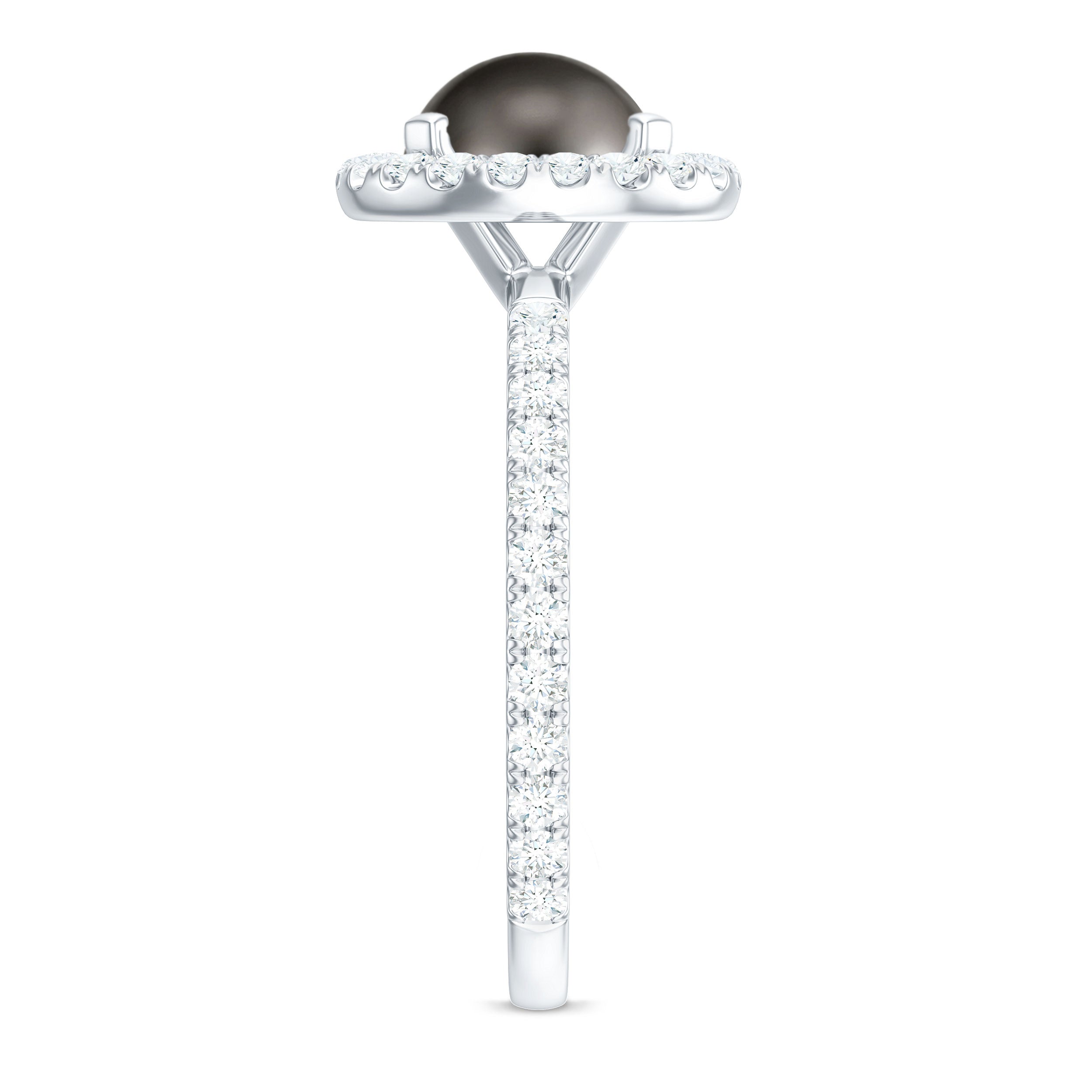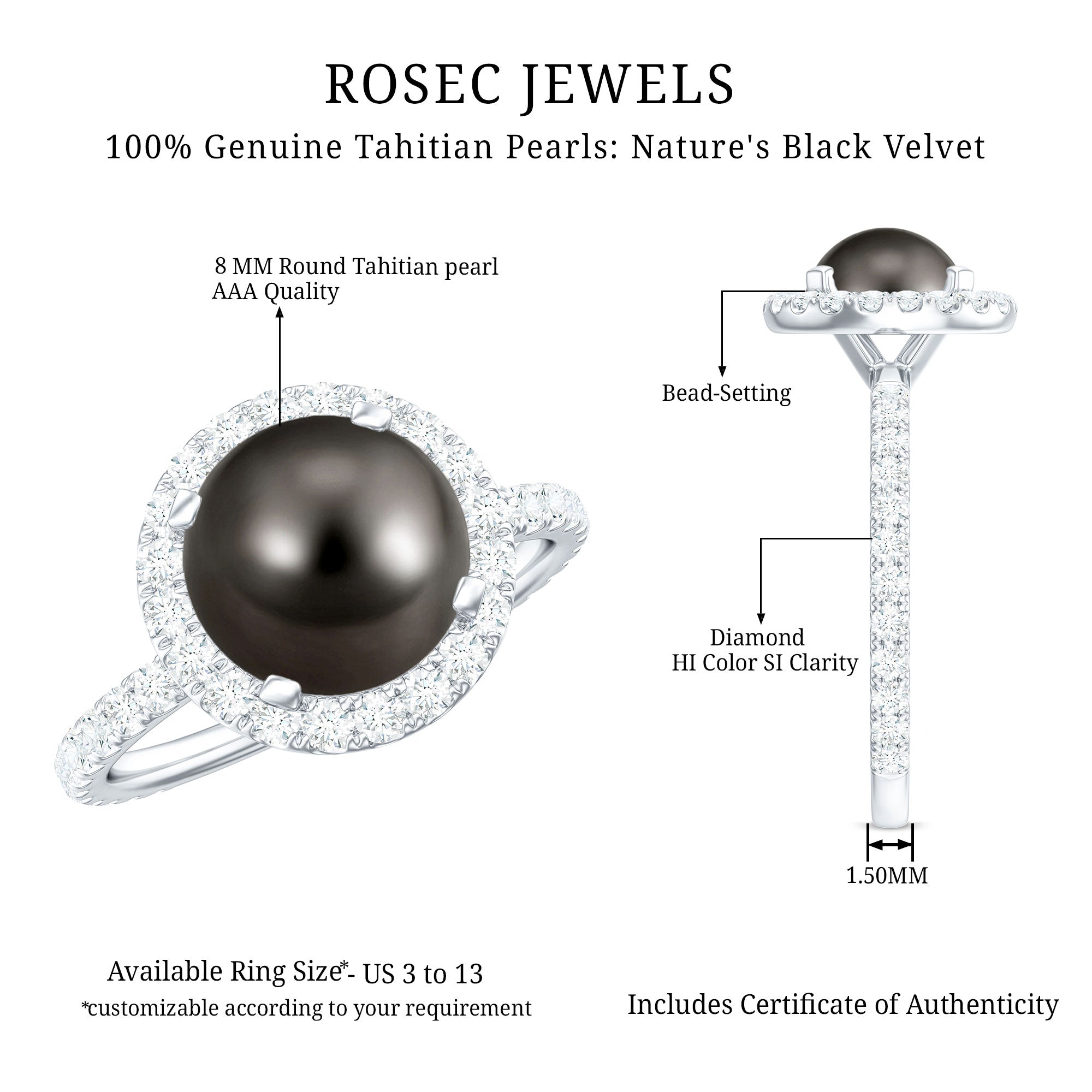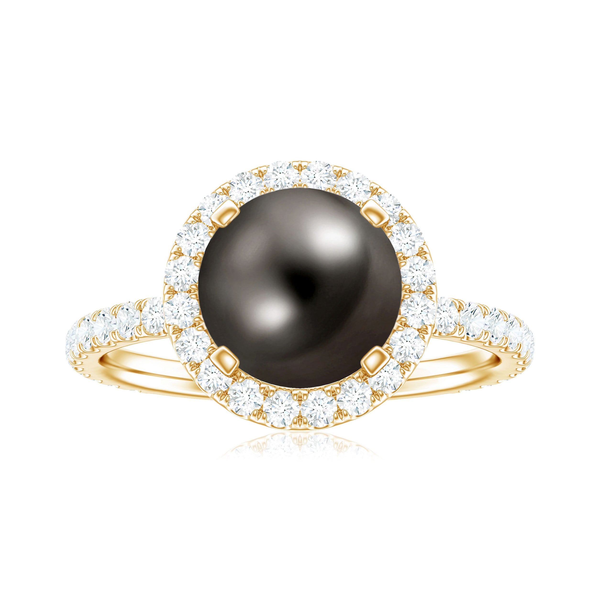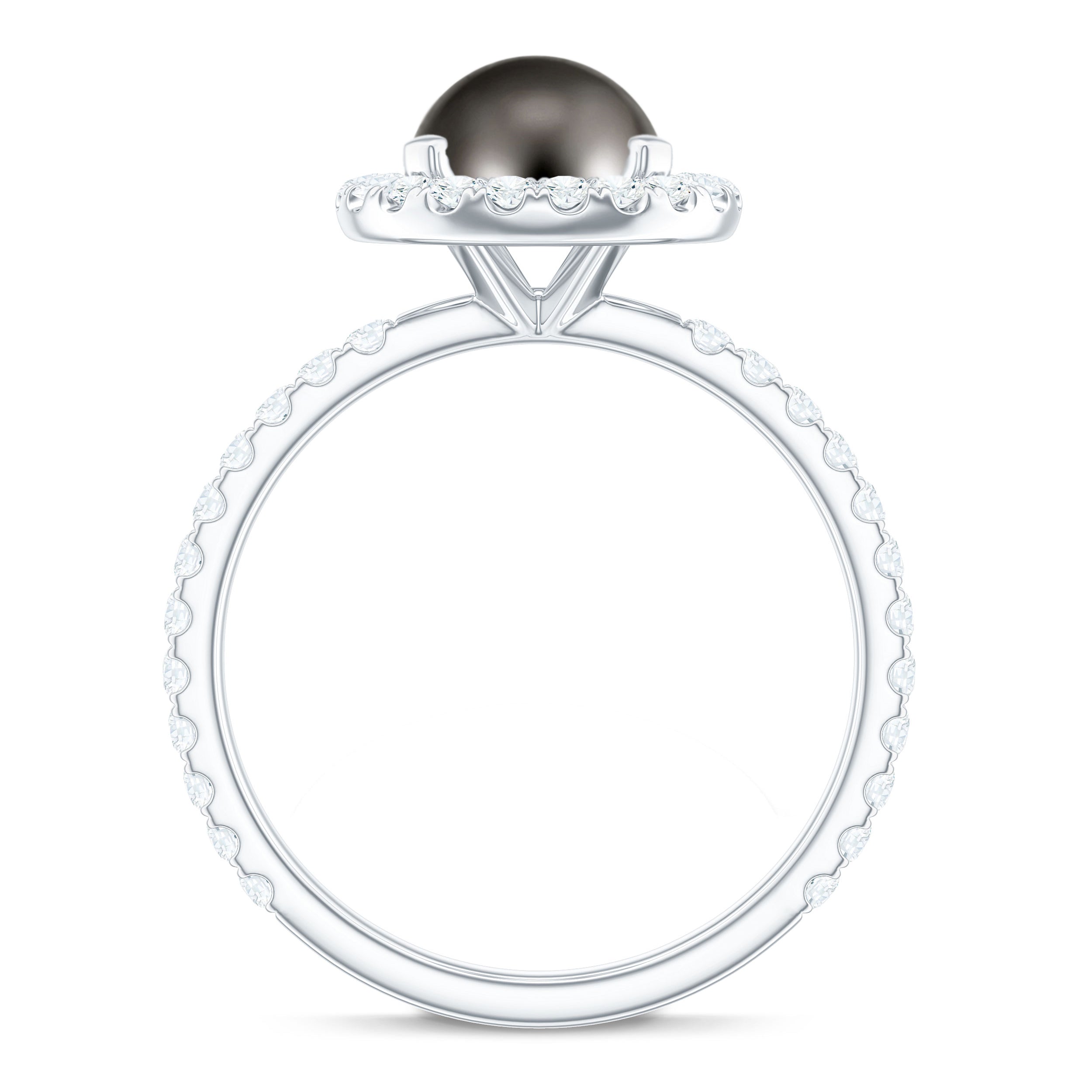 Halo Tahitian Pearl Rings: - featuring center pearl, accentuating the style of ring ring. Encircled by small shimmery diamonds or moissanite in the halo. These captivating rings seamlessly marry the sophisticated charm of black pearls with the mesmerizing brilliance of diamond accent making a timeless beauty and a must-have piece of ring.