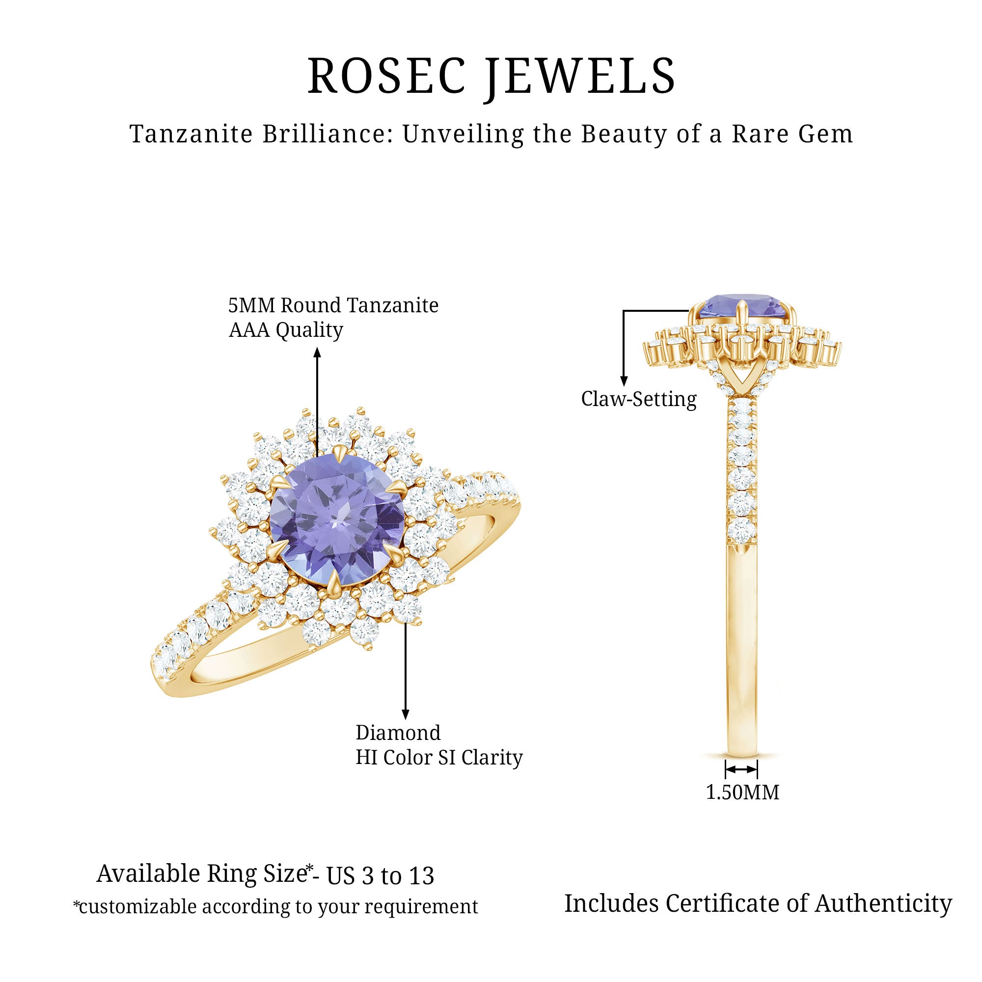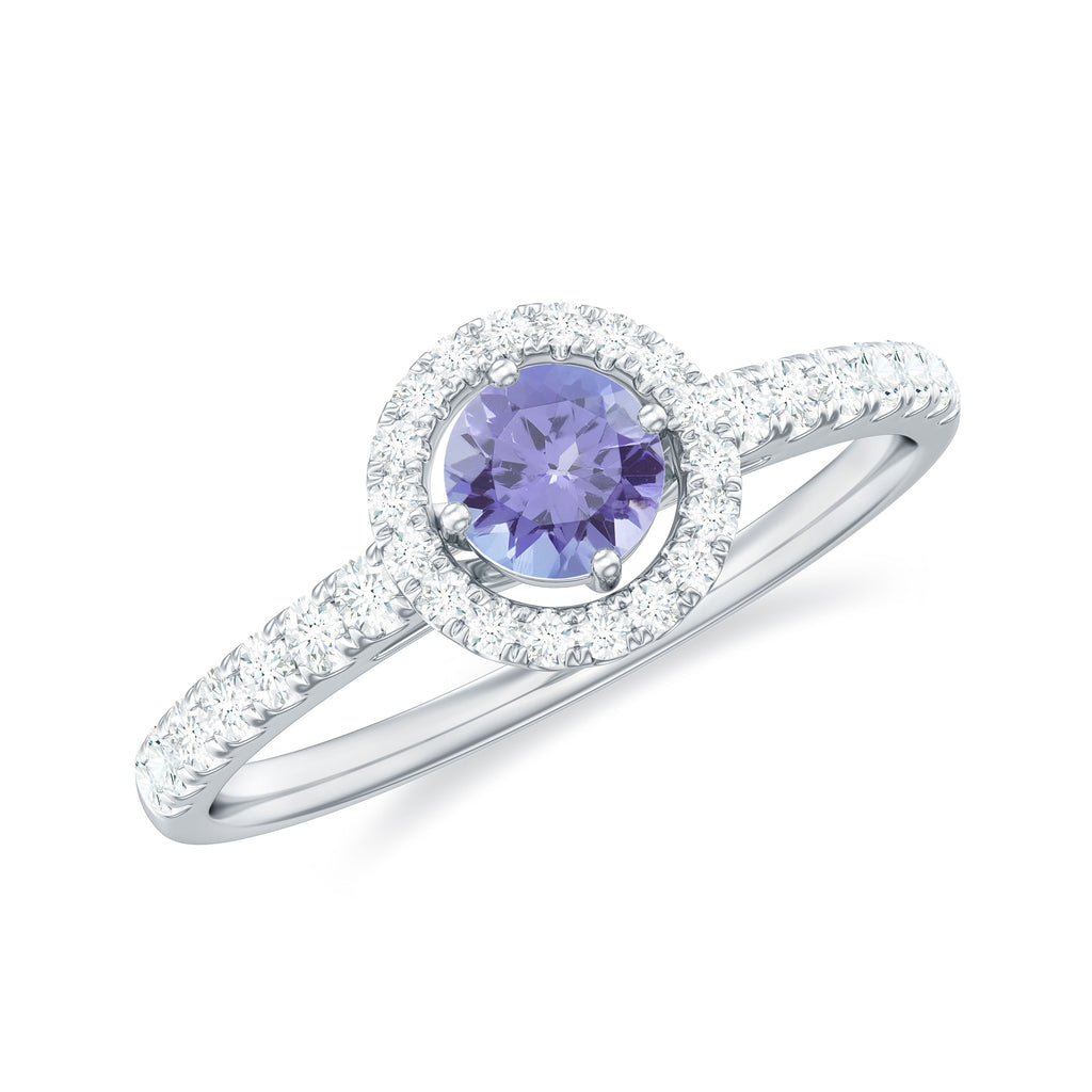 • Tanzanite Halo Engagement Rings: - The halo design, adds an extra layer of sparkle to the ring. These styles of rings embellished with tanzanite stone appear as a focal point of the ring. The solitaire stone is encircled by a shimmery diamond accent, making the center gemstone a bit larger. Diamond and tanzanite engagement rings are some of the best halo engagement rings.