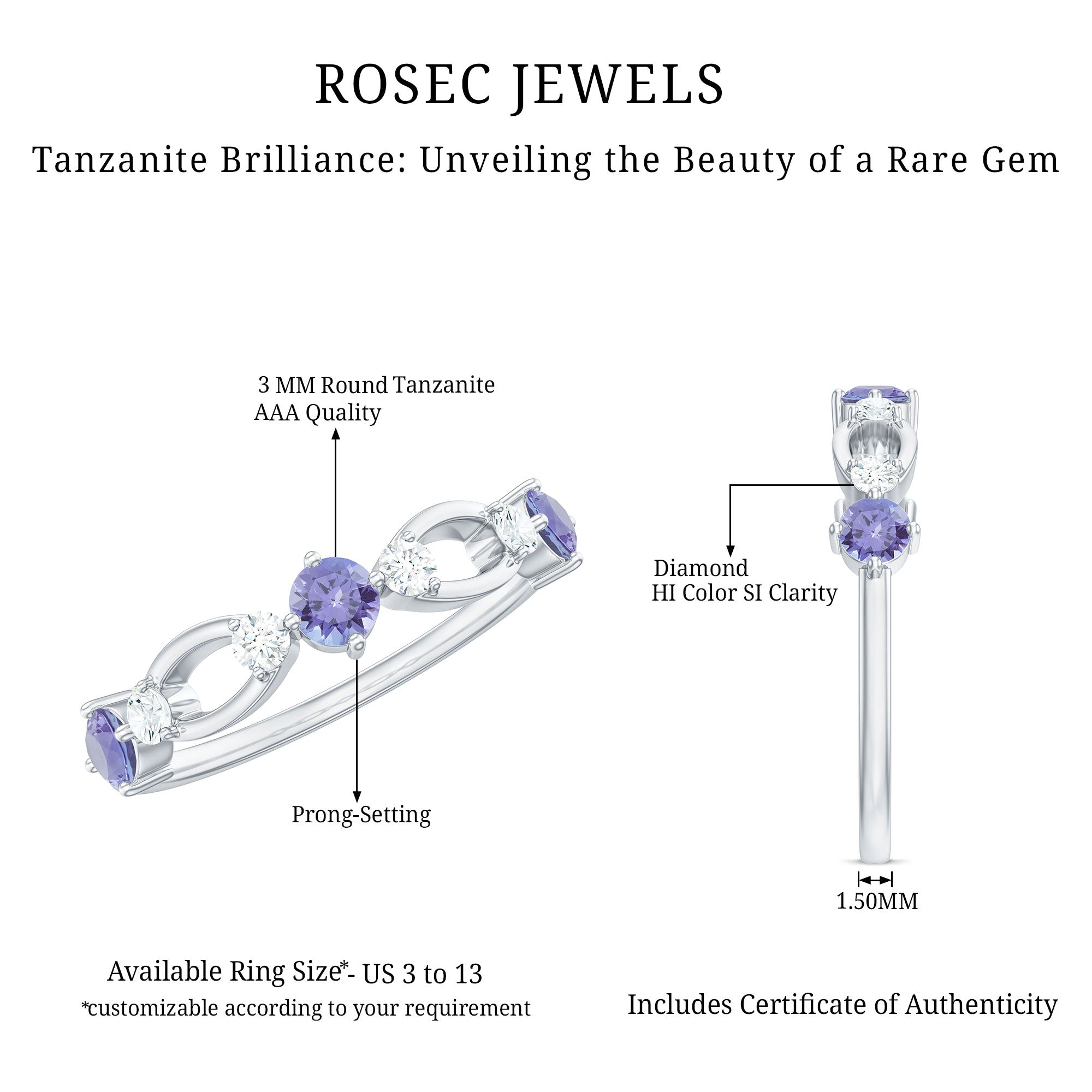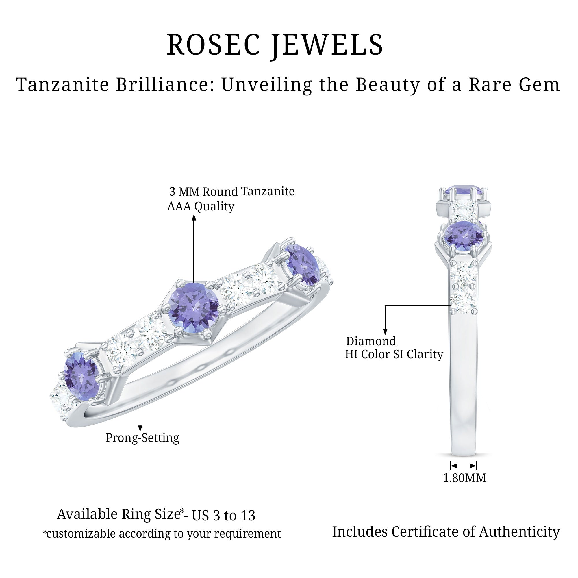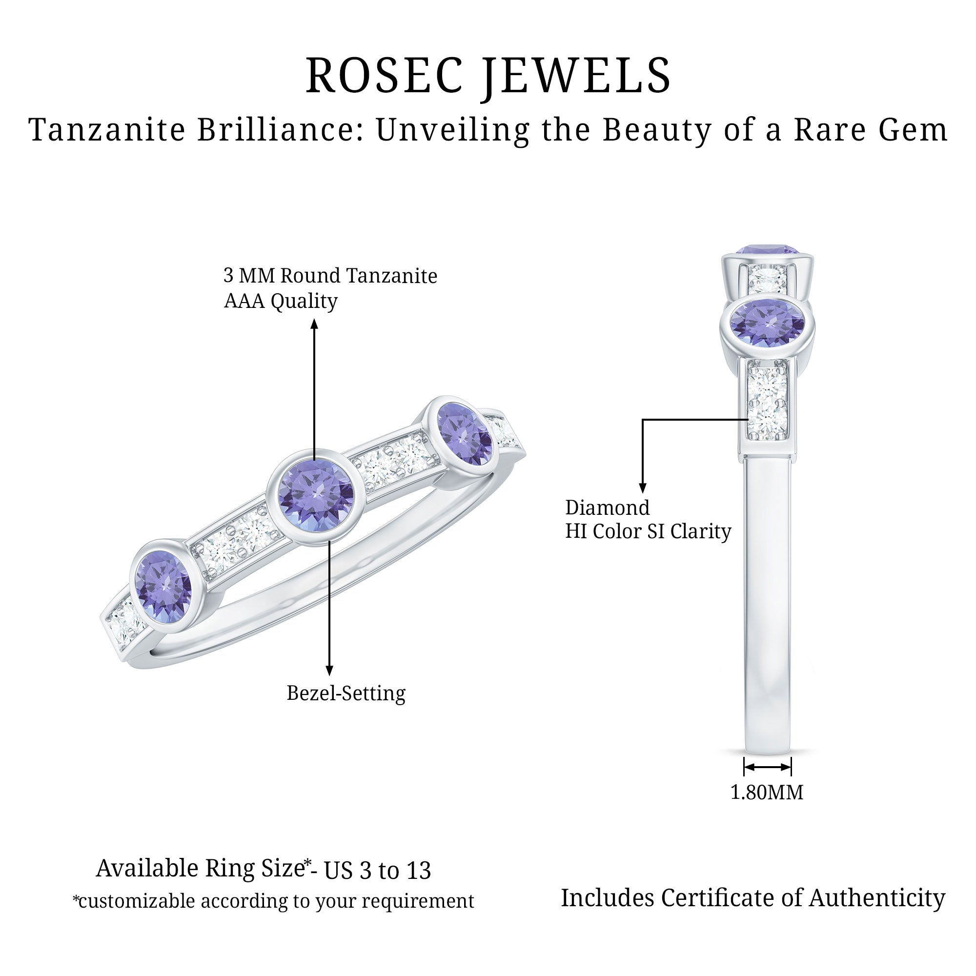 While setting out to buy wedding rings, one should make it a point to look for the SGL certification to ensure the authenticity of tanzanite rings by Rosec Jewels.