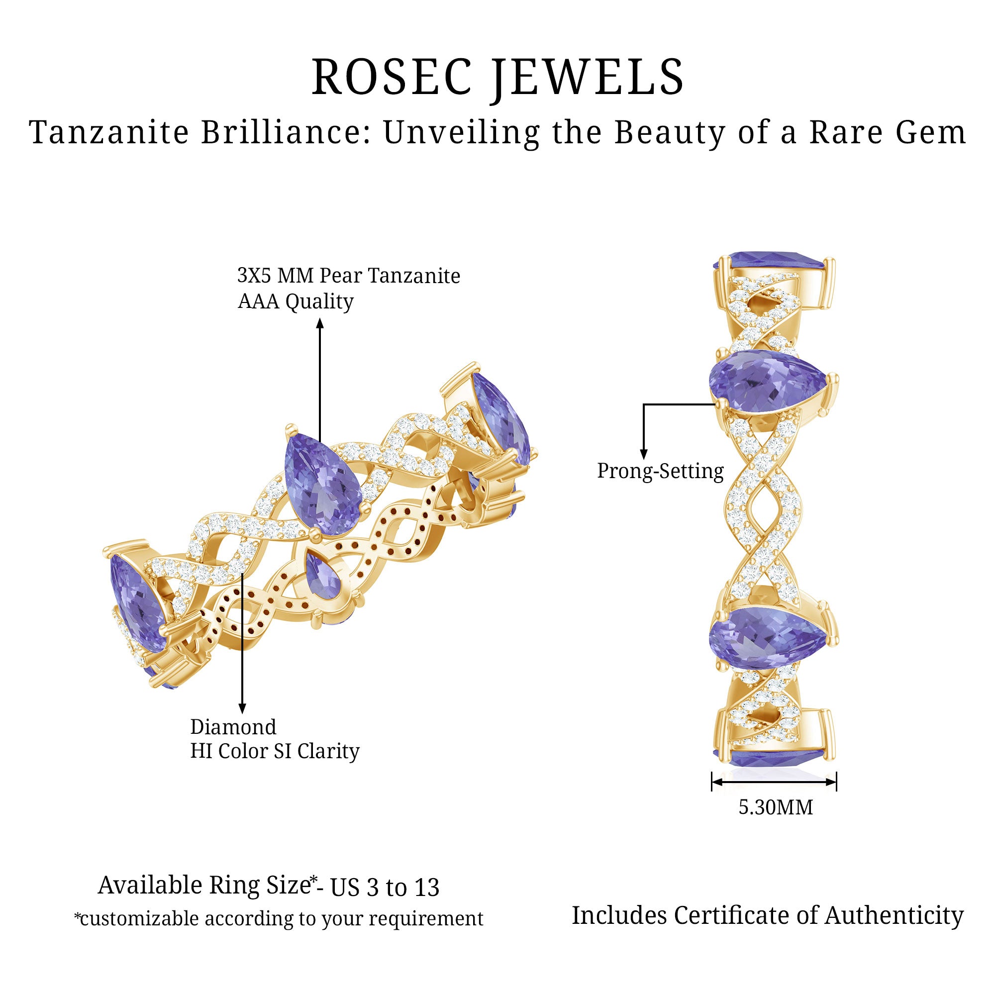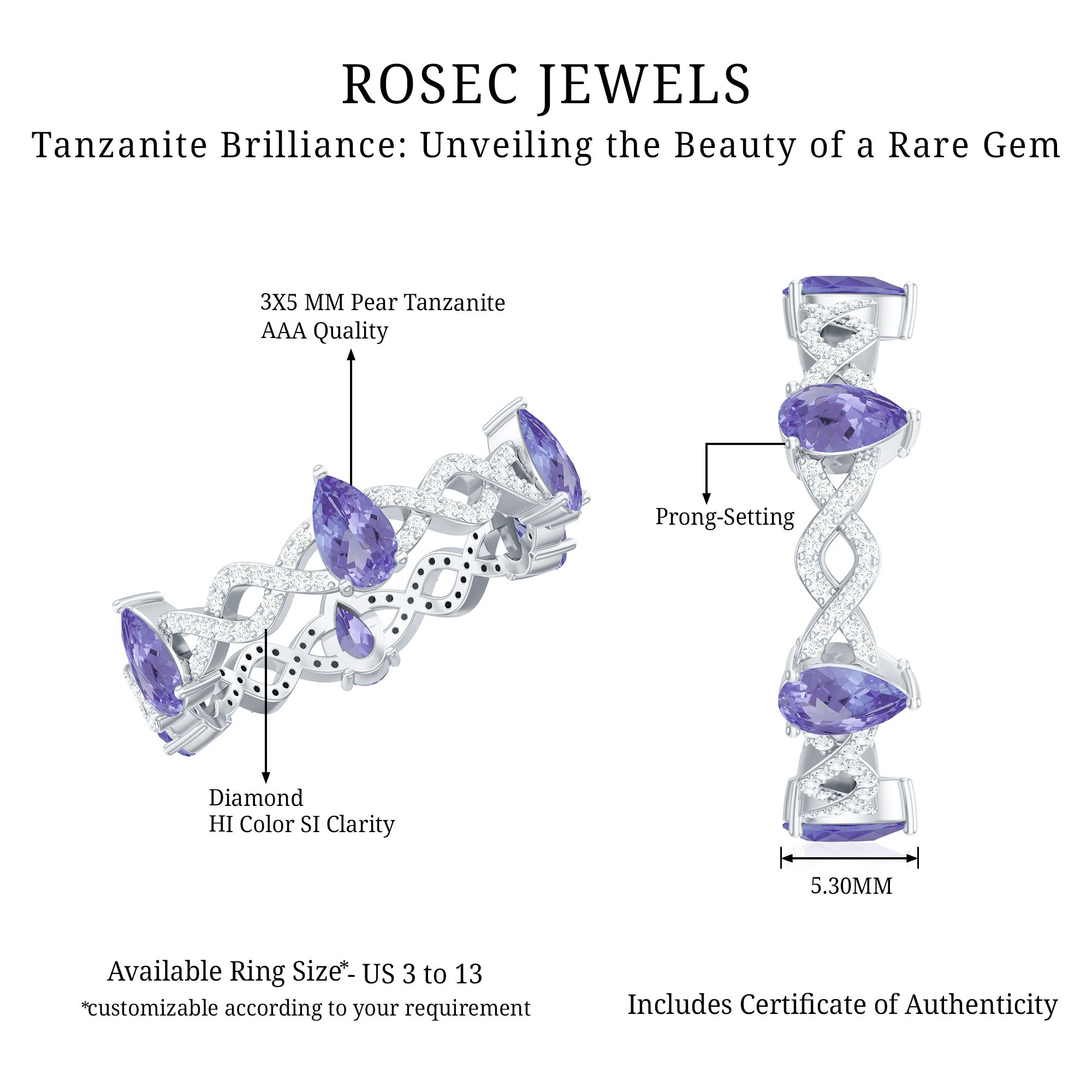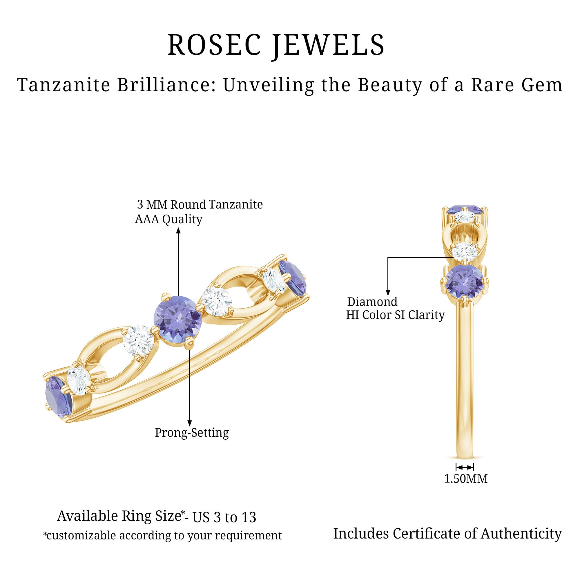 While setting out to buy wedding rings, one should make it a point to look for the SGL certification to ensure the authenticity of tanzanite rings by Rosec Jewels.