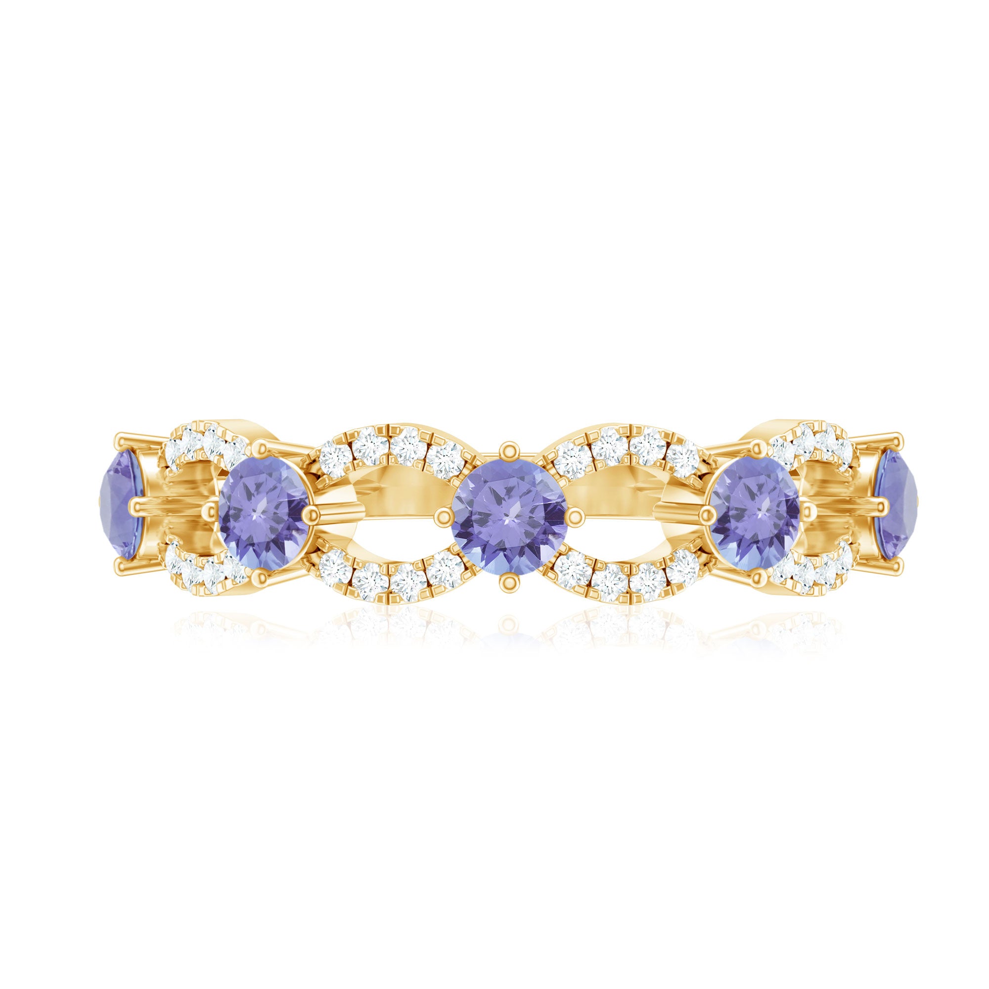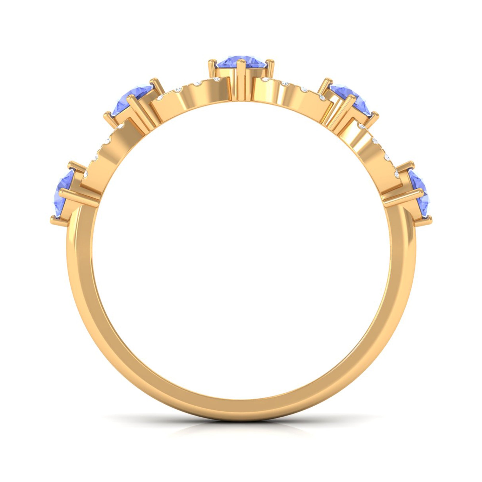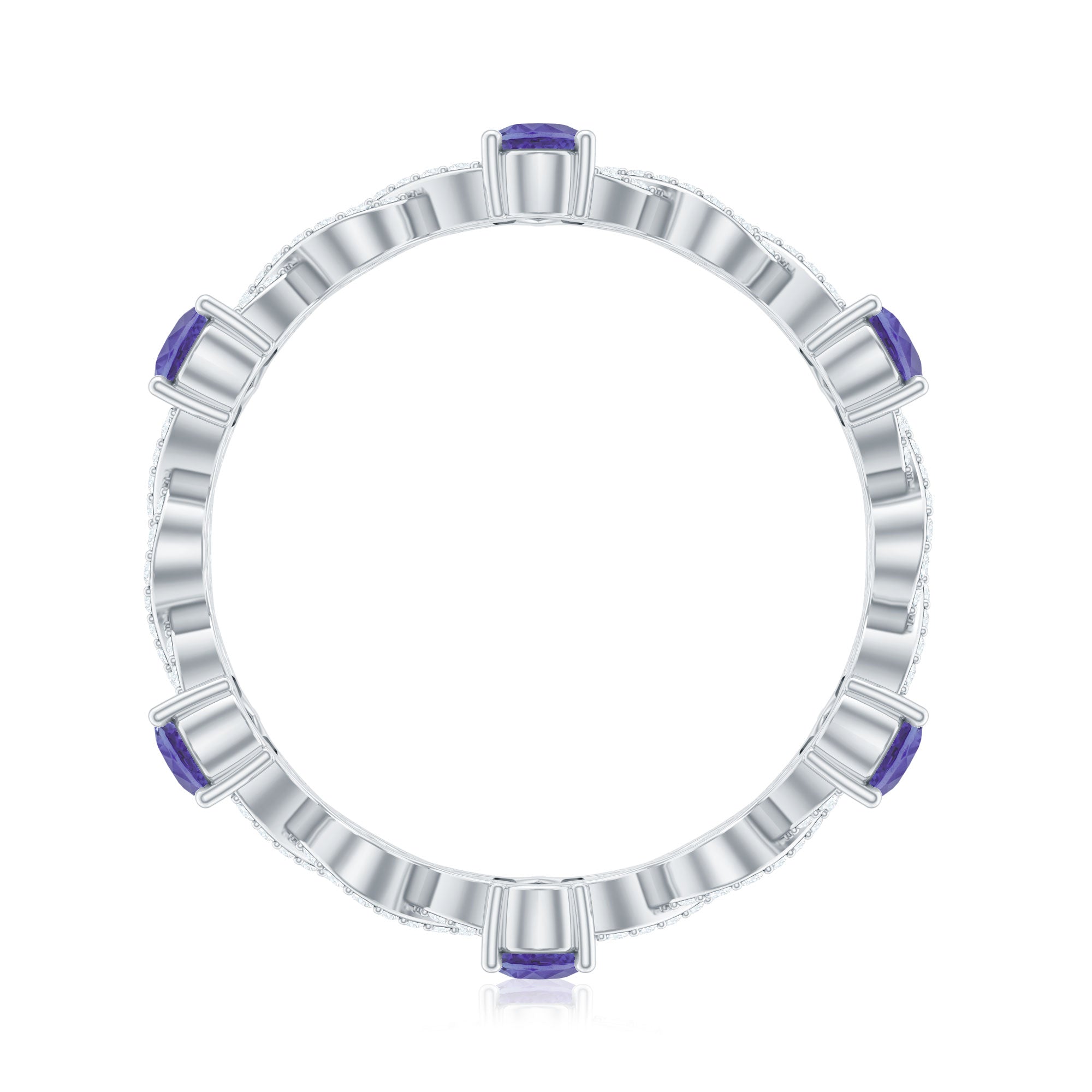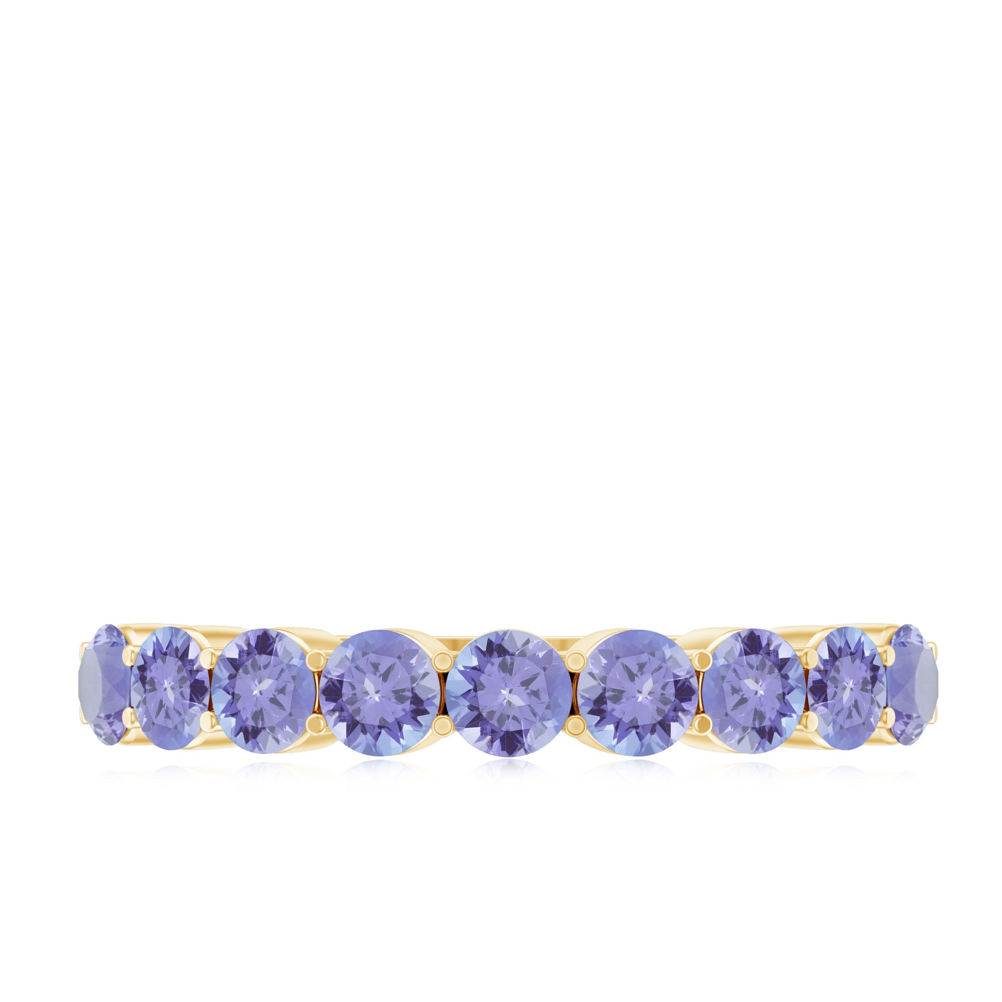 Tanzanite in wedding bands are a great symbolism of new beginnings in relations. While a tanzanite eternity band tend to symbolize eternal love between the married couple.