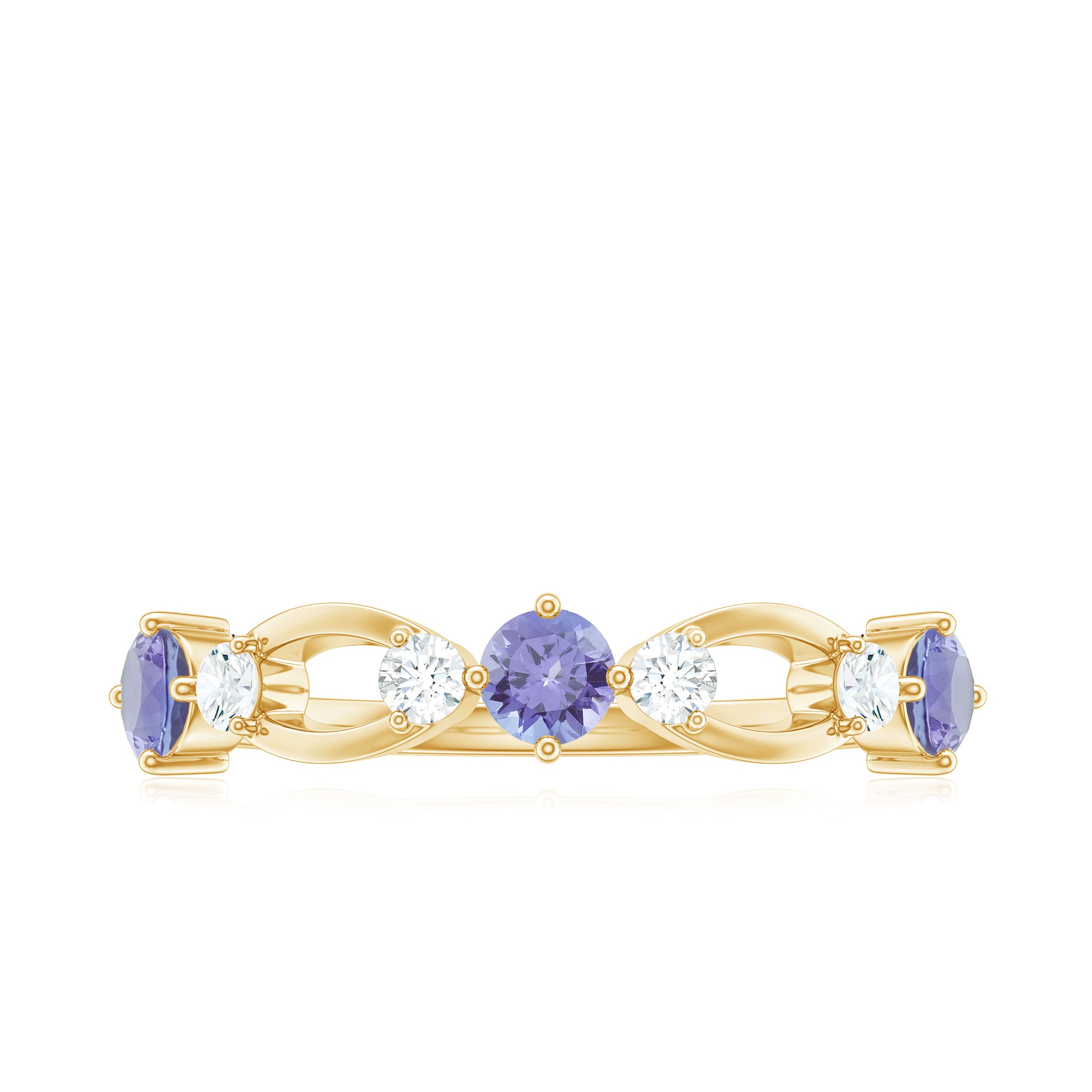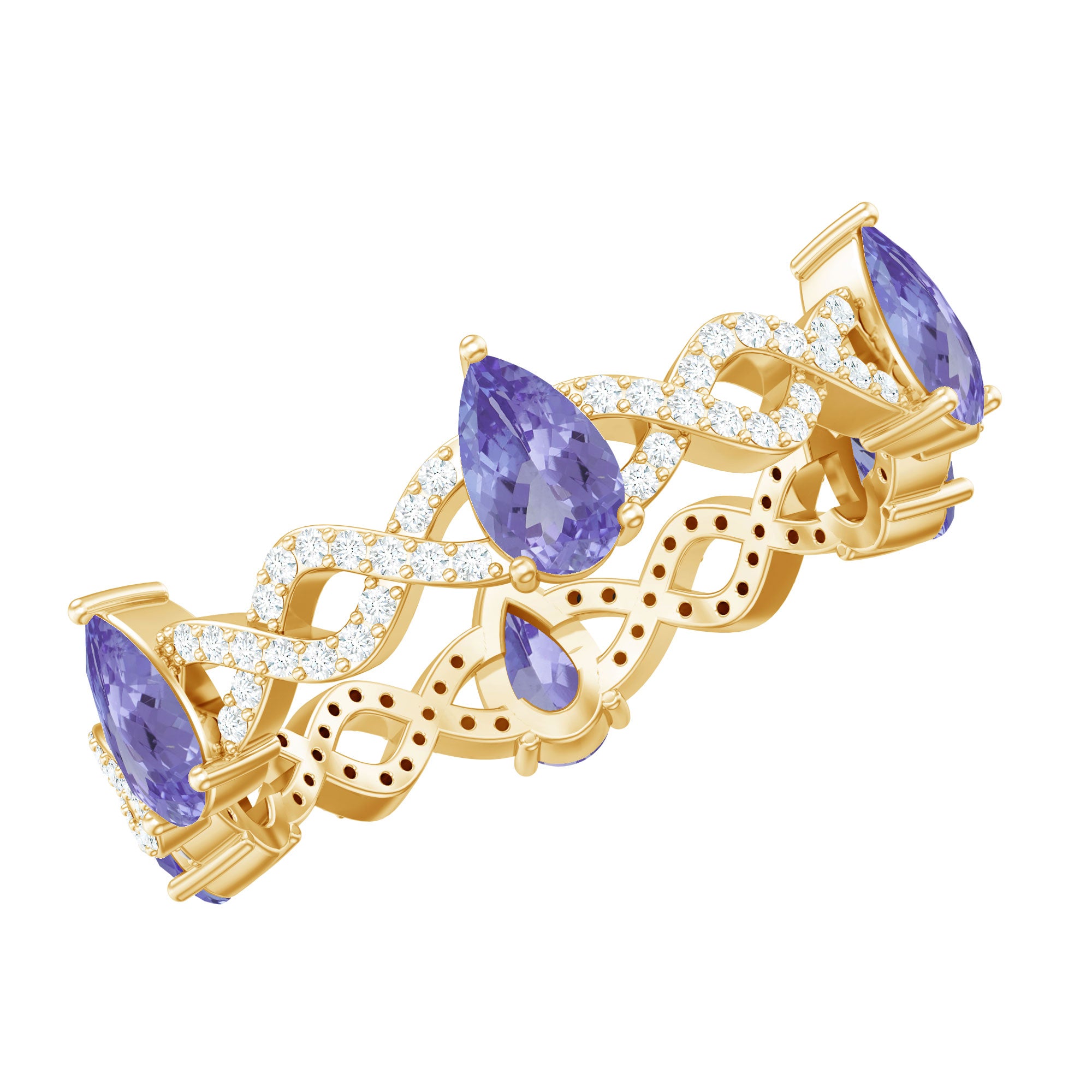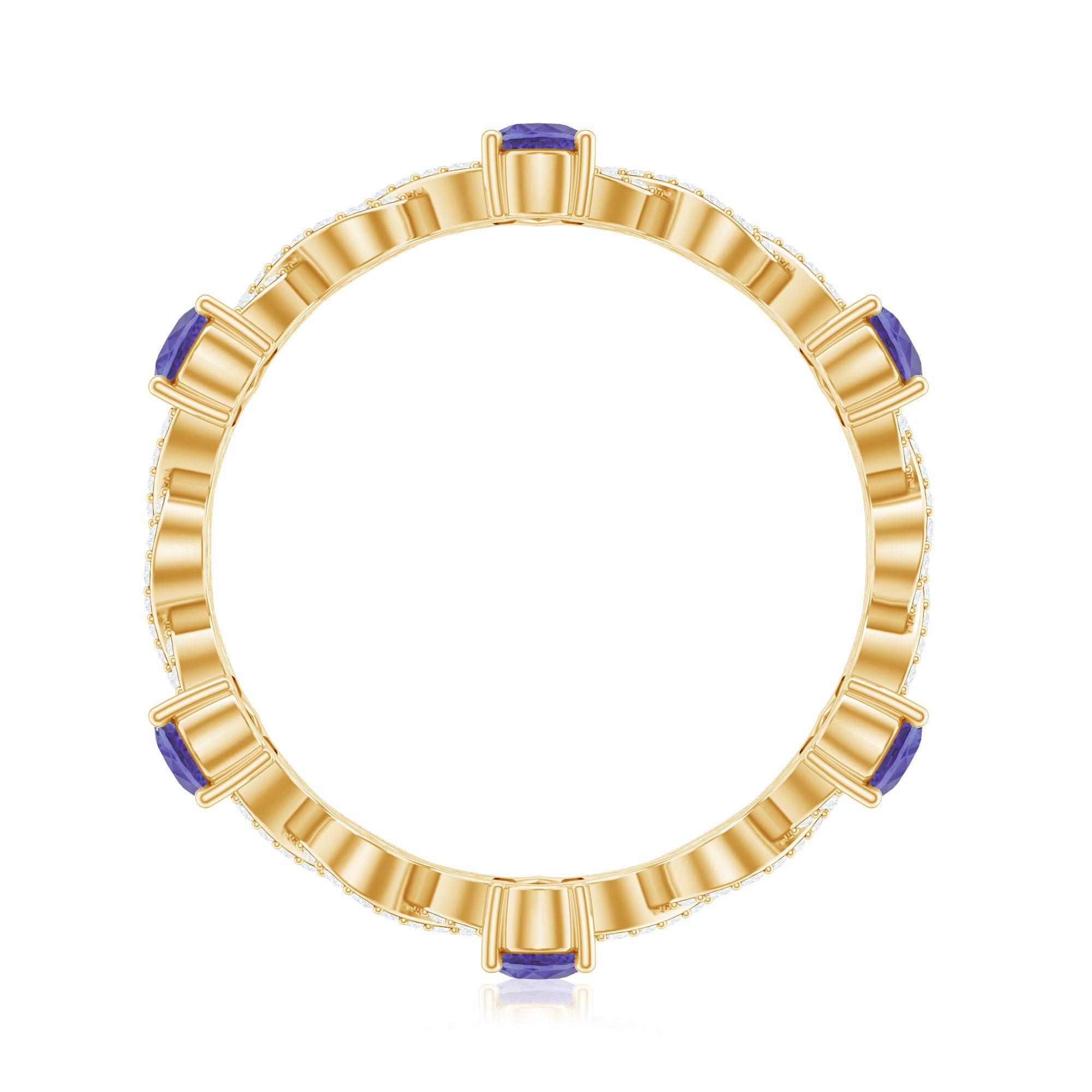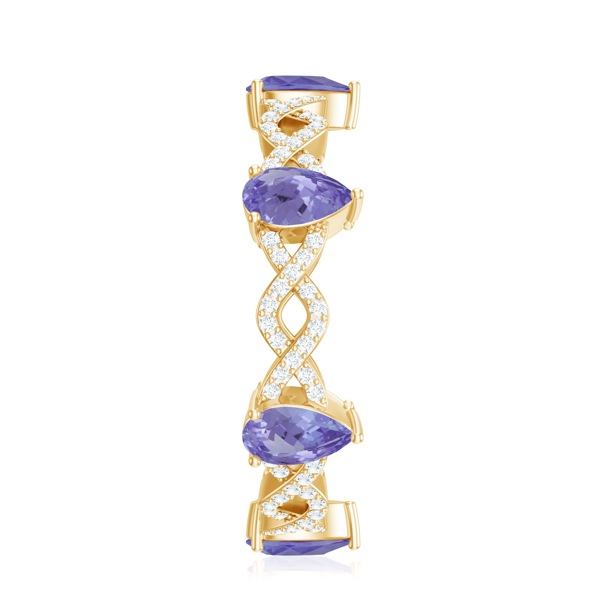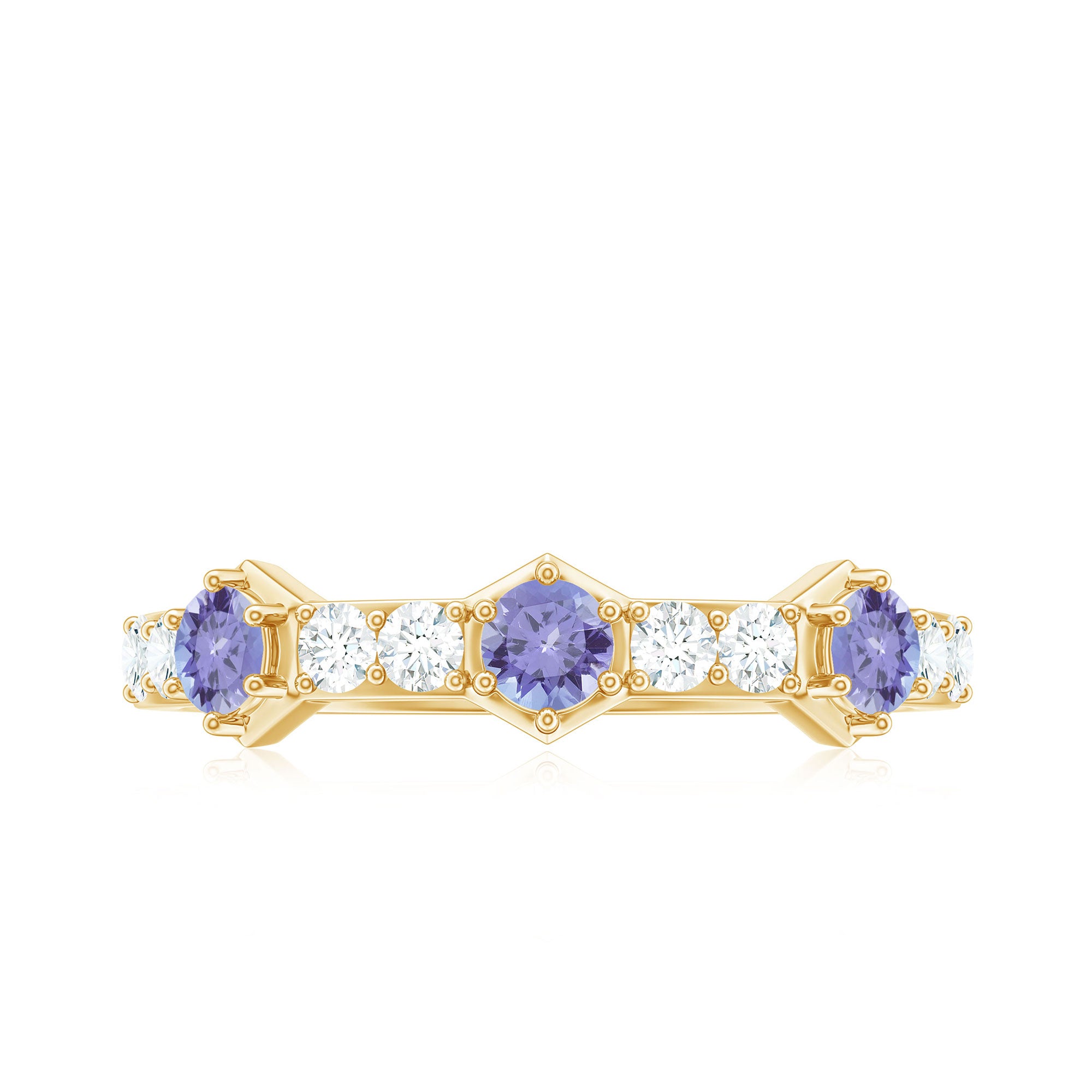 Tanzanite in wedding bands are a great symbolism of new beginnings in relations. While a tanzanite eternity band tend to symbolize eternal love between the married couple.