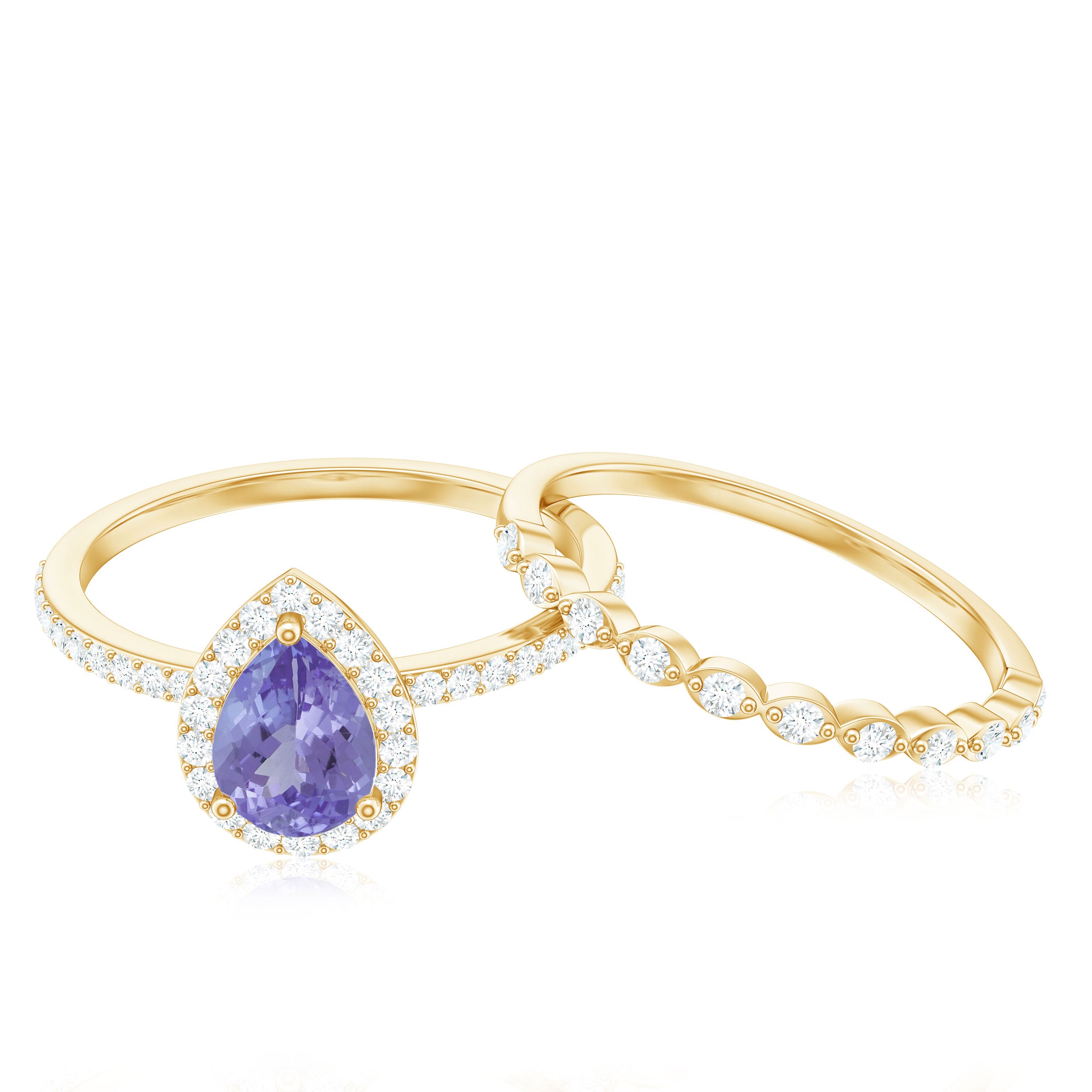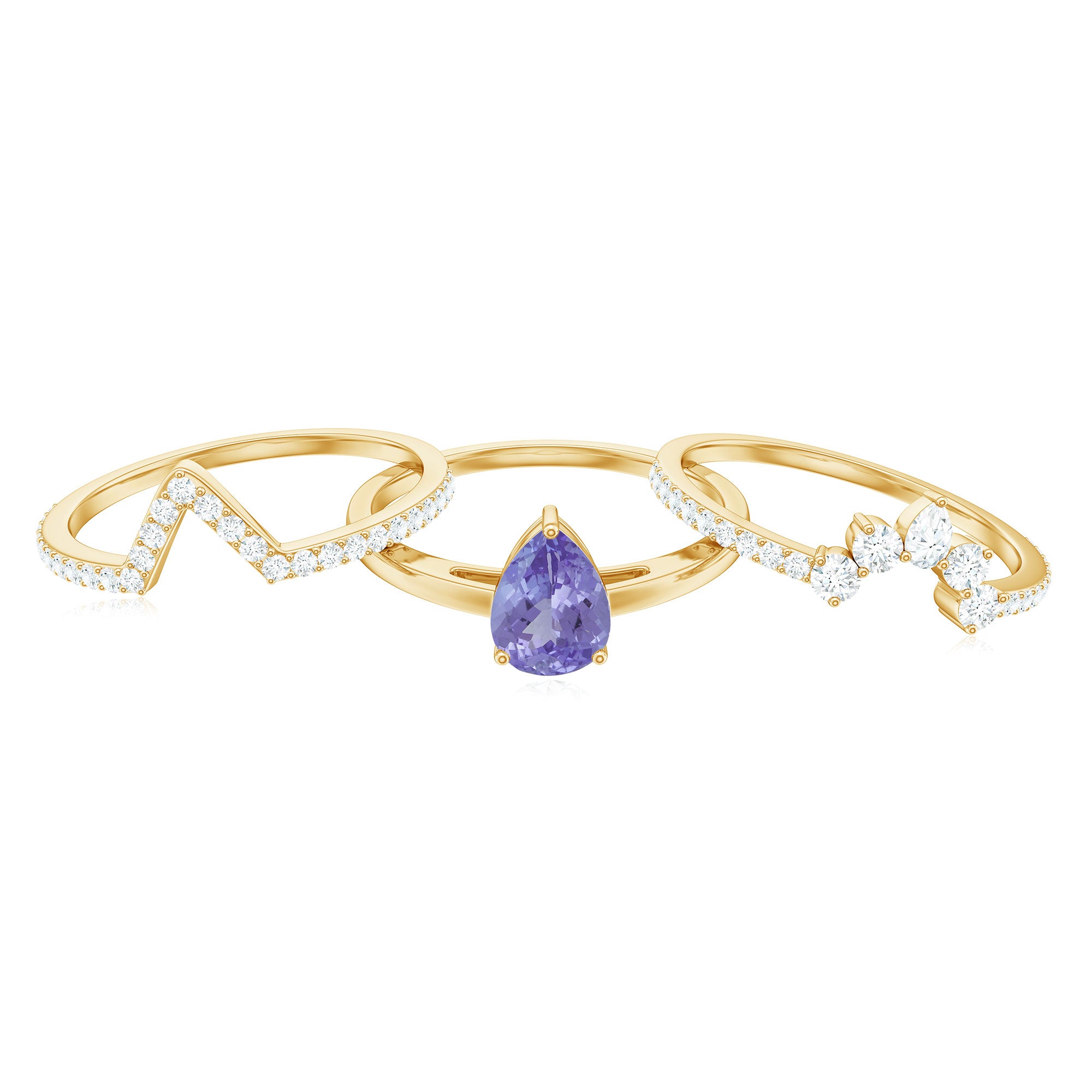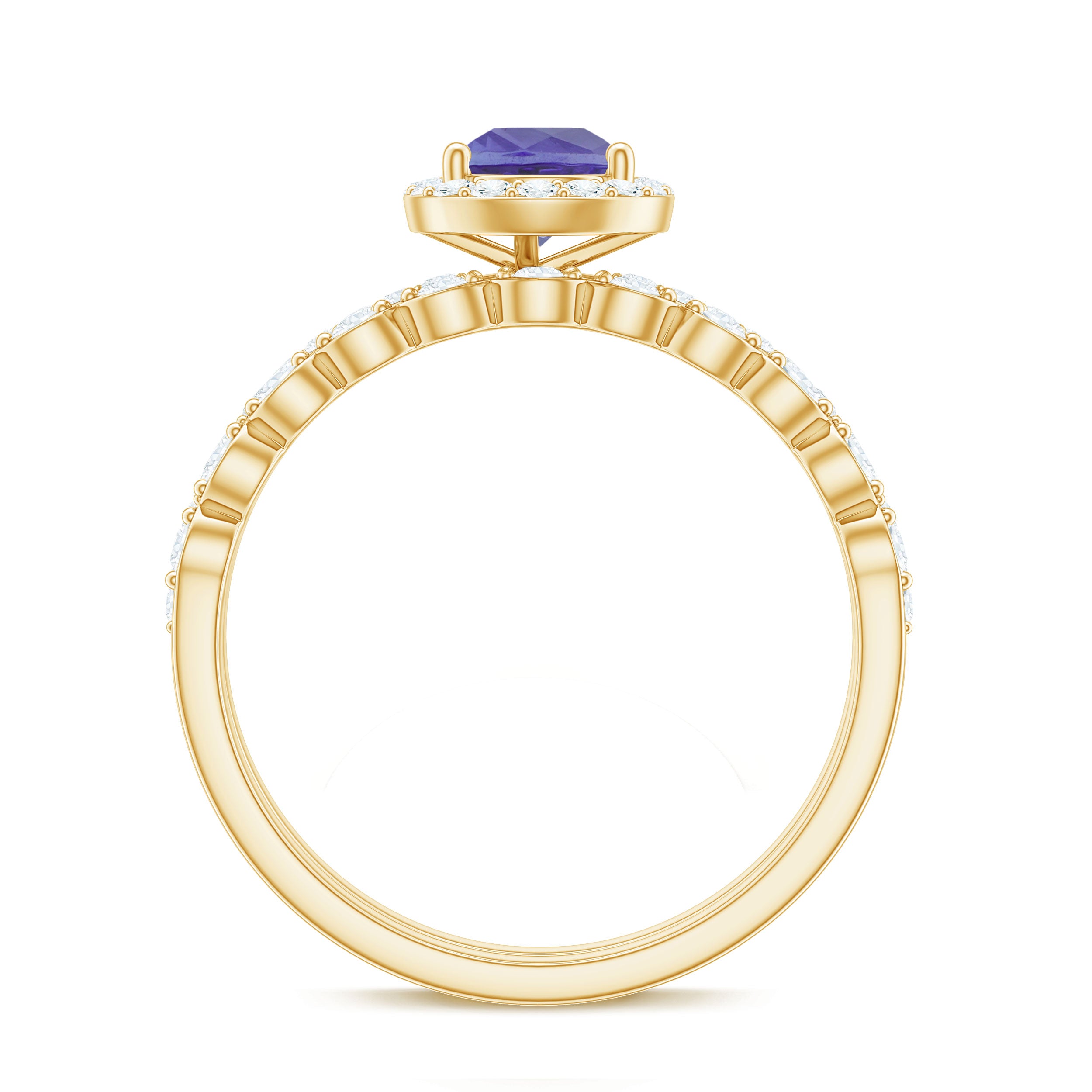 While designing wedding bands for women our artisans combine traditional designs with latest fashion trends. Our lapidarist craft beautiful tanzanite bands with a variety of tanzanite shapes ranging from round, oval, cushion, emerald, princess and many more to bring about a great diversity in tanzanite rings for wedding. Furthermore, the selection of different gold hues with different purity bring further assortment to tanzanite rings.