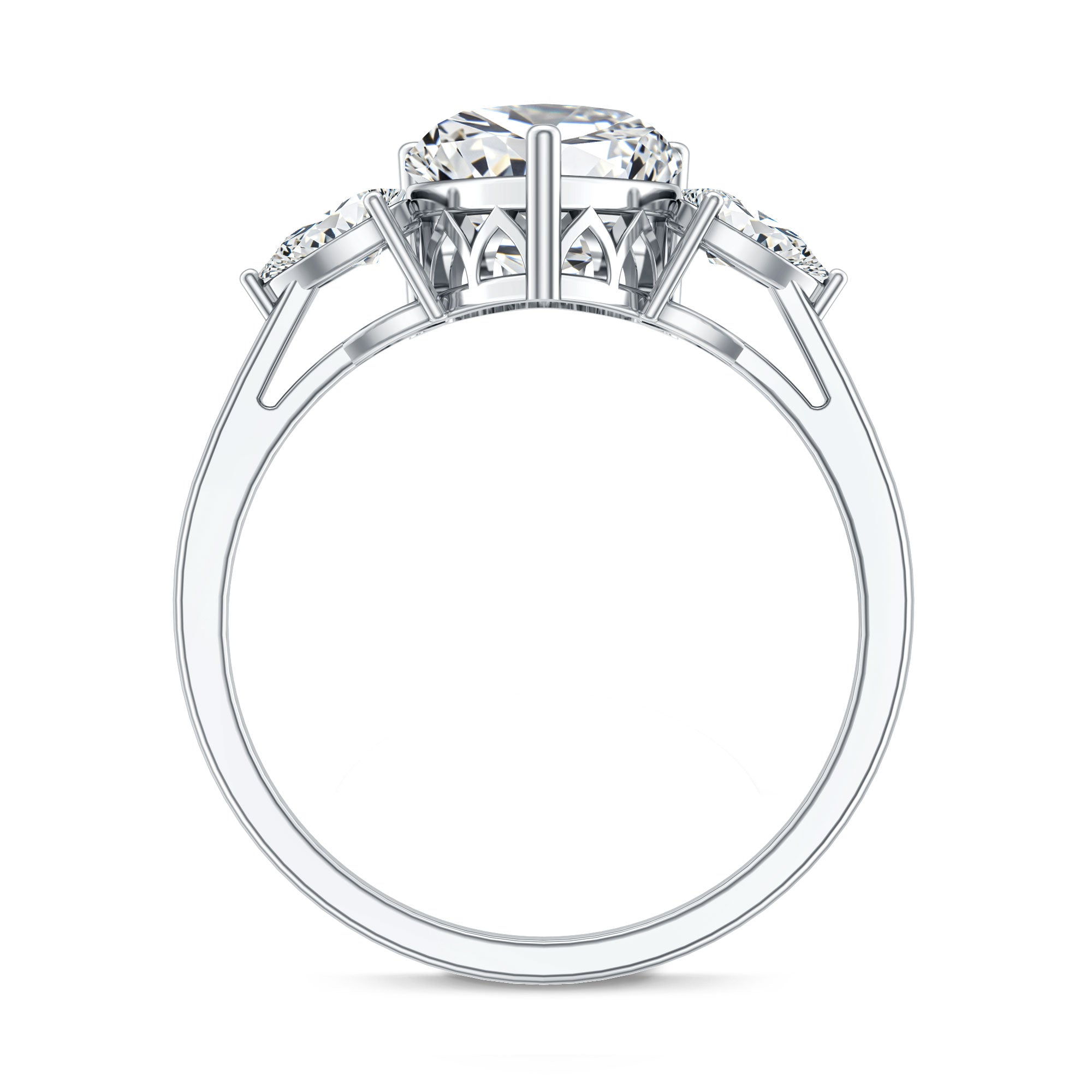 Pear Shape: Pear shape three stone engagement rings offer timeless elegance, blending tradition with modern flair. The unique shape symbolizes love's journey.