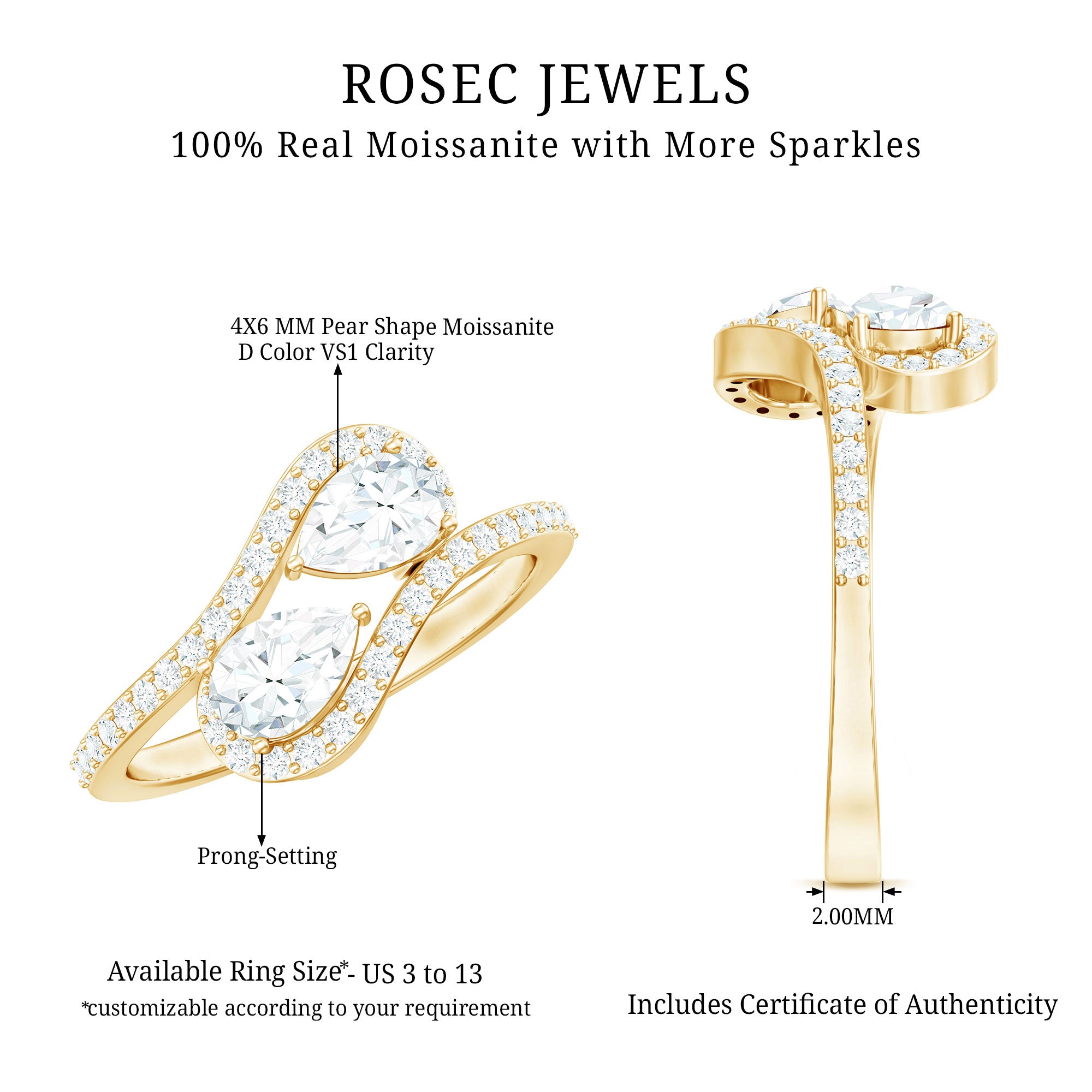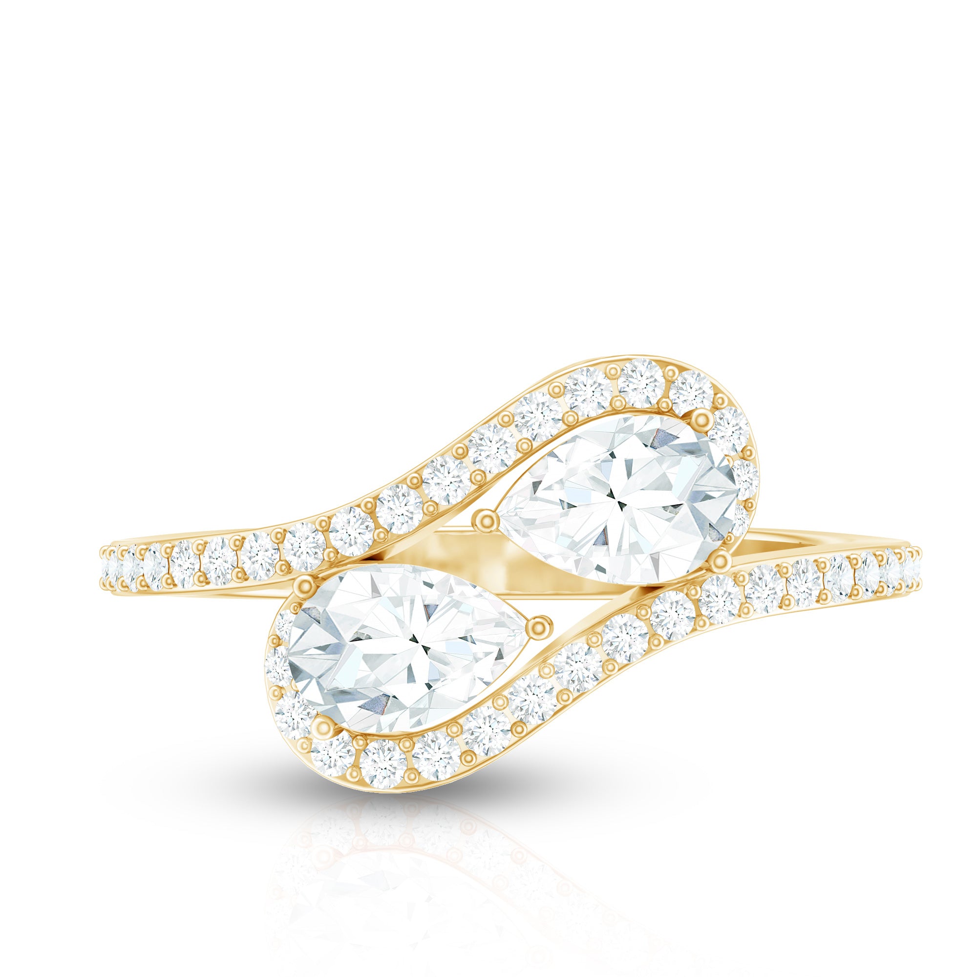 Pear: If you’re on the lookout for a completely contemporary and fancy Two Stone Ring, consider going for the one fashioned in Pear Cut (also referred to as Teardrop). Each stone here boasts a pointy end on one hand and a rounded one on the other.