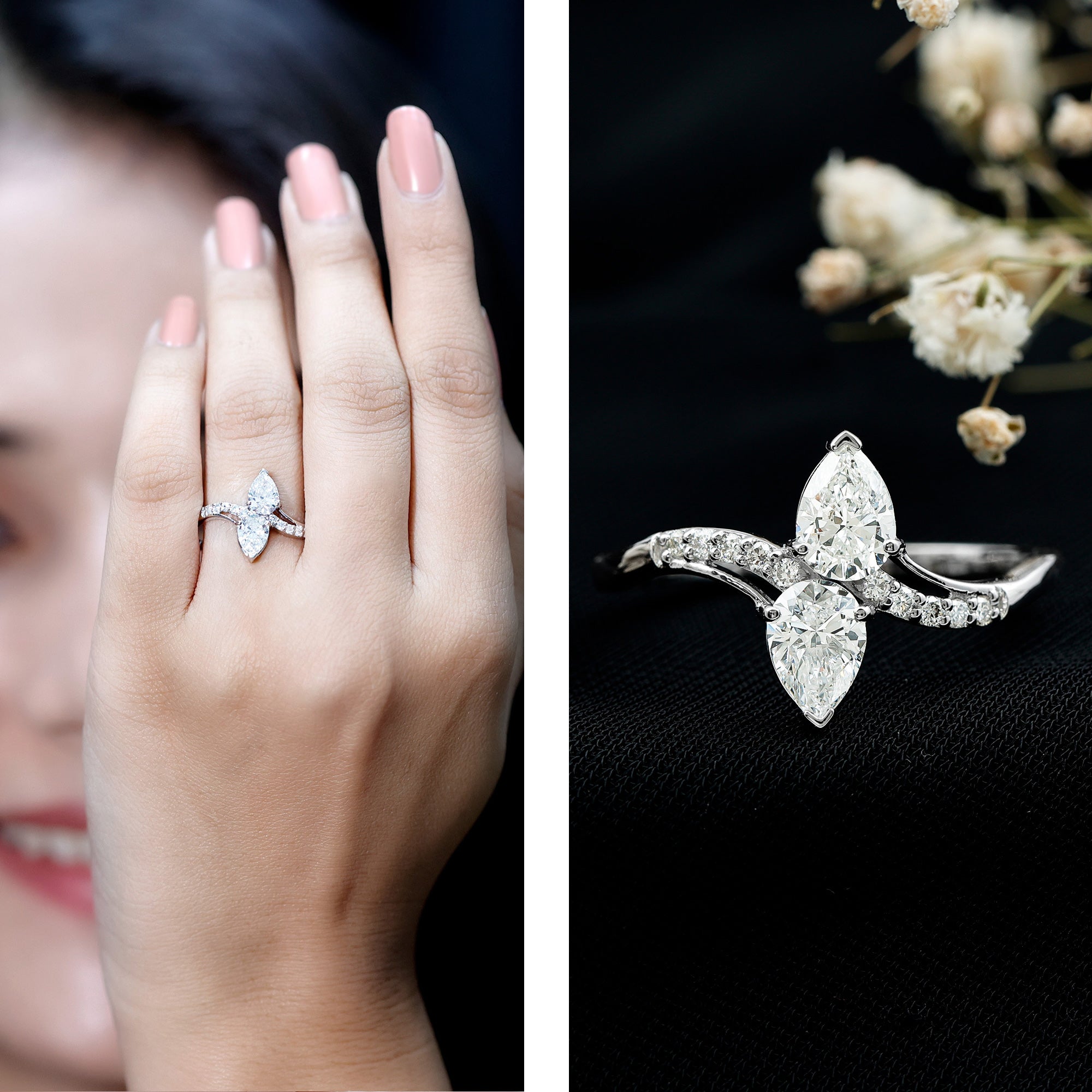 If we speak of the design, a Toi Et Moi Style Ring wraps around the finger and boasts twin stones of Diamonds/Gemstones that are nestled close to each other. Since unlike the traditional Solitaire ring, it is a ring with 2 stones, it speaks to more unconventional and contemporary senses of style.