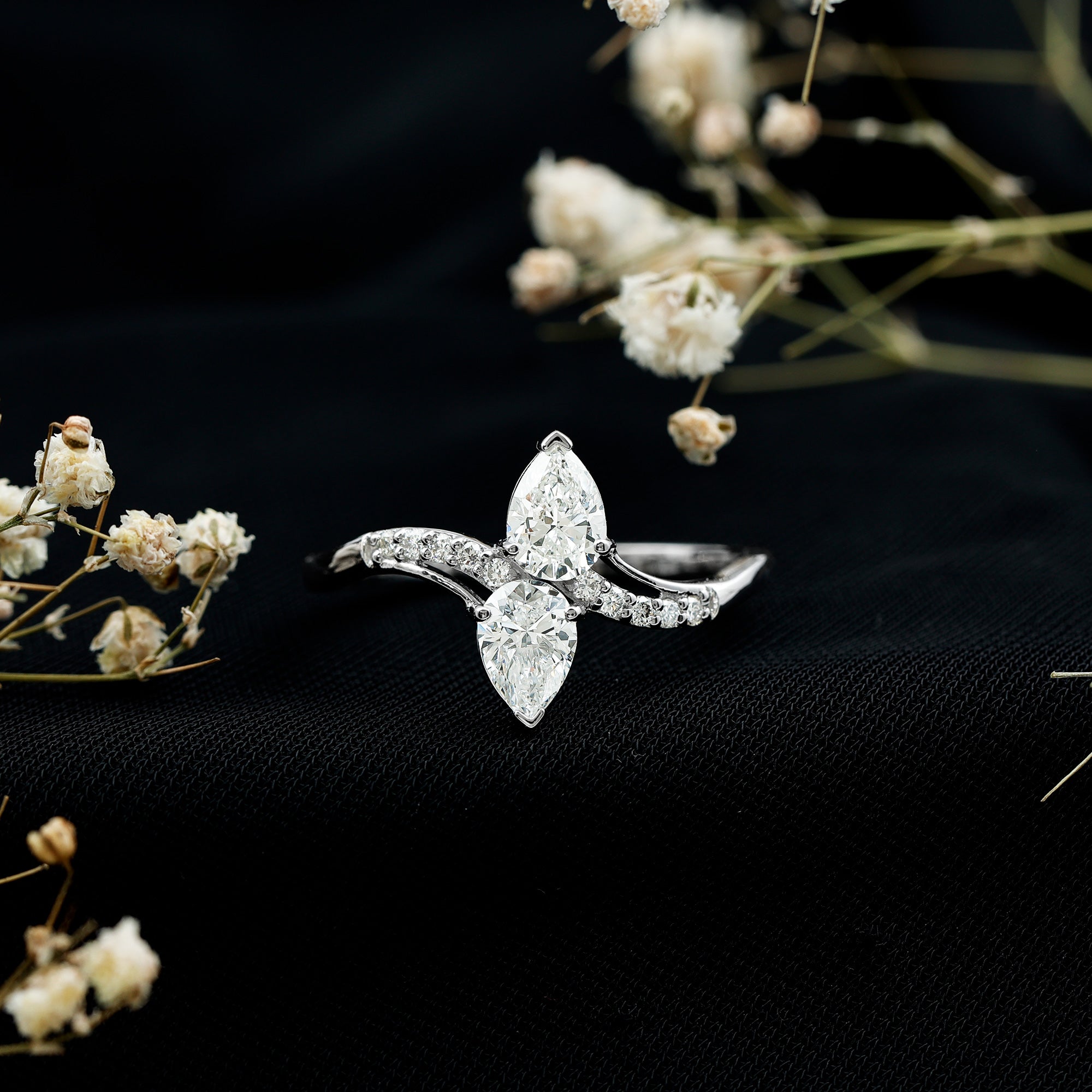 Pear: If you’re on the lookout for a completely contemporary and fancy Two Stone Ring, consider going for the one fashioned in Pear Cut (also referred to as Teardrop). Each stone here boasts a pointy end on one hand and a rounded one on the other.