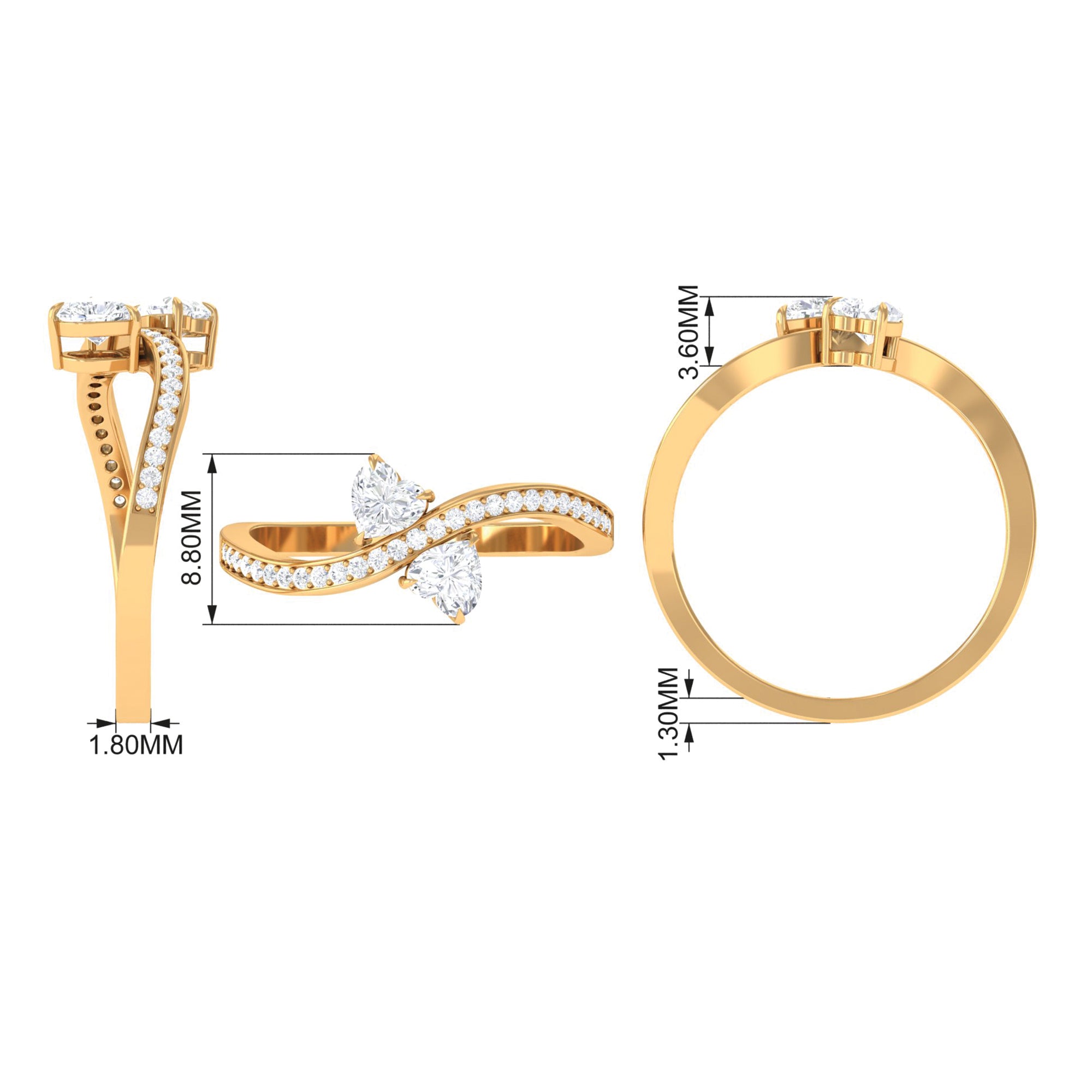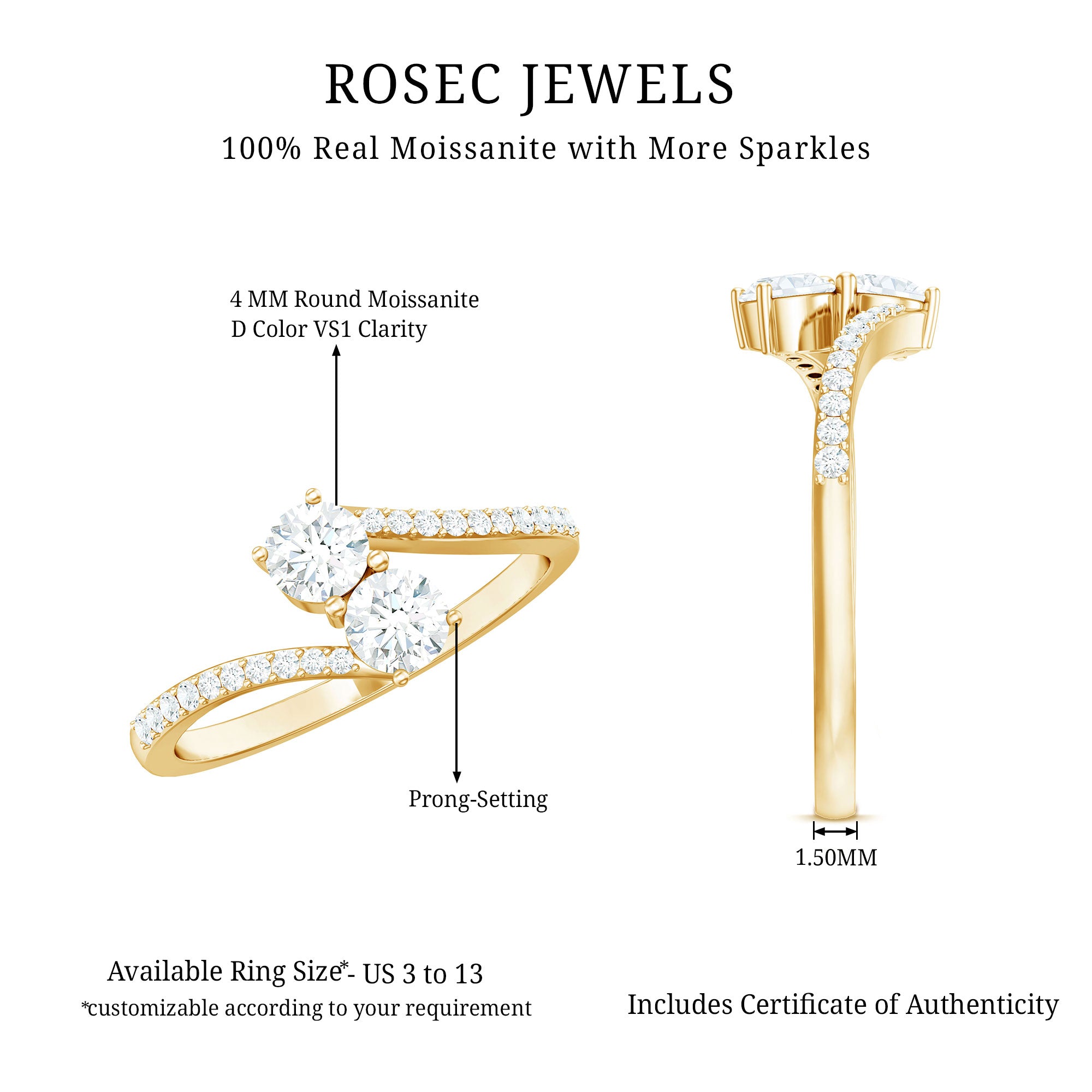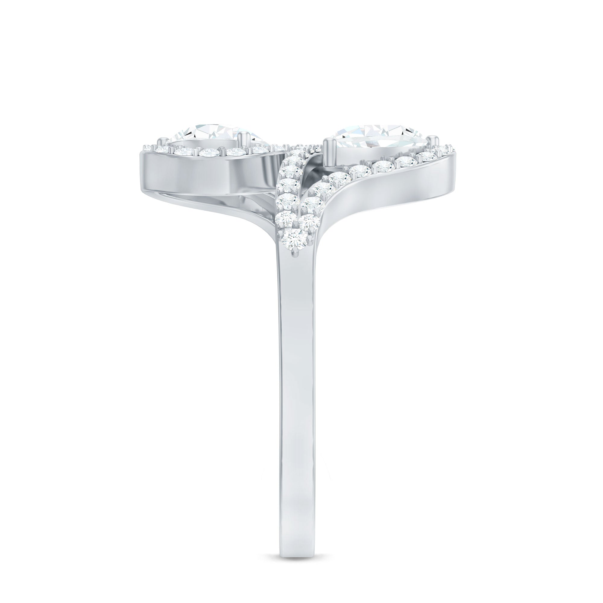 Round: If you wish for a hint of classic touch in your Modern Toi Et Moi Ring, it’s best to go for the one fashioned with Conventional Round Cut Stones. What’s more, owing to the strategical arrangement of its 57 facets (per stone), it exudes an unparalleled brilliance.