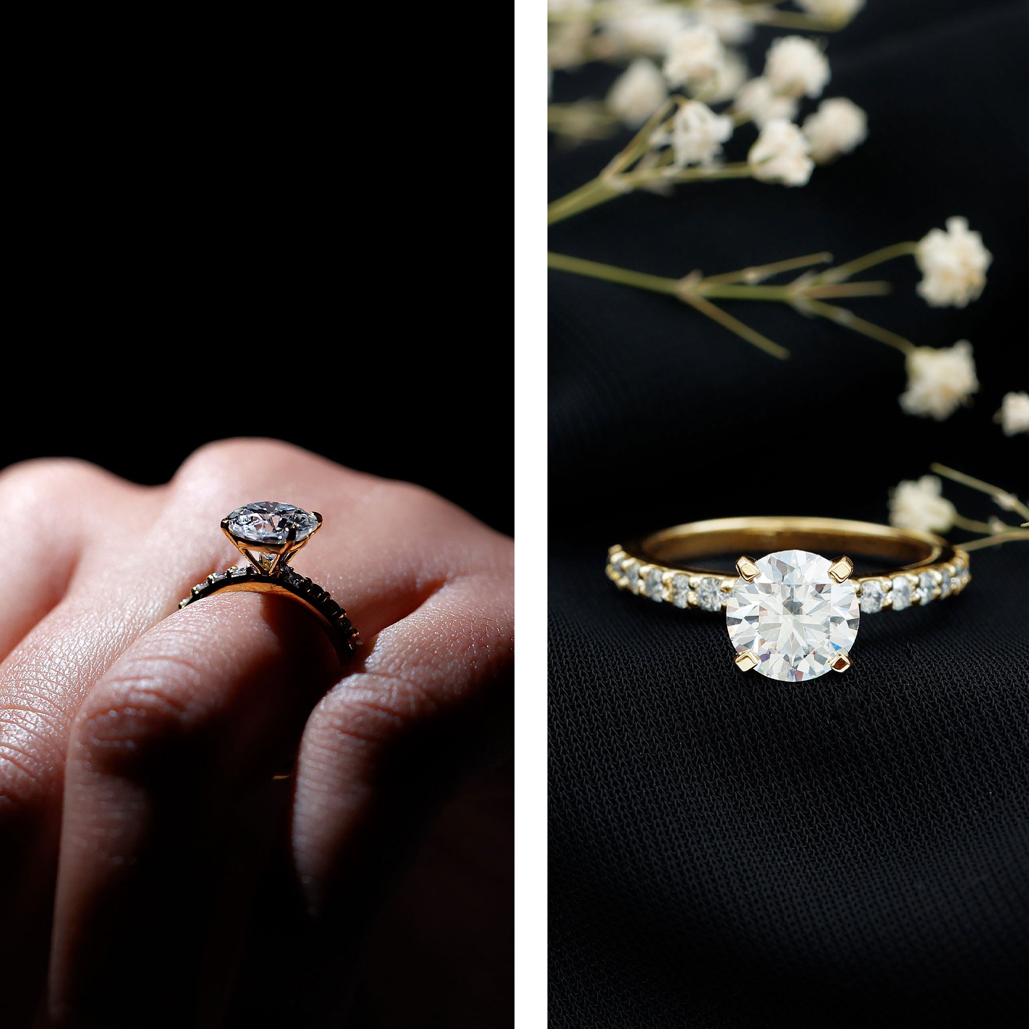 You can get your oval engagement ring as a solitaire or a halo. Solitaire looks classic, whereas a halo adds extra sparkles and extravagance to the ring.