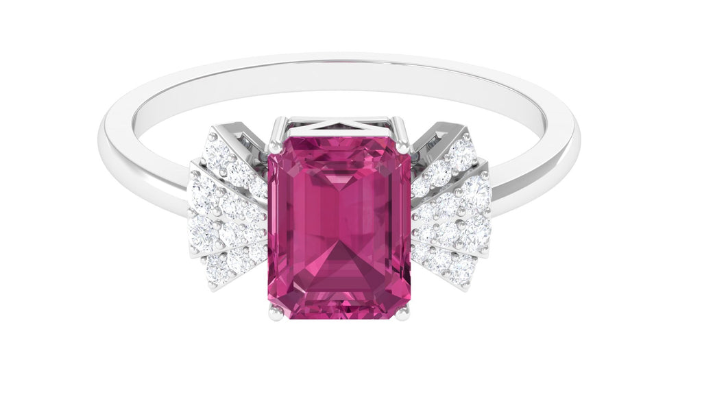 Easily the go-to ring style for the classic bride-to-be, this Solitaire Ring is defined by a Centerpiece of Pink Tourmaline that stands all alone (preferably mounted in a Simple Setting). The feminine appeal of Pink Tourmaline here is meant to catch the most attention owing to its enormous size of 6 MM or more. While the minimalist and timeless aesthetic of this engagement ring sets it apart, its versatility (thanks to the many shapes it is fashioned with) deserves just as many praises. While a Round Pink Tourmaline Engagement Ring speaks to conventional couples, the one fashioned with Pear, Marquise, or Pear Cut is more on the fancier side of the spectrum. If you’re the kind of bride-to-be who fancies a grand and slightly Vintage Pink Tourmaline Engagement Ring, go for the one handcrafted with Asscher, Cushion, or Emerald Cut.