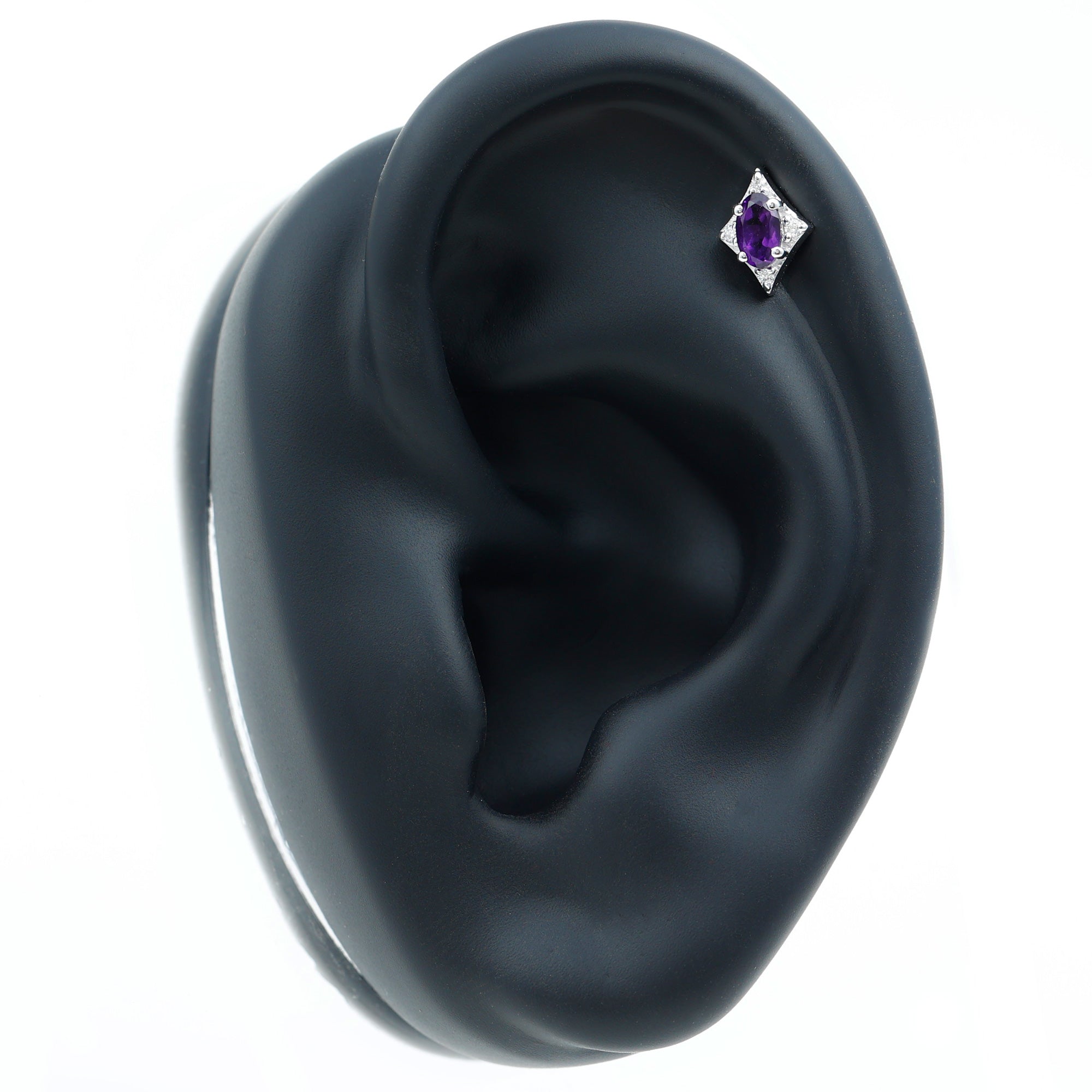 Diamond and moissanite is the most popular gemstones in tragus-piercing earrings. other than these two gemstones you can also try ruby, sapphire, emerald, and lab-grown gemstones.
