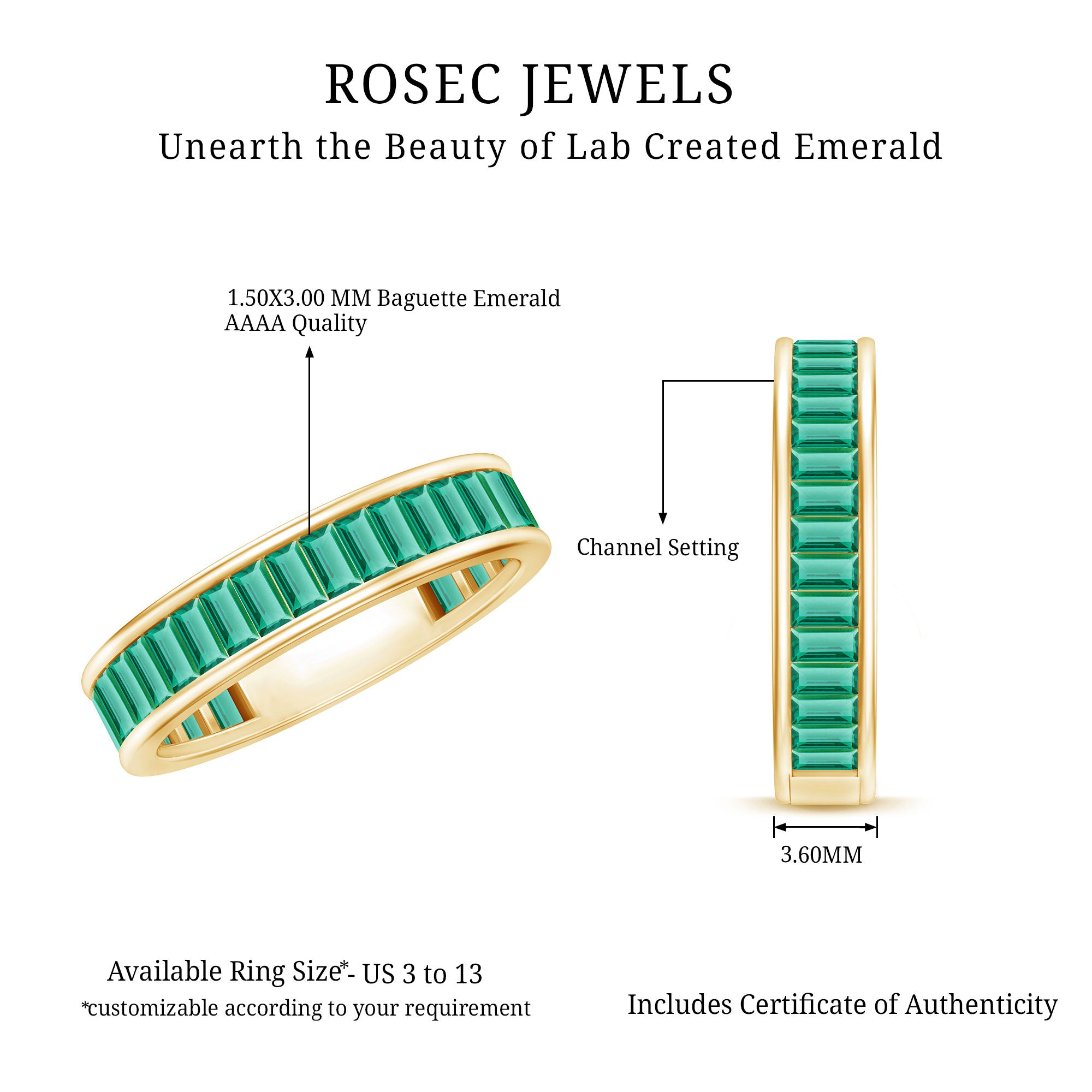 Genuine and Pure: Rosec Jewels proudly presents authentic jewelry crafted from genuine gold (10k, 14k, 18k White and Yellow Gold) and 925 sterling silver. Each ring comes with a certificate, guaranteeing its authenticity and ensuring you receive the true and captivating beauty of an authentic eternity ring.