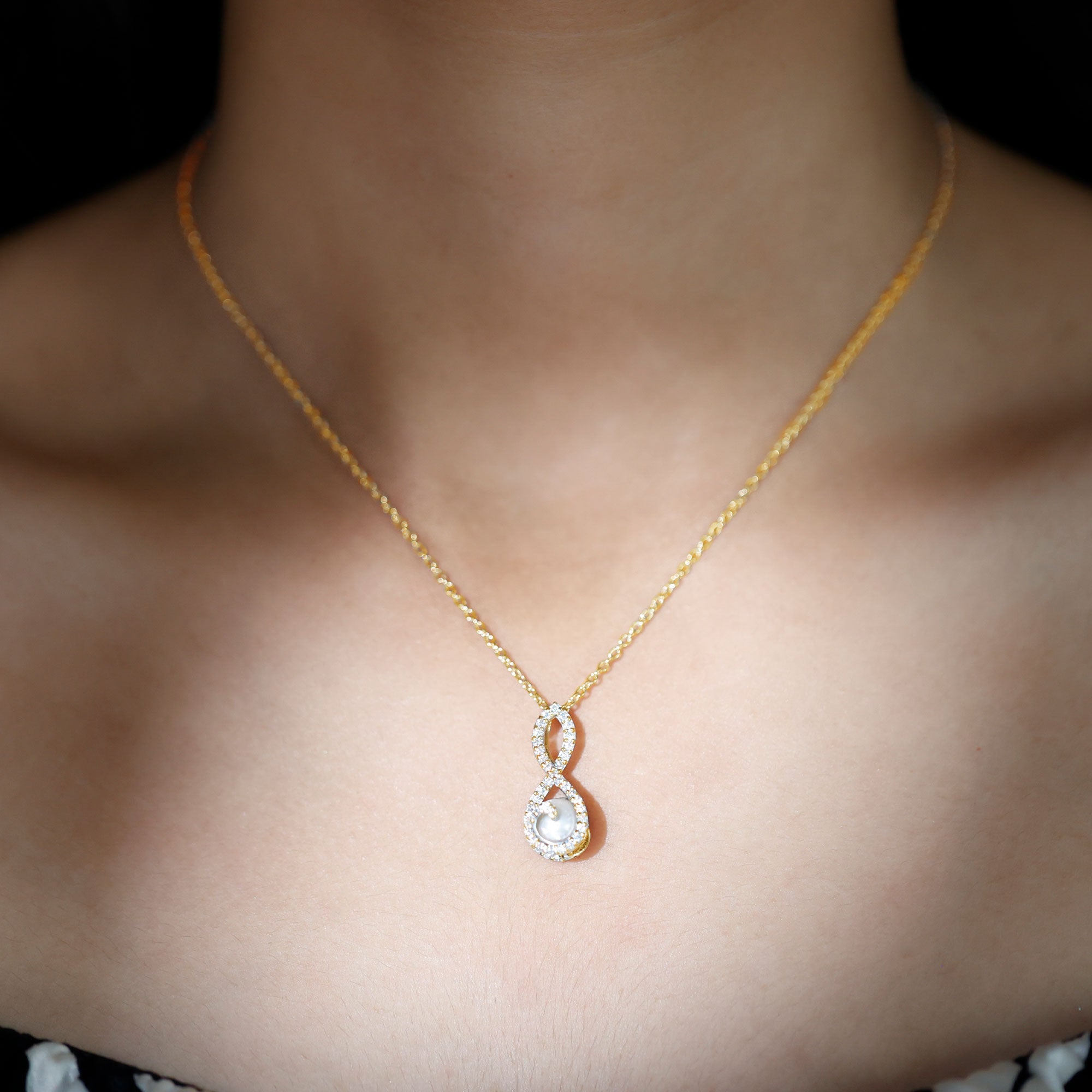 The infinity symbol represents eternity and enduring love, making it a popular and symbolic choice for romantic jewelry.