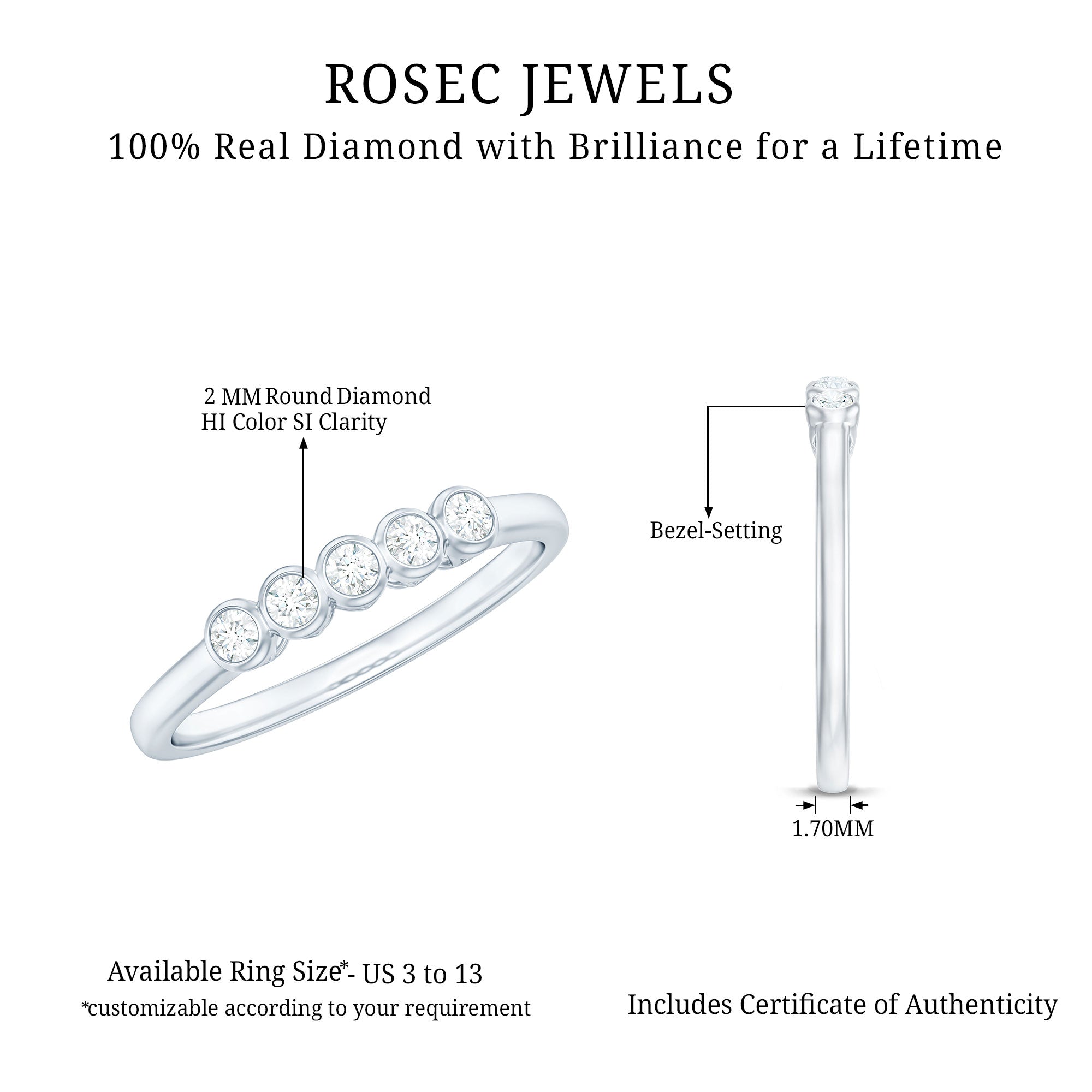 Genuine and Pure: Rosec Jewels proudly presents authentic jewelry crafted from genuine gold (10k, 14k, 18k White and Yellow Gold) and 925 sterling silver. Each ring comes with a certificate, guaranteeing its authenticity and ensuring you receive the true and captivating beauty of an authentic eternity ring.