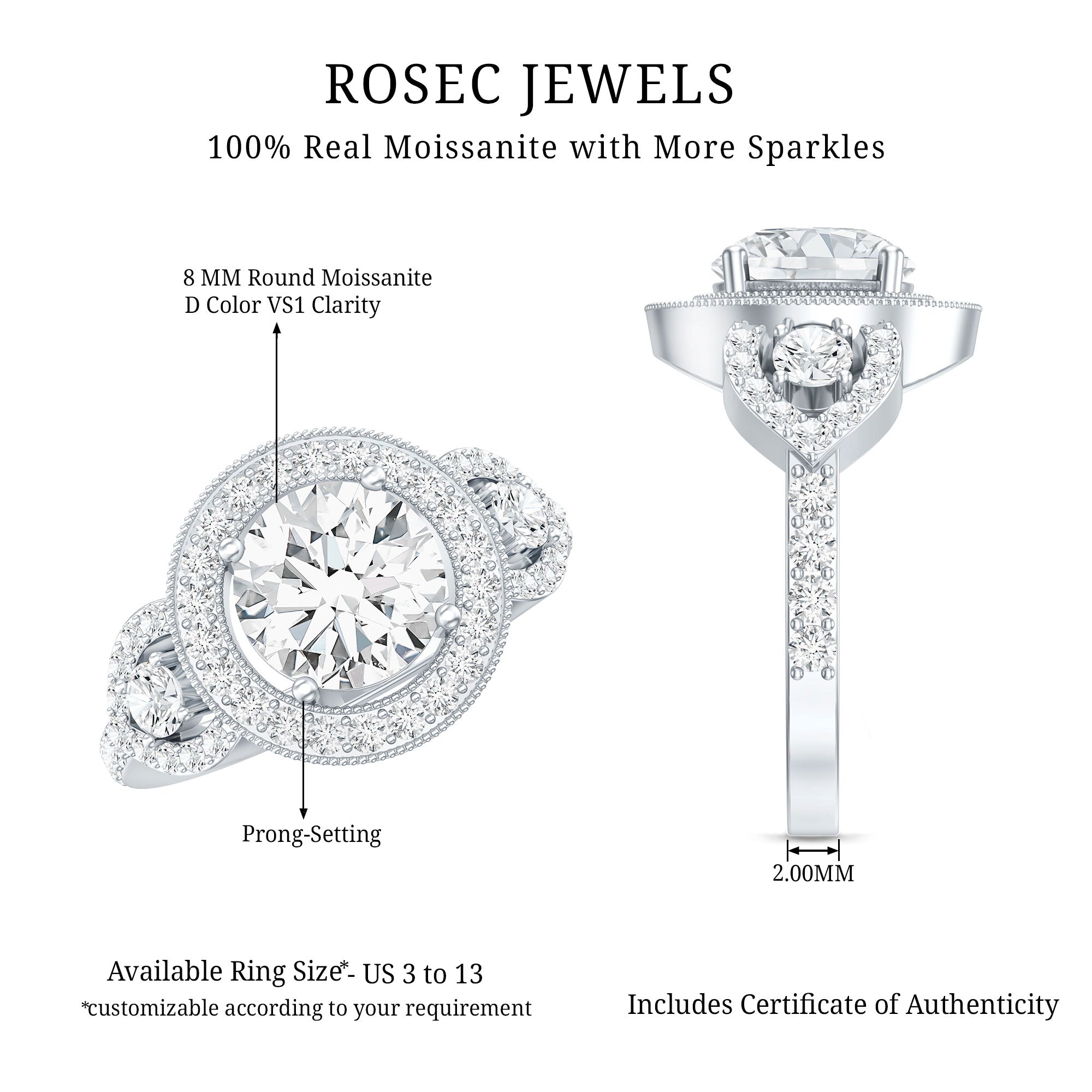 Halo frames that highlight the center stone, often paired with beaded or floral accents for an old-world look.