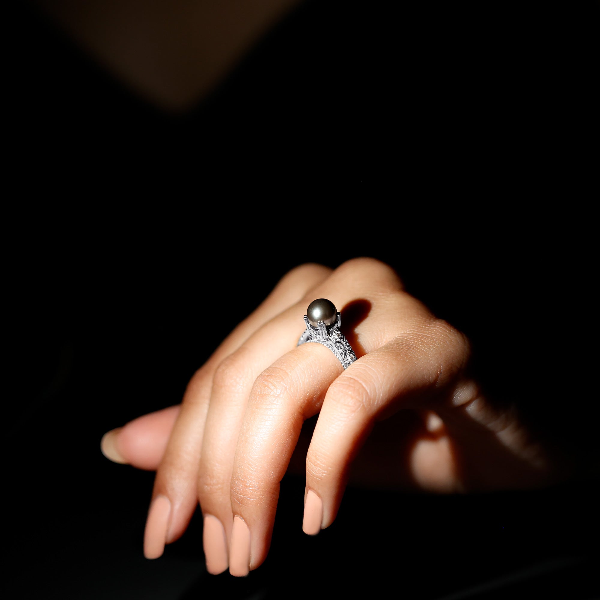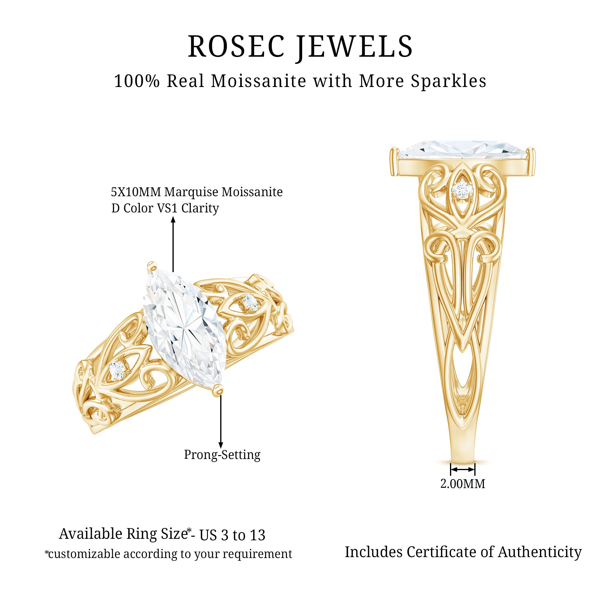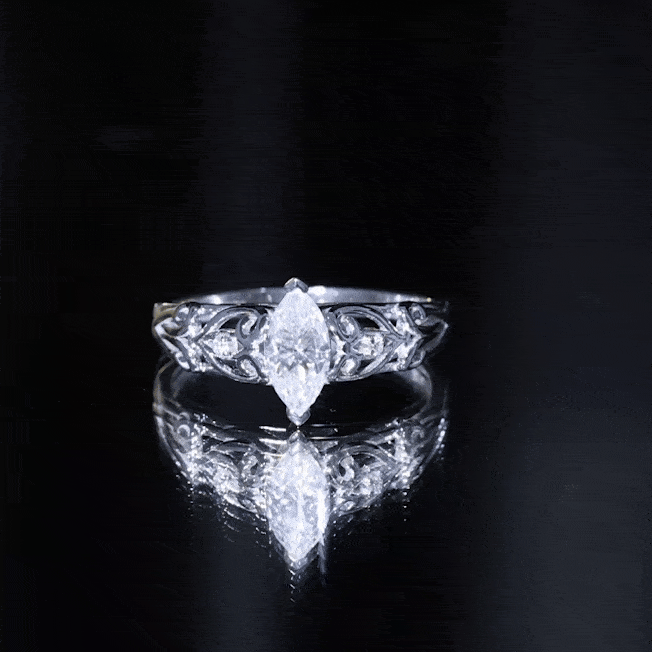 Delicate lace-like metal patterns, often seen under or around the center setting for depth and artistry.