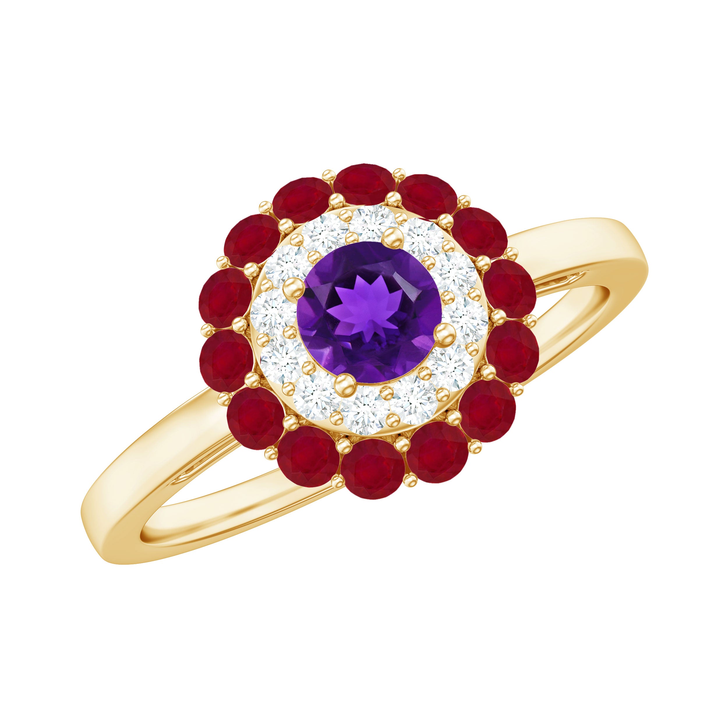 Bold gems like emeralds, rubies, and sapphires are frequently mixed with glittering diamonds in geometric patterns in Art Deco rings. A striking visual effect is produced by using symmetrical patterns and contrasting colors. The elaborate designs of this period also show the influence of Egyptian, Asian, and Native American art, producing engagement rings that are both elegant and distinctive.