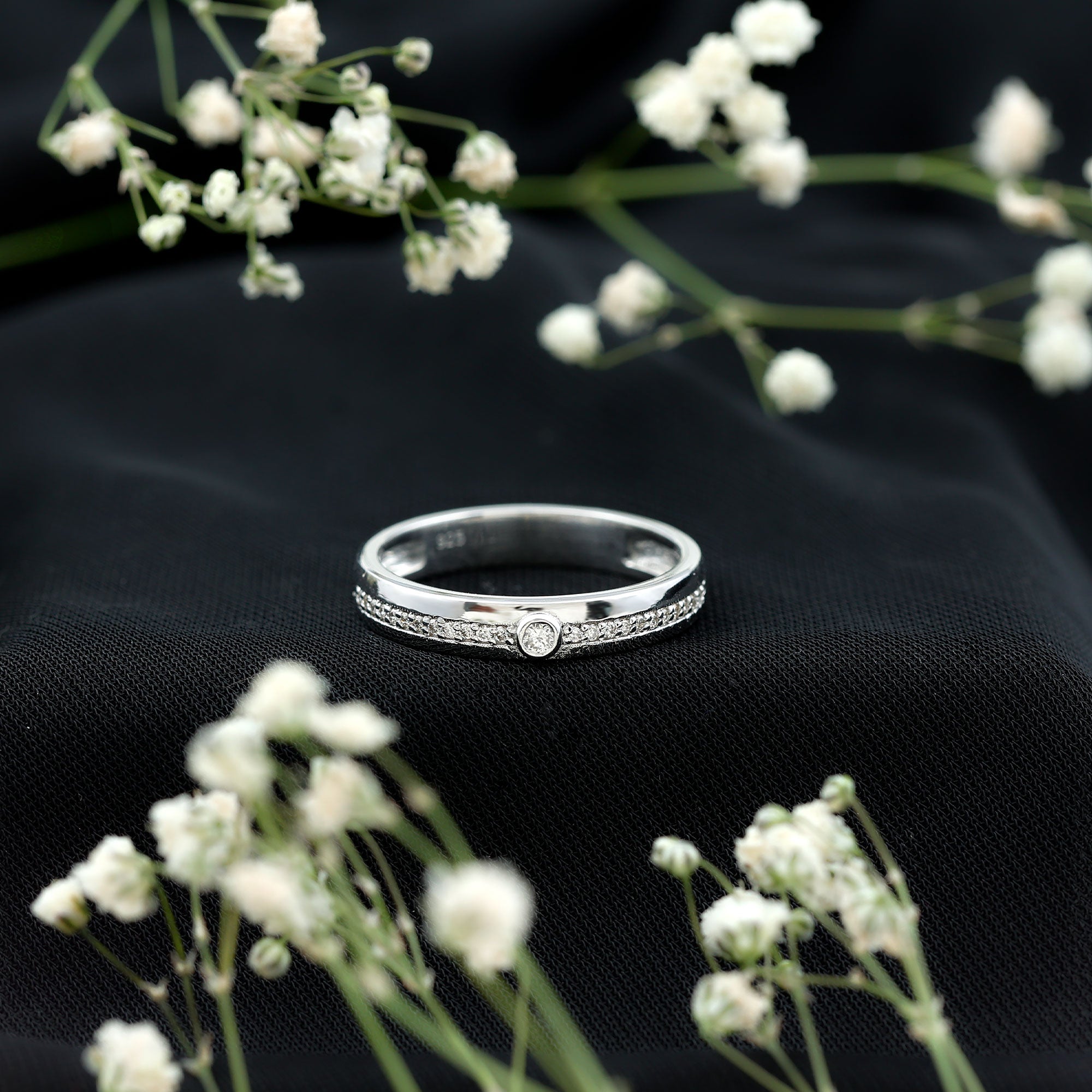 Heart Wedding Bands: Heart shaped moissanite wedding bands are usually the choice of romantic couples, who look for symbolism, besides meaning in their ring. Ruby hearts with alternate diamond hearts or topaz hearts side by side with their clefts facing opposite direction create stunning visual appeal. Explore more such heartfelt symbols in our wedding bands collection.