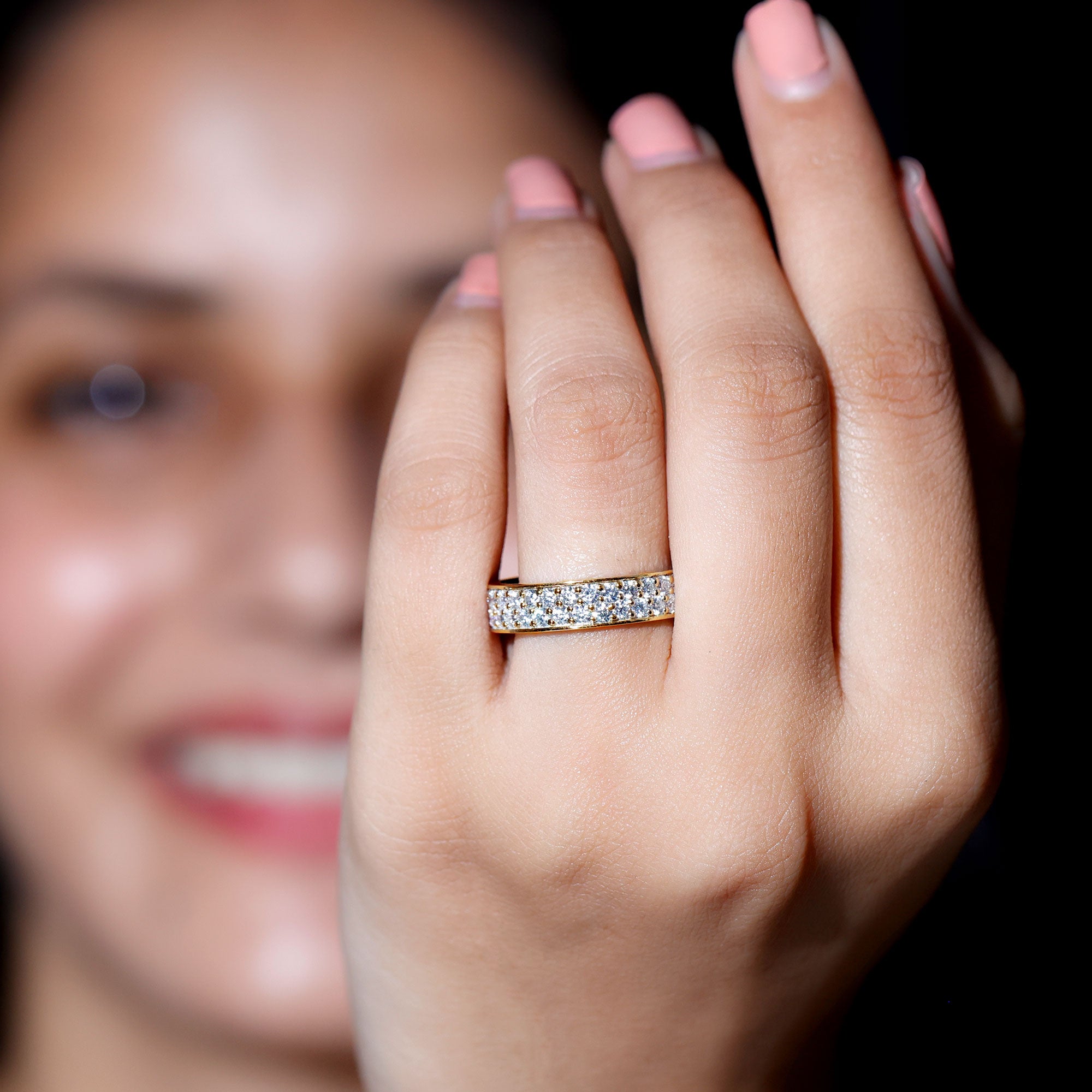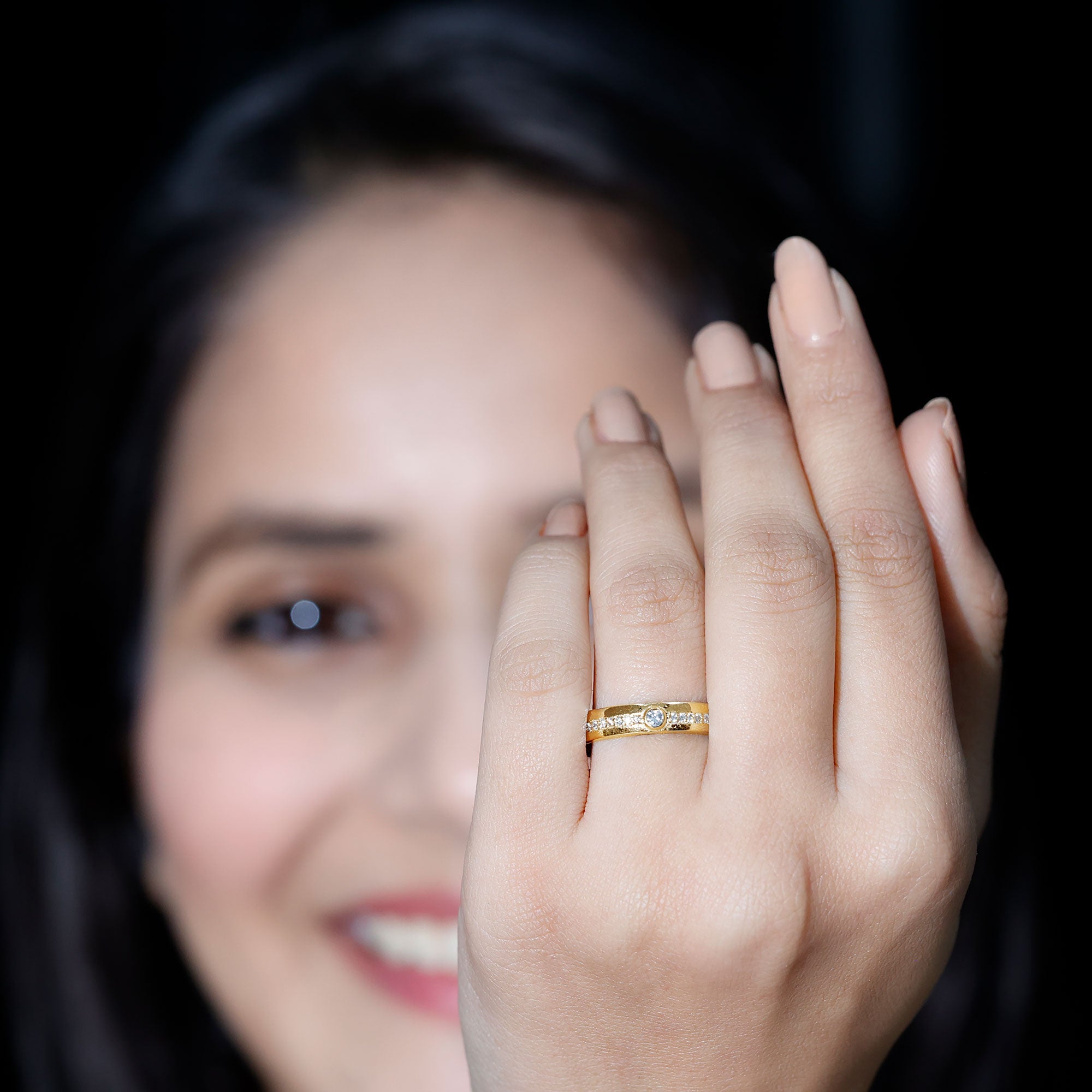 The ideal wedding bands for women can be 2MM to 8 MM in width. 2-3 MM can be a good choice if you are looking for a band for your minimalist ring. 4-5 MM is generally a standard choice for all types of rings. 6-8 MM bandwidth should be your choice if you love bold statement rings.