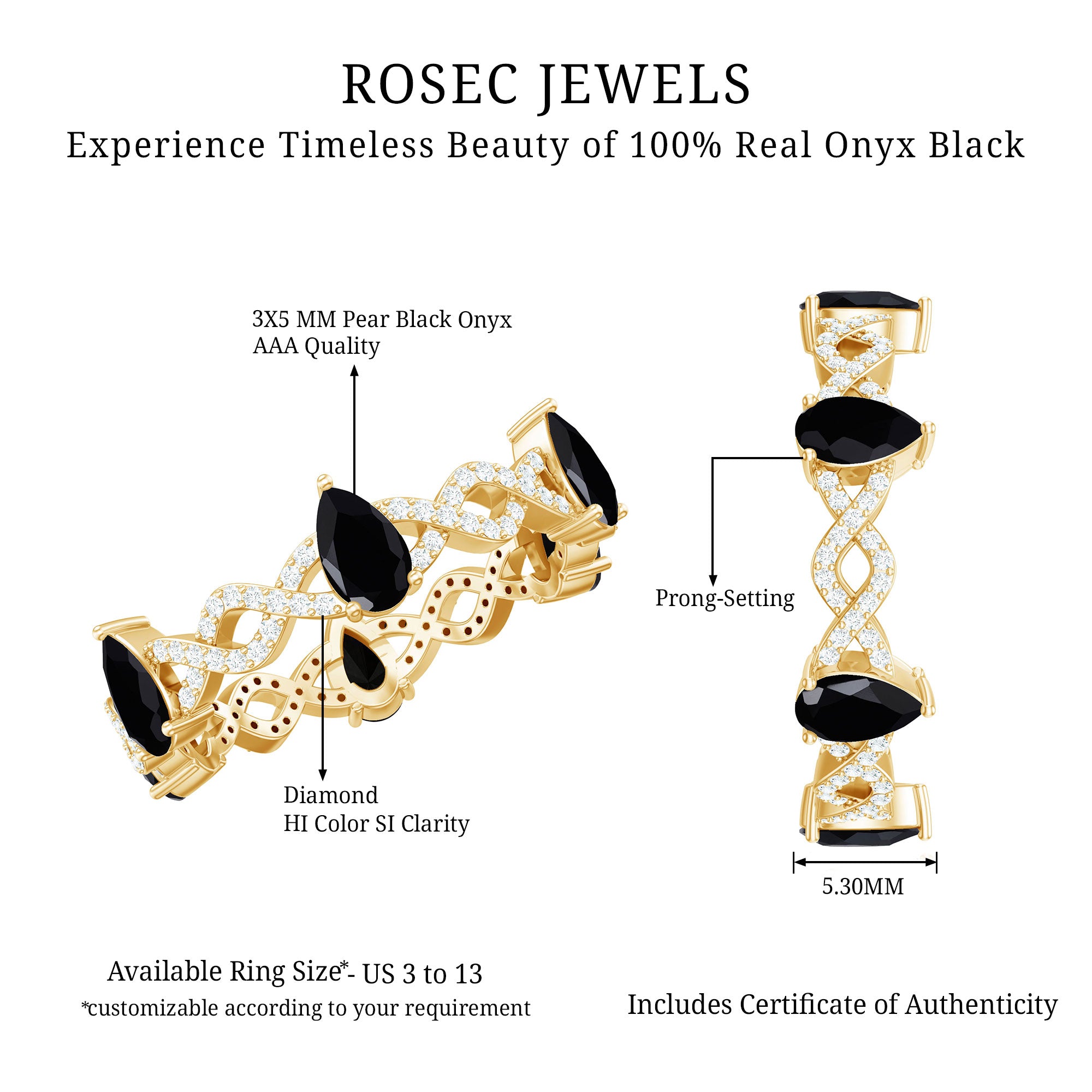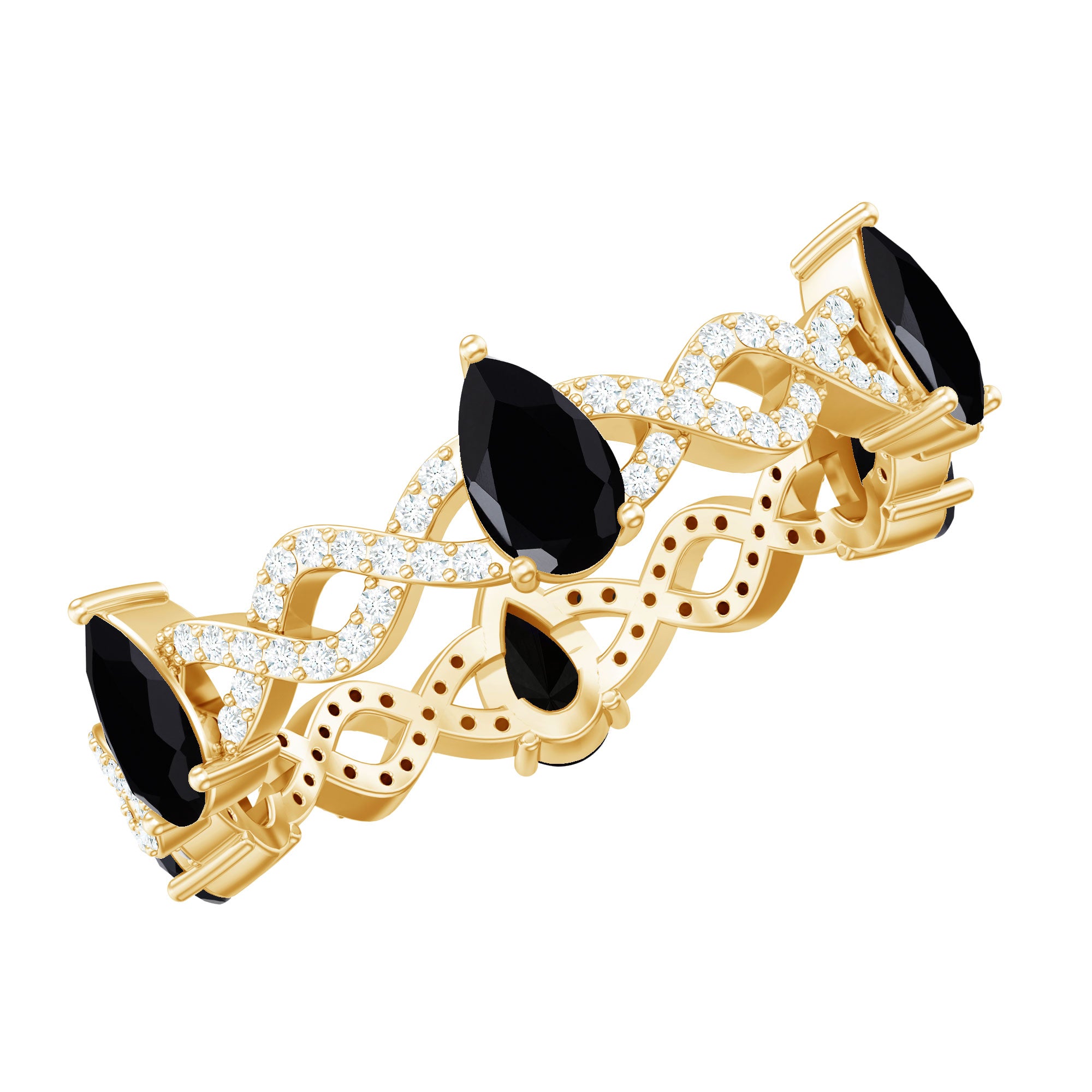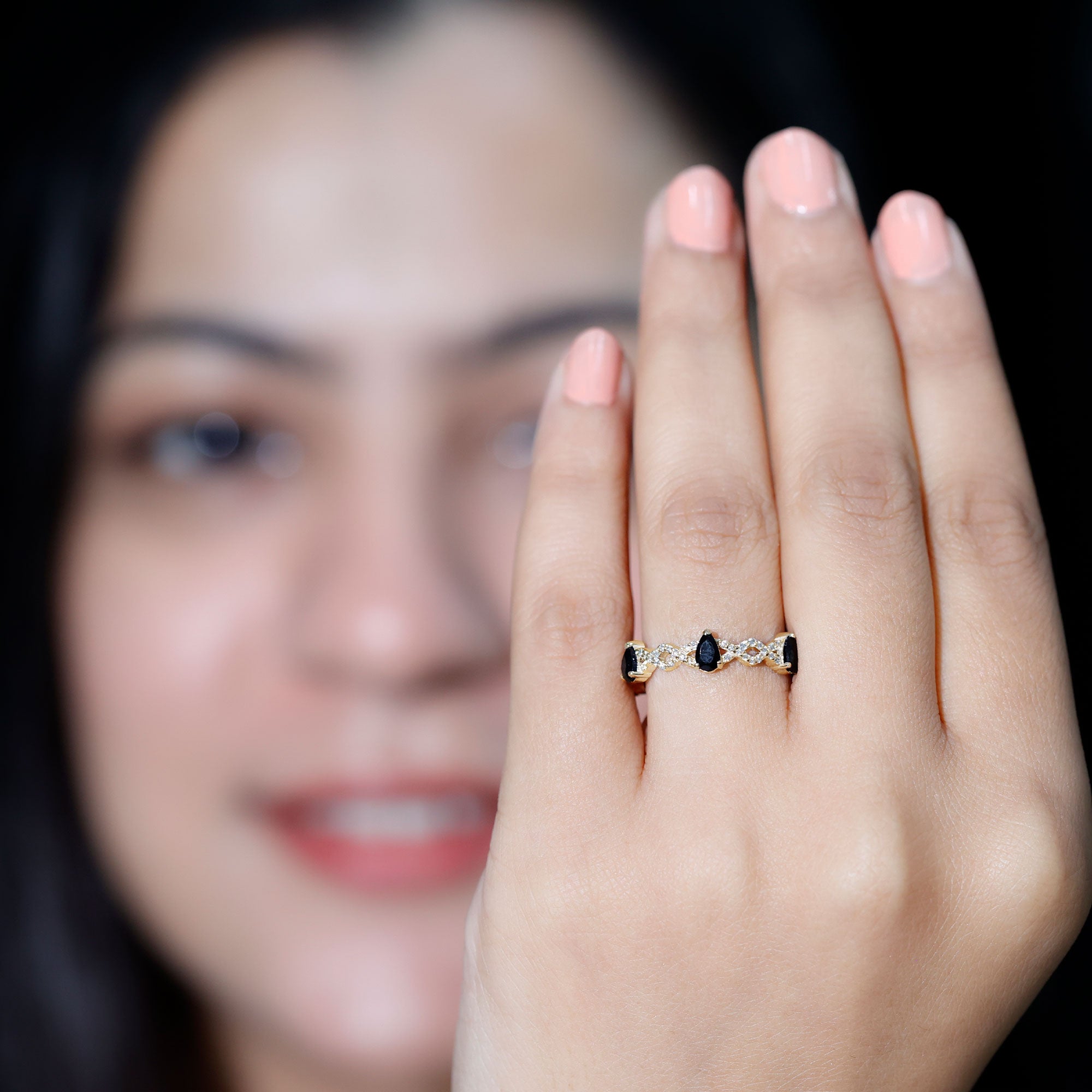 5. Pear Shaped Rings for Wedding Bands: Pear or teardrop wedding rings feature a gemstone with rounded ends and pointed tip. Pear gemstone with a flattering silhouette, elongates the finger, and showcases the gem’s color transitions very well. Crafted side by side or accented with other traditional cuts, pear moissanite wedding rings present classic designs with a stylish touch.