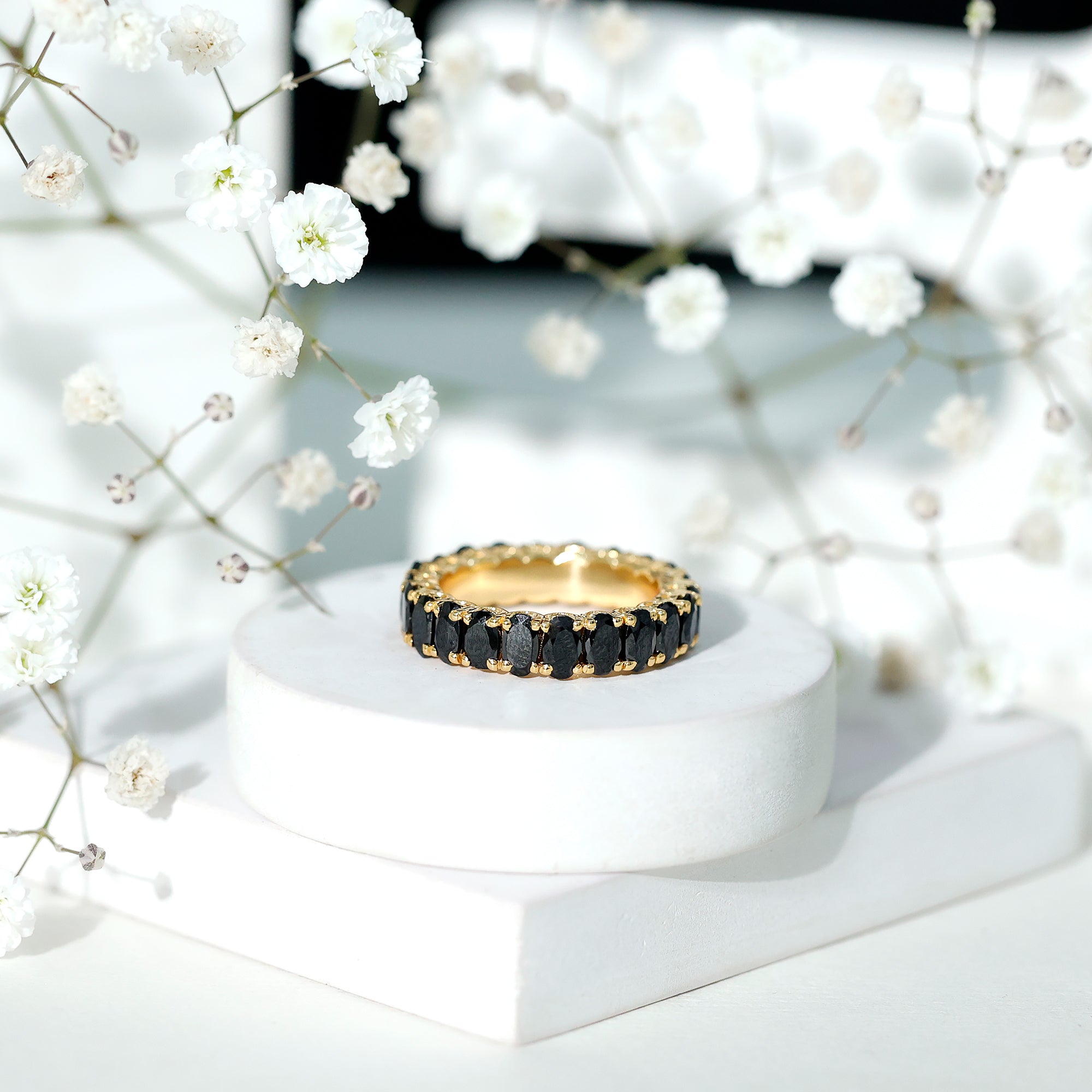 3. Marquise Wedding Bands: Marquise wedding bands would fascinate you with their timeless charm. Elongated gemstone with pointed tips in the ring stands out as a stylish piece with vintage glam. Scattered marquise as cluster rings or east-west set marquise diamond eternity bands are some of the elegant designs that add a whimsical touch.