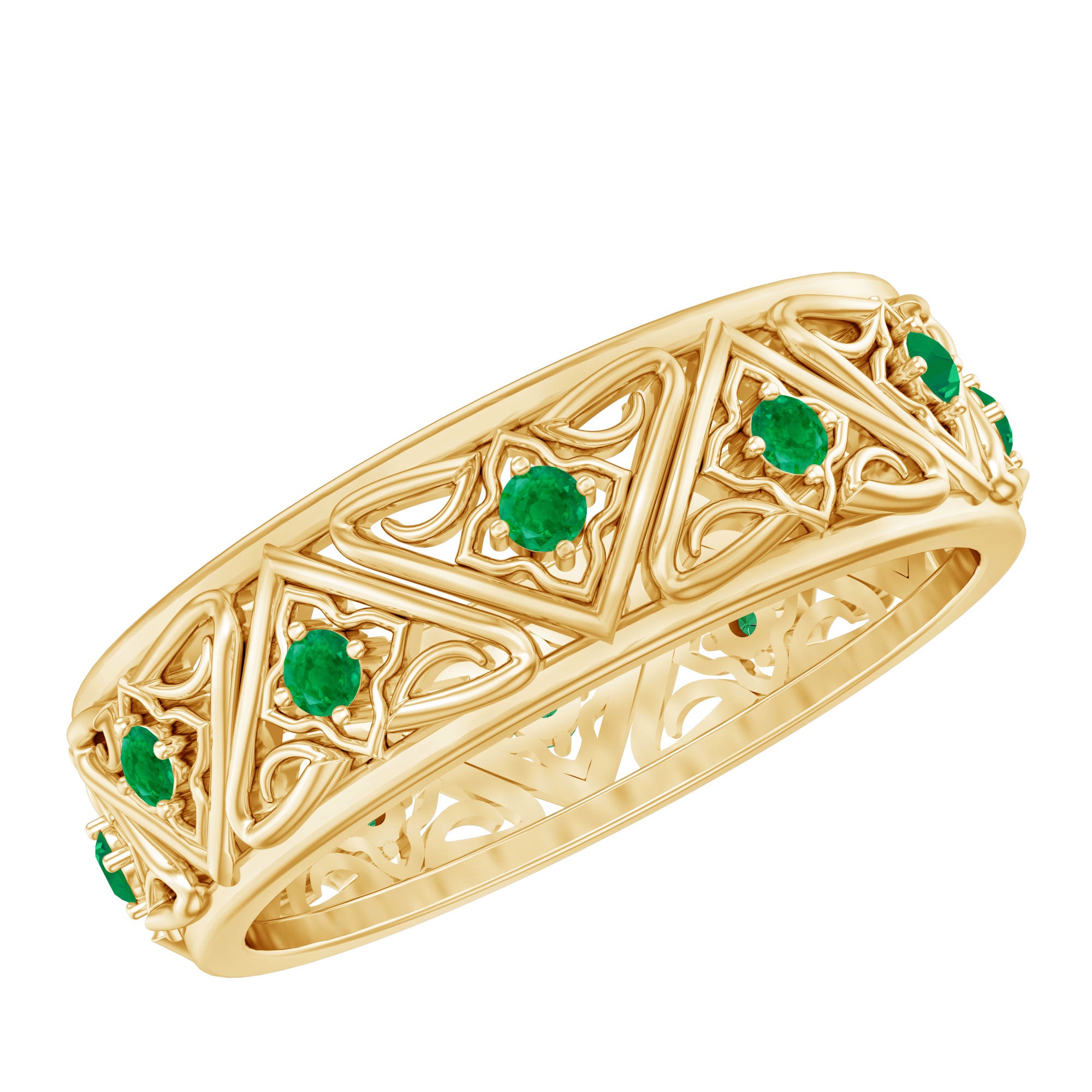Round Gemstone Wedding Rings: Round wedding bands are traditional choices that symbolize eternity and unity. Featuring dainty or bold round gemstones these rings are for their exceptional sparkle.