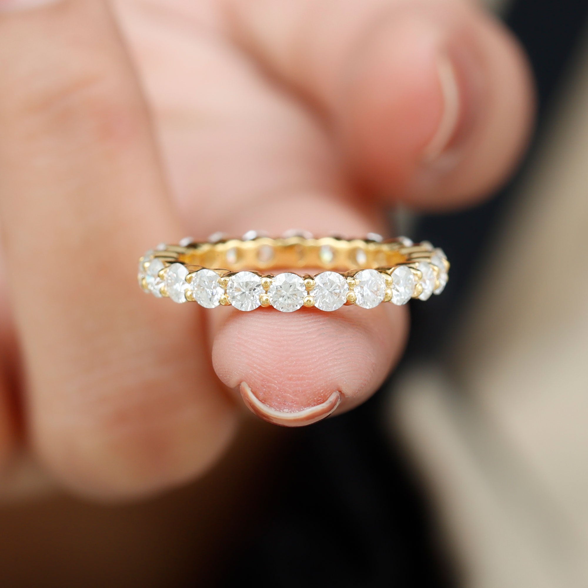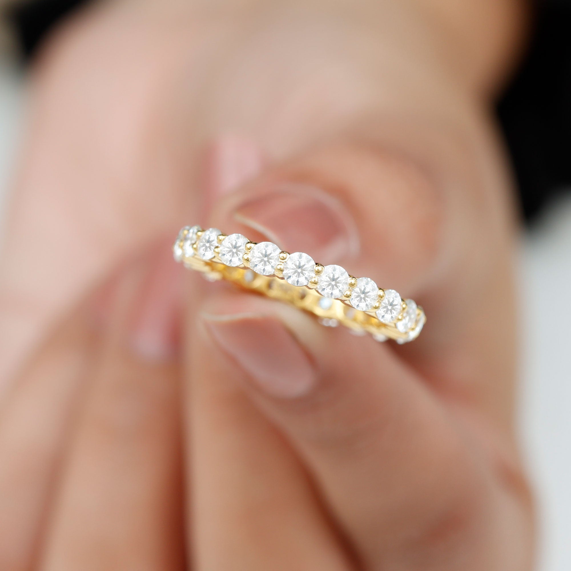 6. Round Gemstone Wedding Rings: Round wedding bands are traditional choices that symbolize eternity and unity. Featuring dainty or bold round gemstones these rings are for their exceptional sparkle.