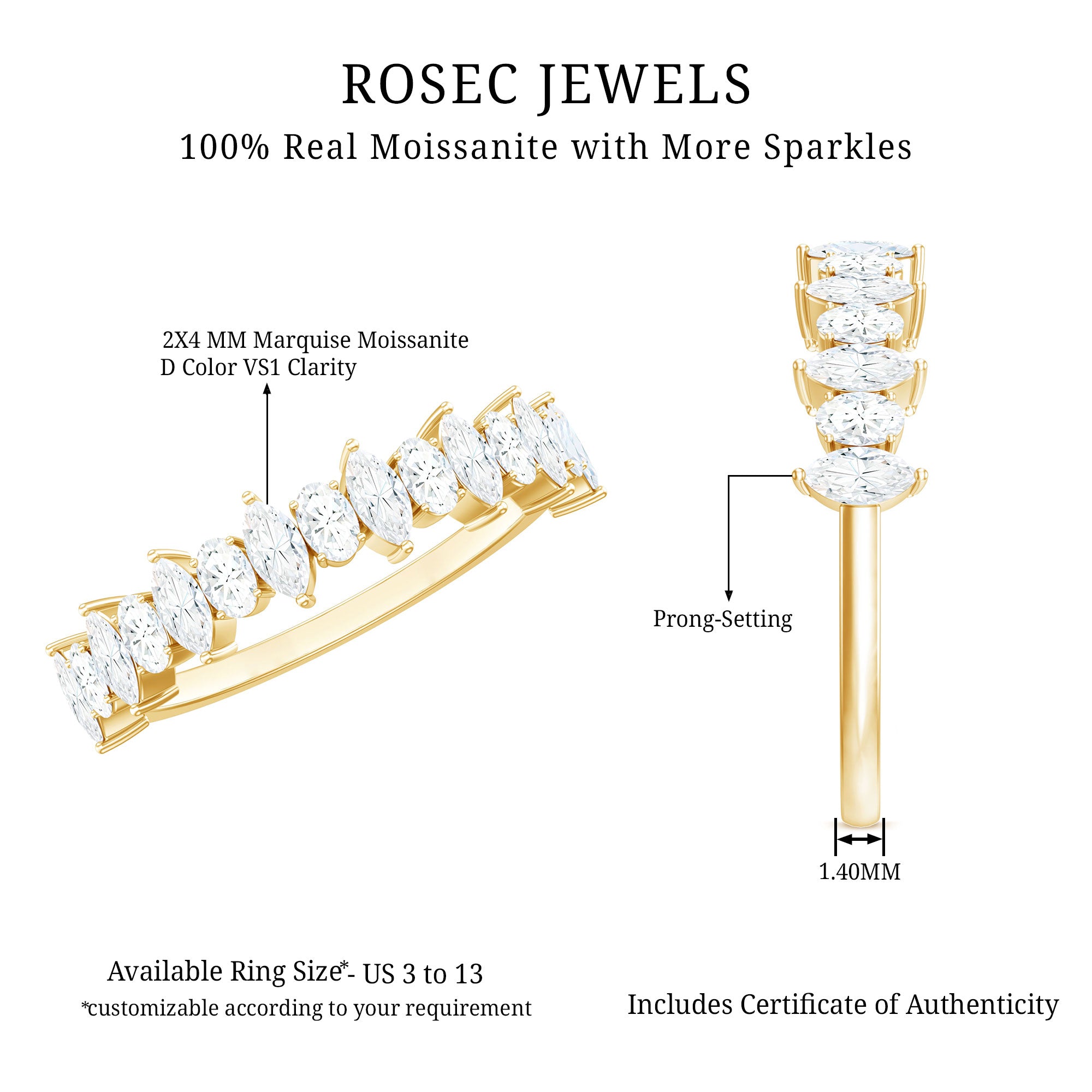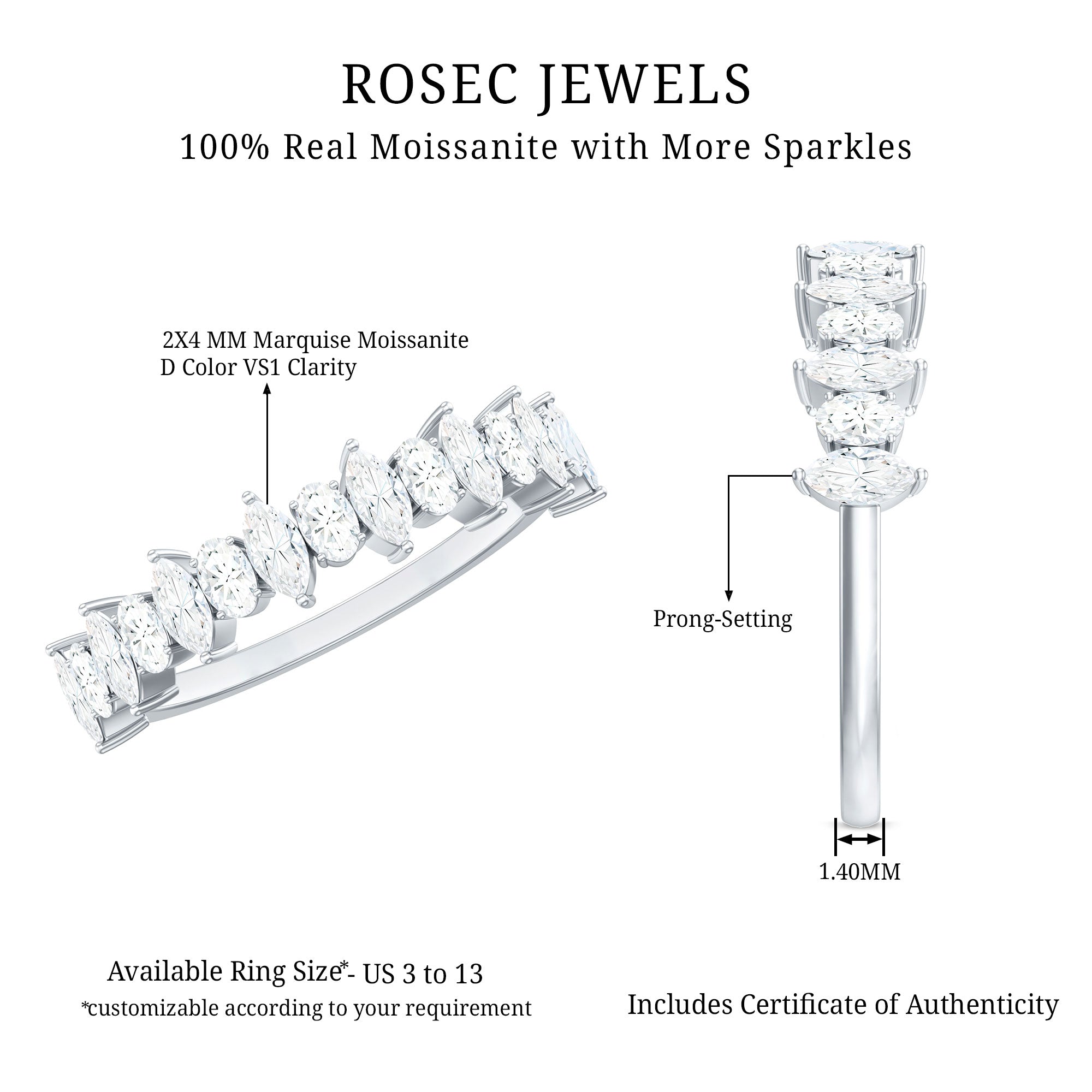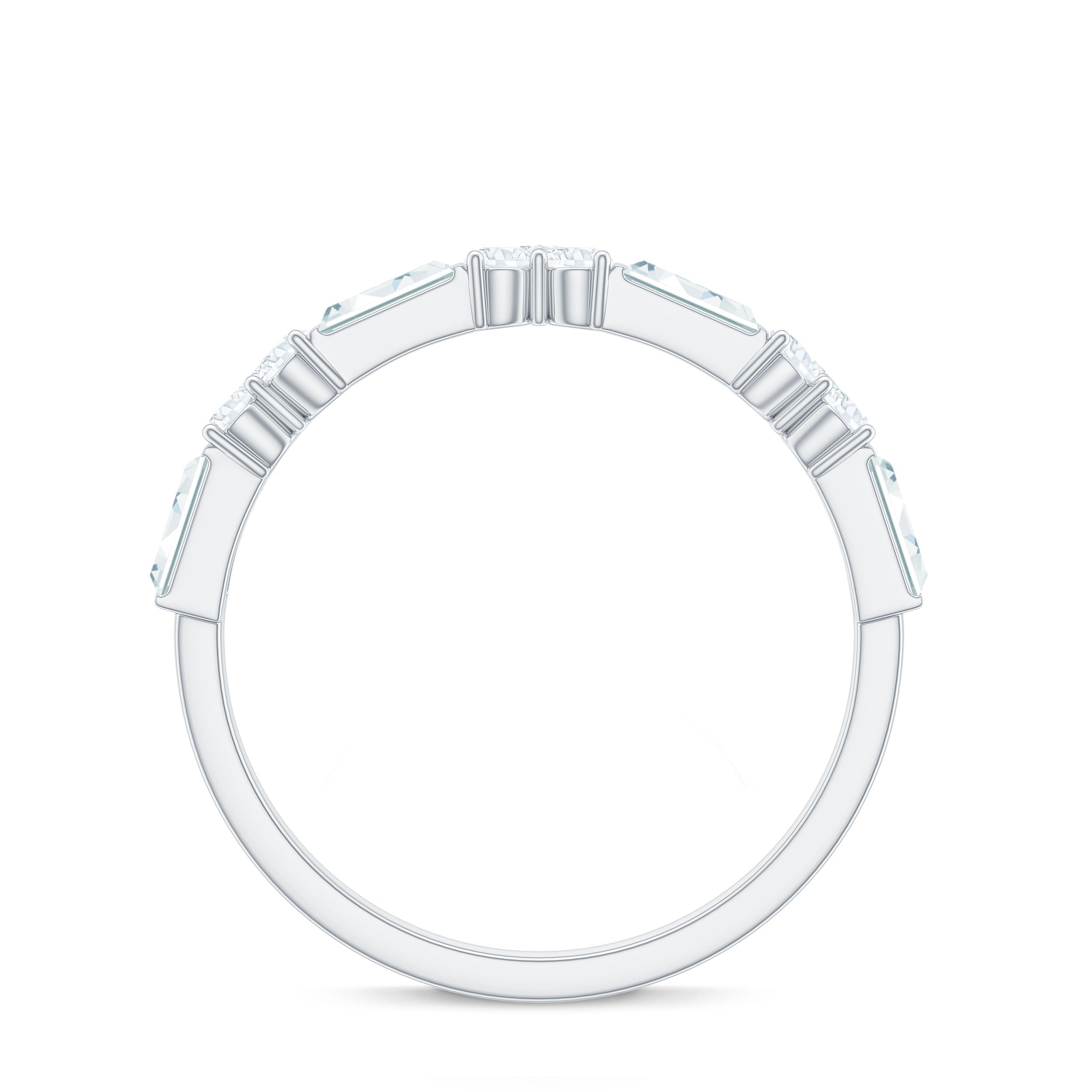 3. Marquise Wedding Bands: Marquise wedding bands would fascinate you with their timeless charm. Elongated gemstone with pointed tips in the ring stands out as a stylish piece with vintage glam. Scattered marquise as cluster rings or east-west set marquise diamond eternity bands are some of the elegant designs that add a whimsical touch.