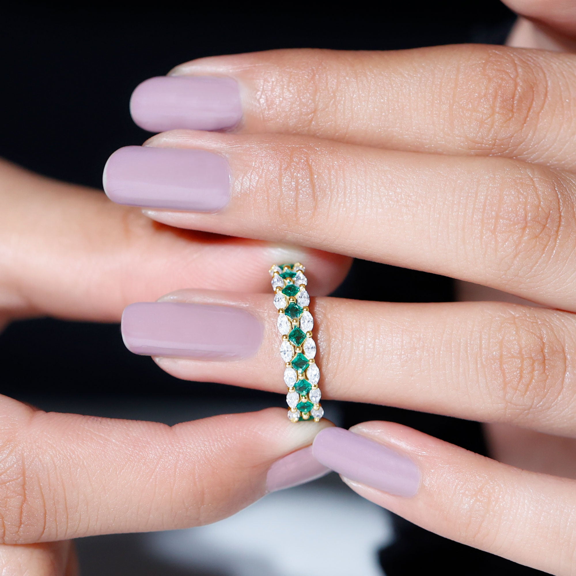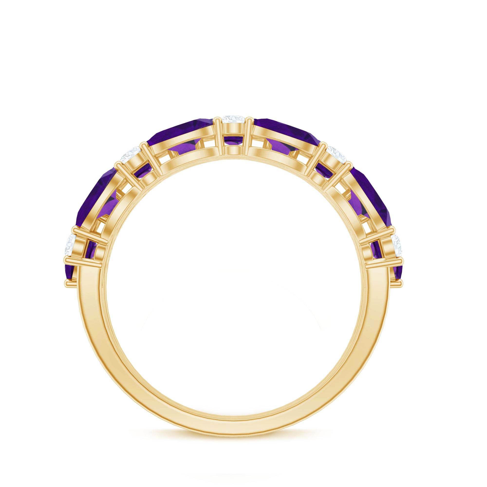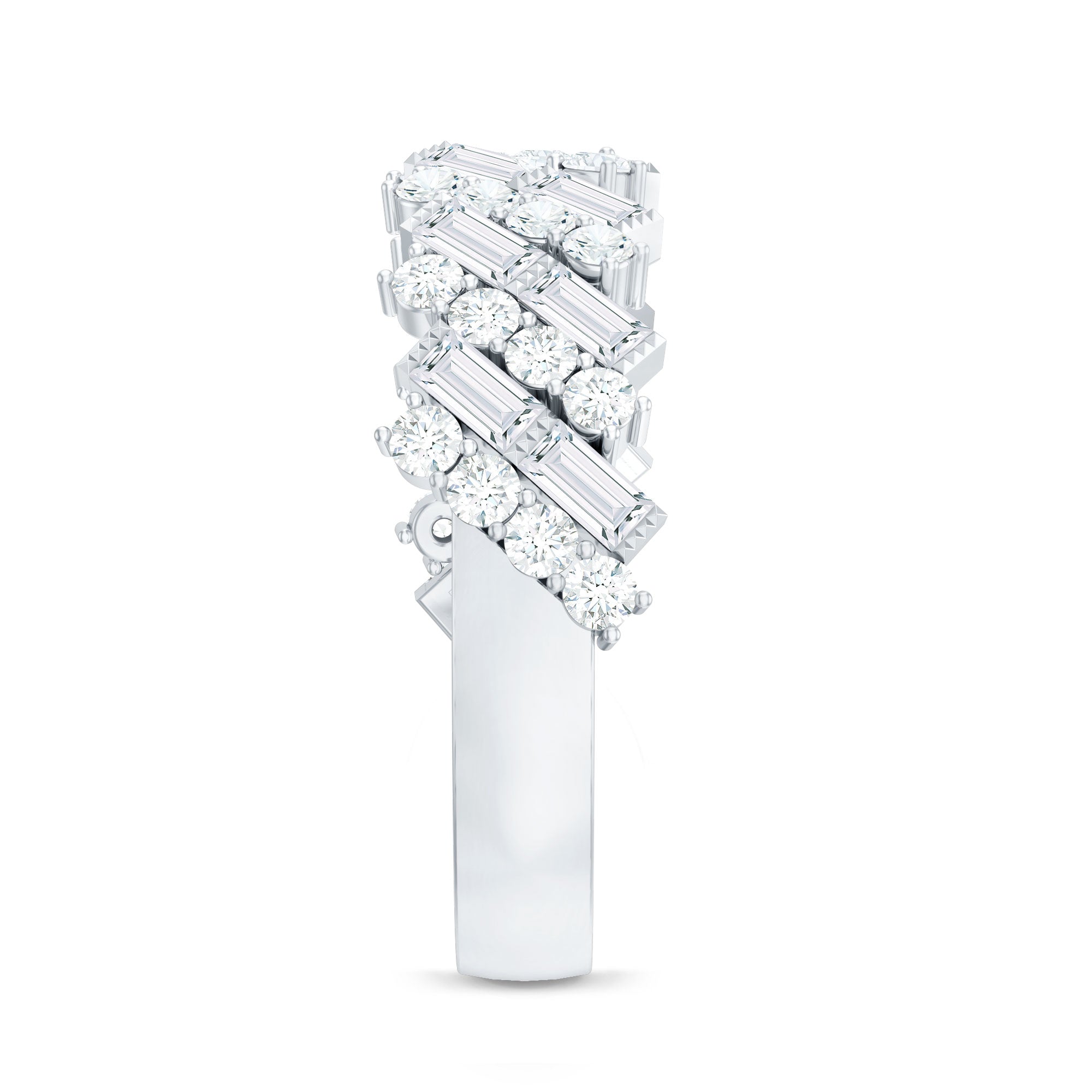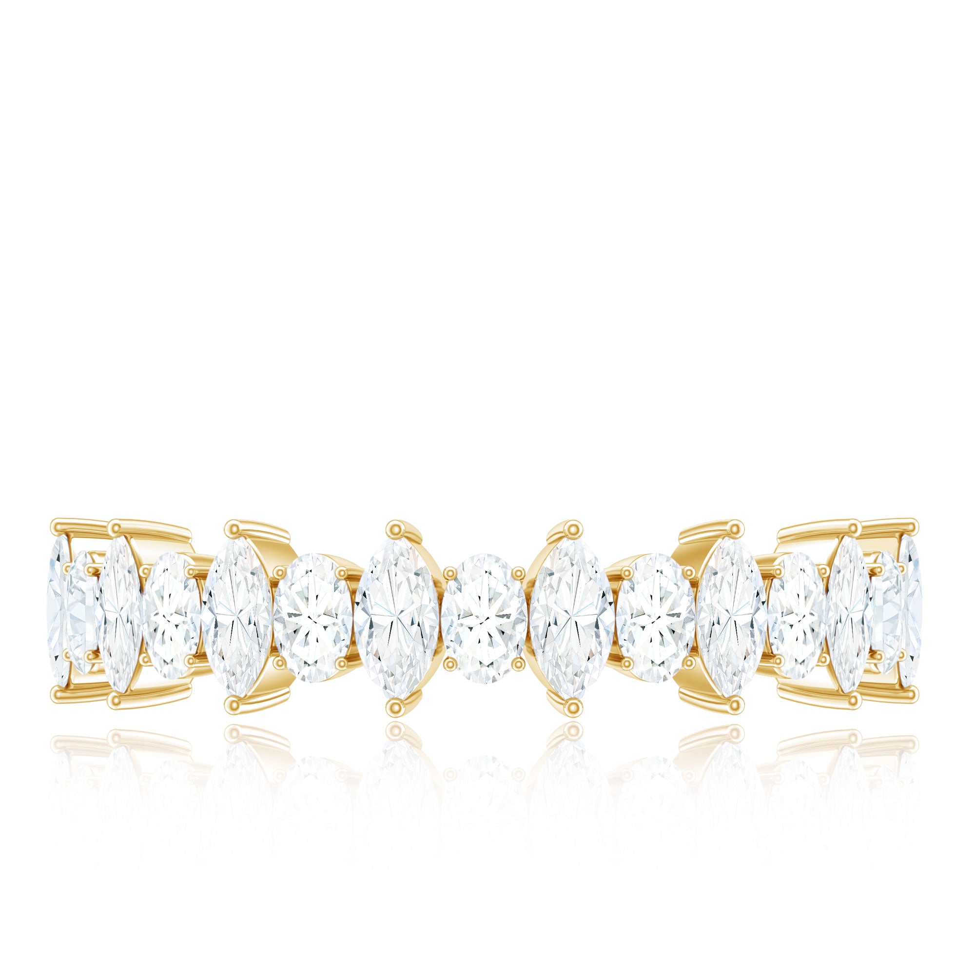 3. Marquise Wedding Bands: Marquise wedding bands would fascinate you with their timeless charm. Elongated gemstone with pointed tips in the ring stands out as a stylish piece with vintage glam. Scattered marquise as cluster rings or east-west set marquise diamond eternity bands are some of the elegant designs that add a whimsical touch.