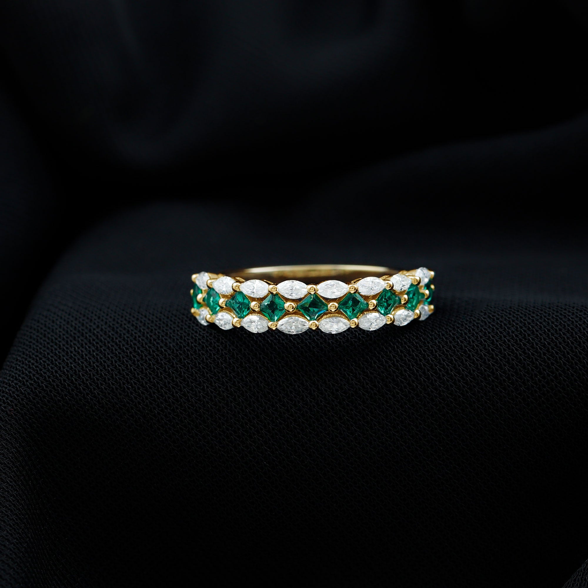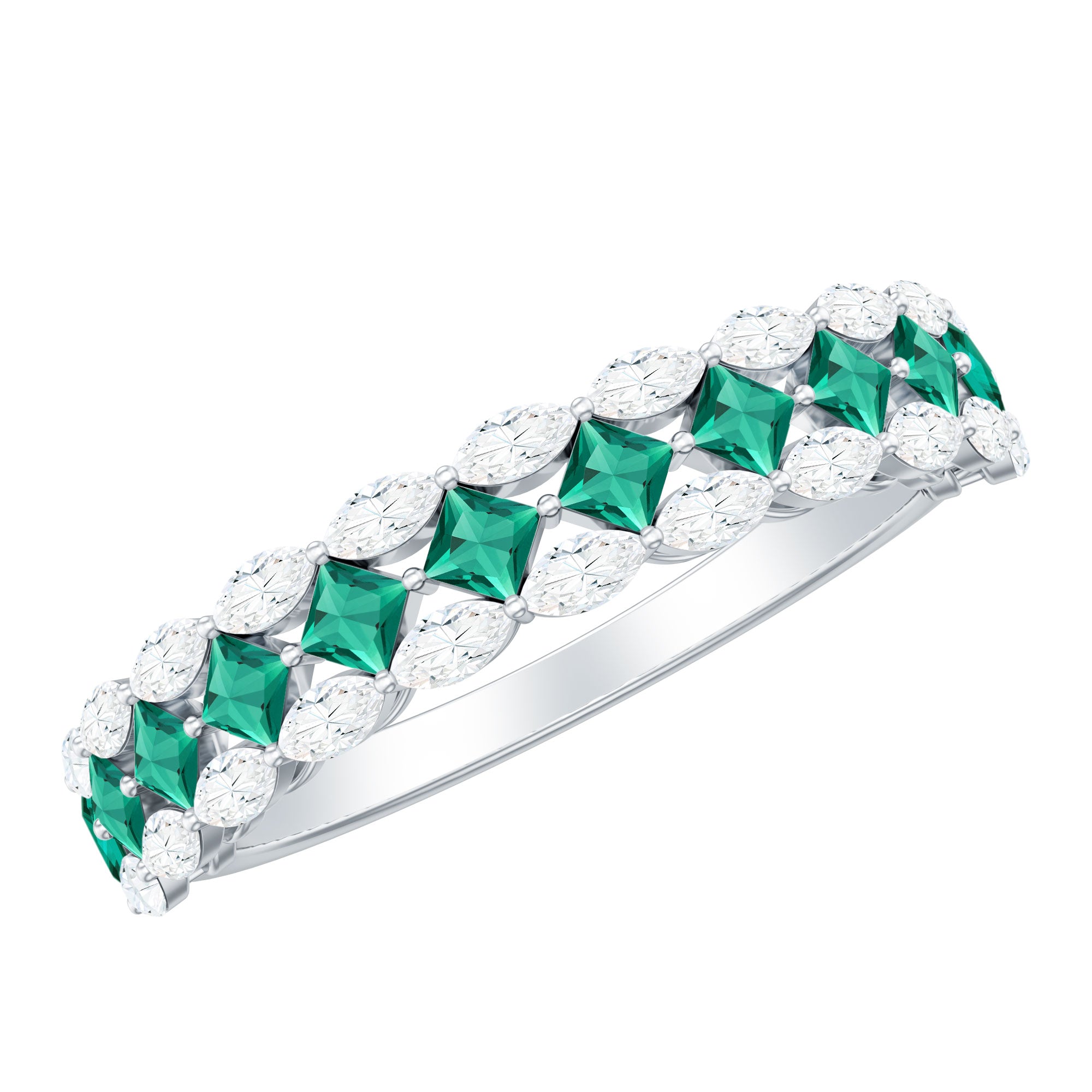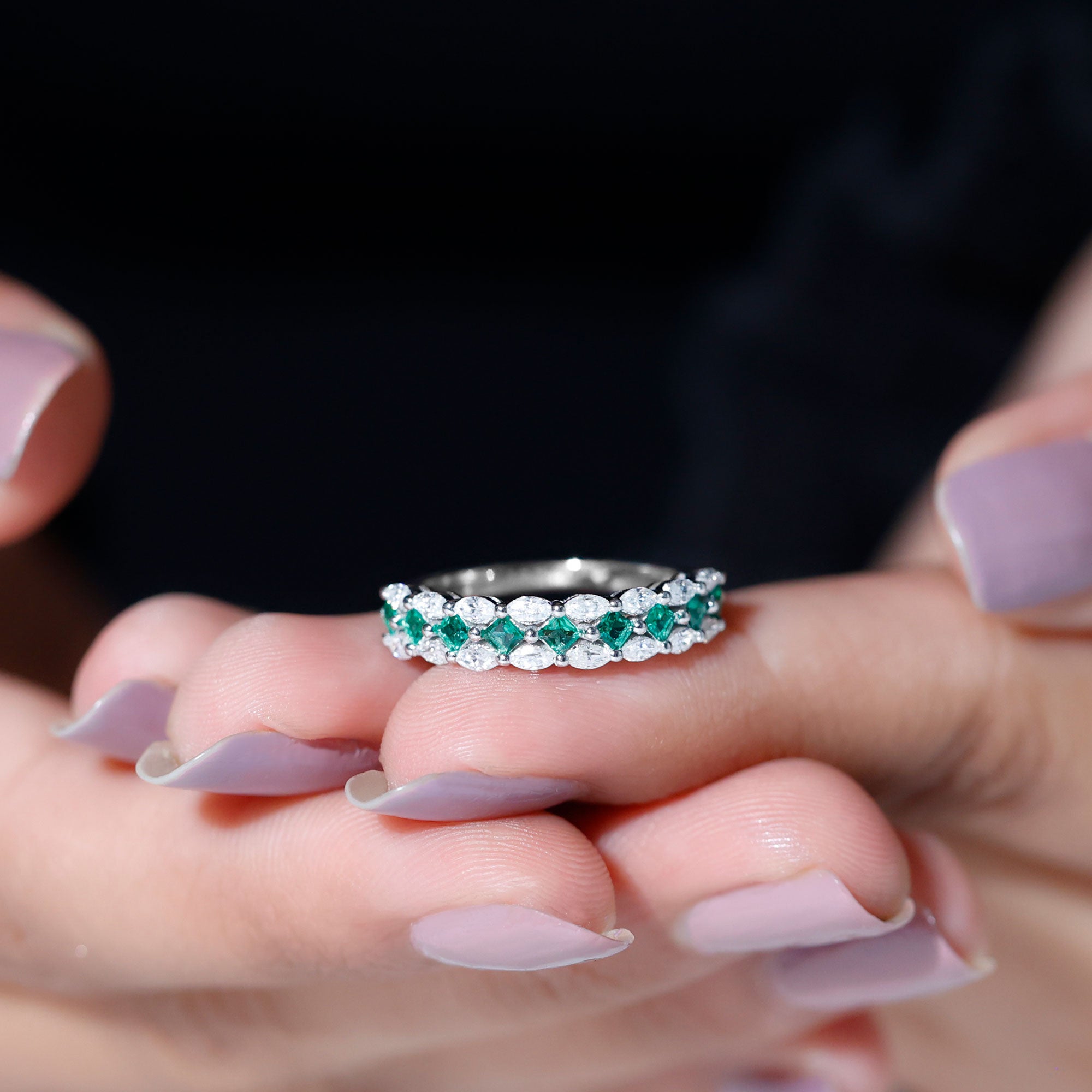 7. Emerald cut Wedding Rings: Emerald cut wedding rings appear larger than other rings of the same carat weight, but different shapes. These rectangular gemstone rings featuring long, parallel facets and large flat table offer a slenderizing effect to the fingers.