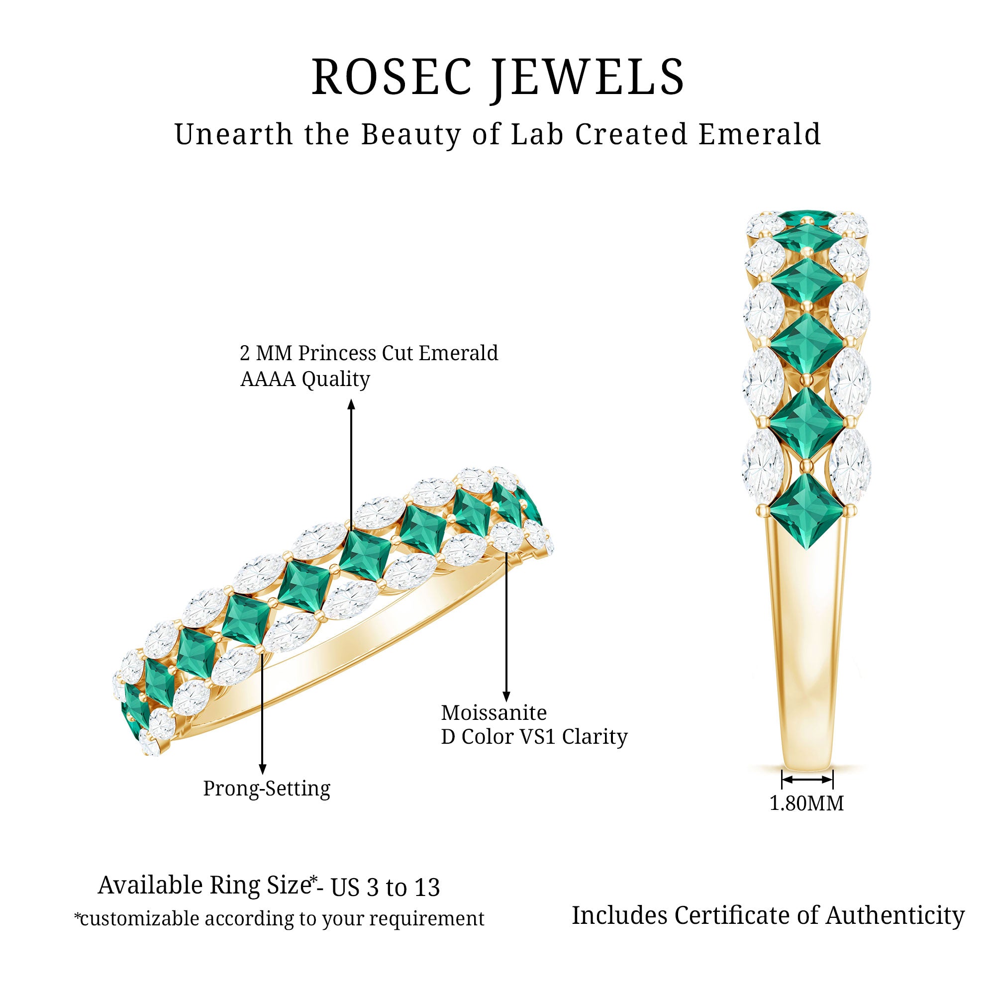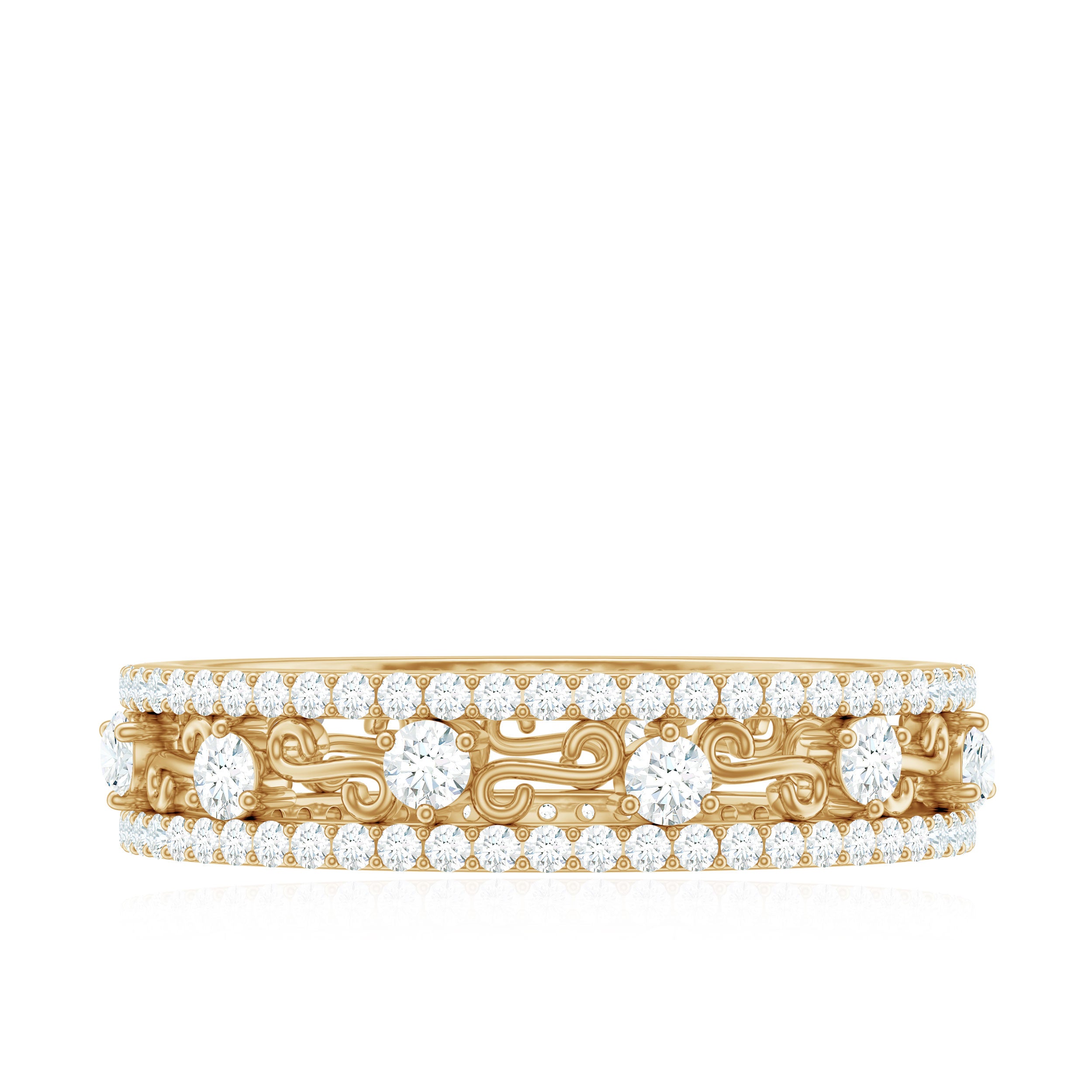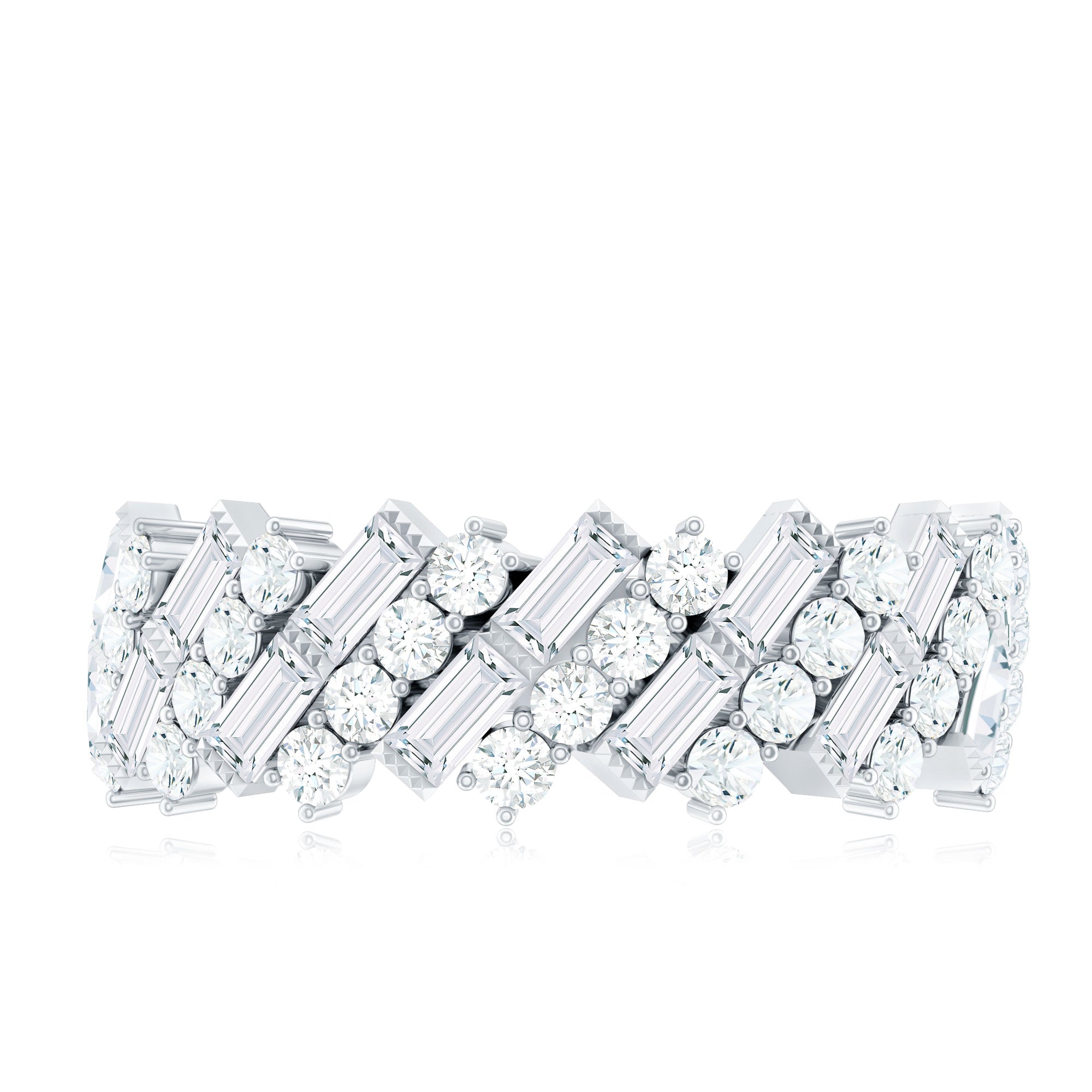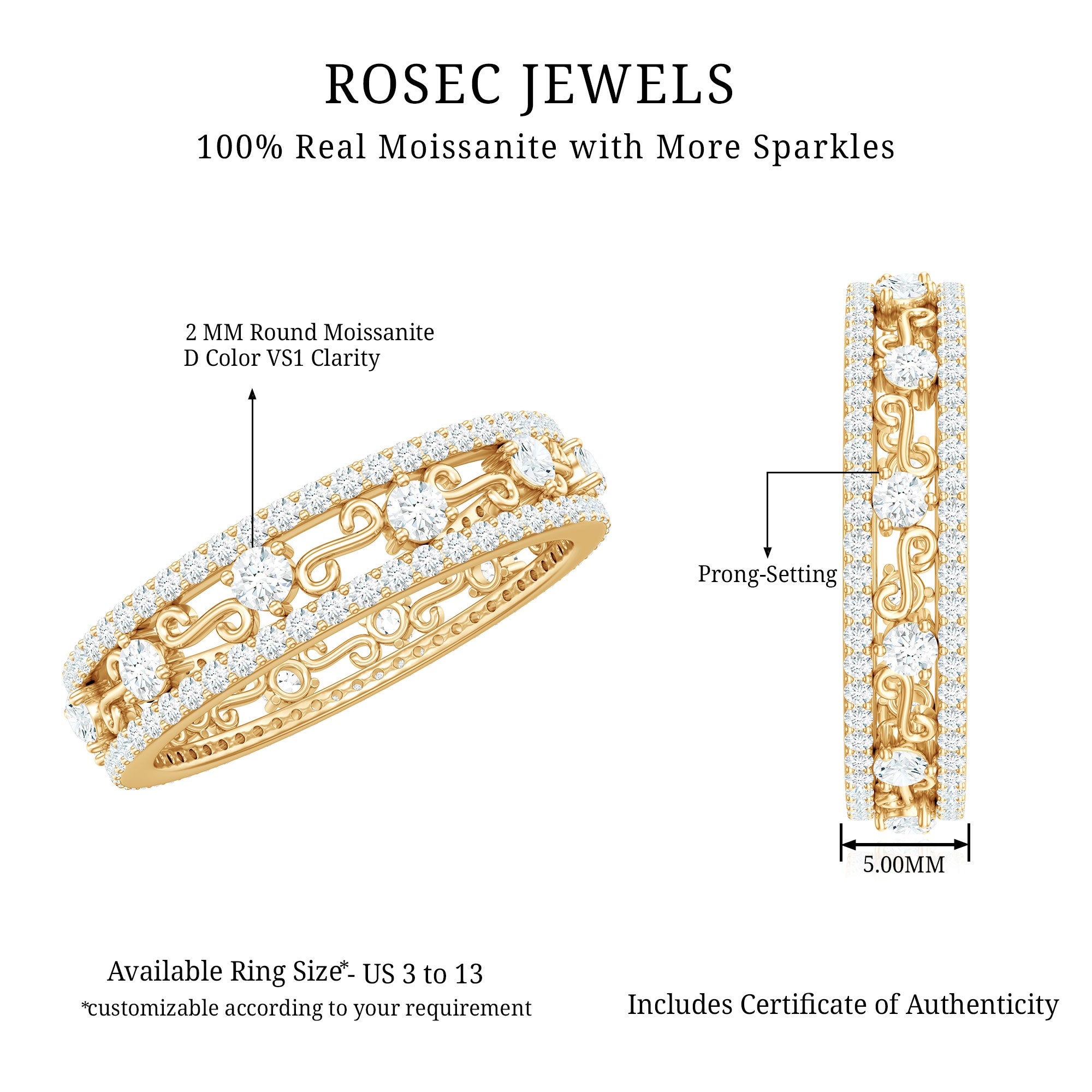 2. Heart Wedding Bands: Heart shaped moissanite wedding bands are usually the choice of romantic couples, who look for symbolism, besides meaning in their ring. Ruby hearts with alternate diamond hearts or topaz hearts side by side with their clefts facing opposite direction create stunning visual appeal. Explore more such heartfelt symbols in our wedding bands collection.