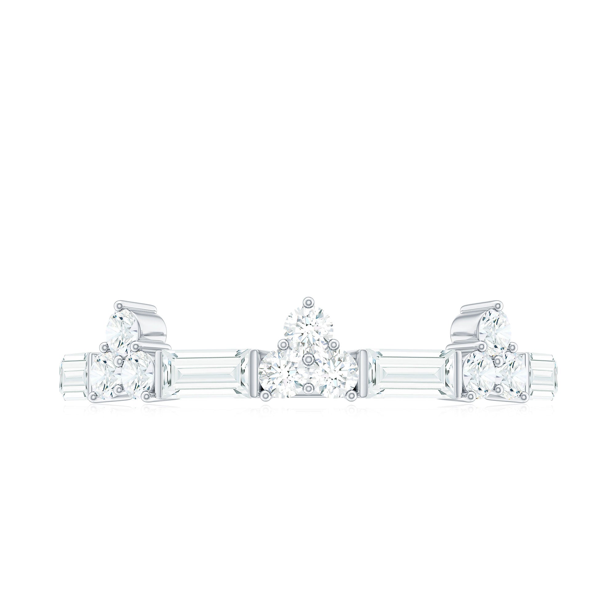 5. Pear Shaped Rings for Wedding Bands: Pear or teardrop wedding rings feature a gemstone with rounded ends and pointed tip. Pear gemstone with a flattering silhouette, elongates the finger, and showcases the gem’s color transitions very well. Crafted side by side or accented with other traditional cuts, pear moissanite wedding rings present classic designs with a stylish touch.
