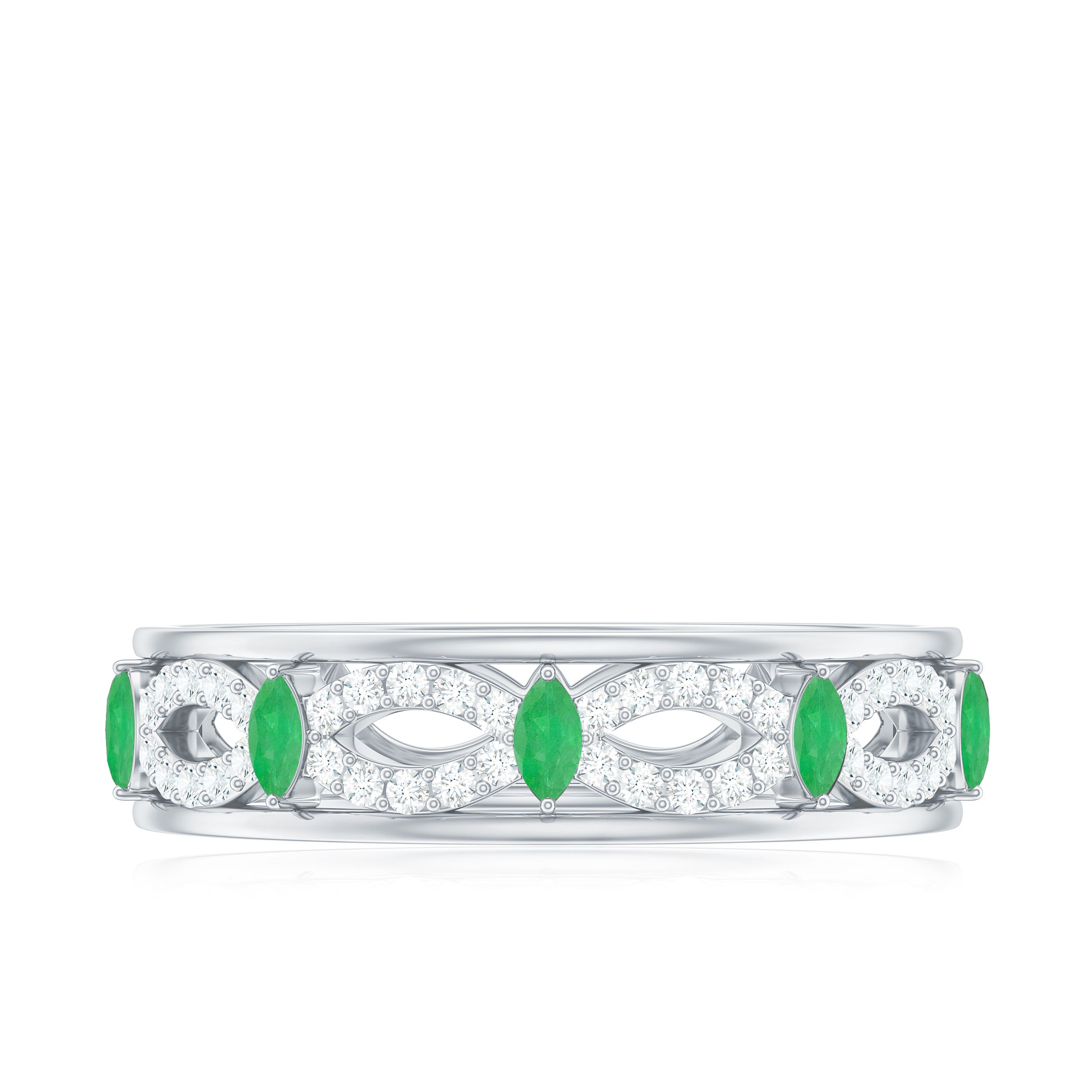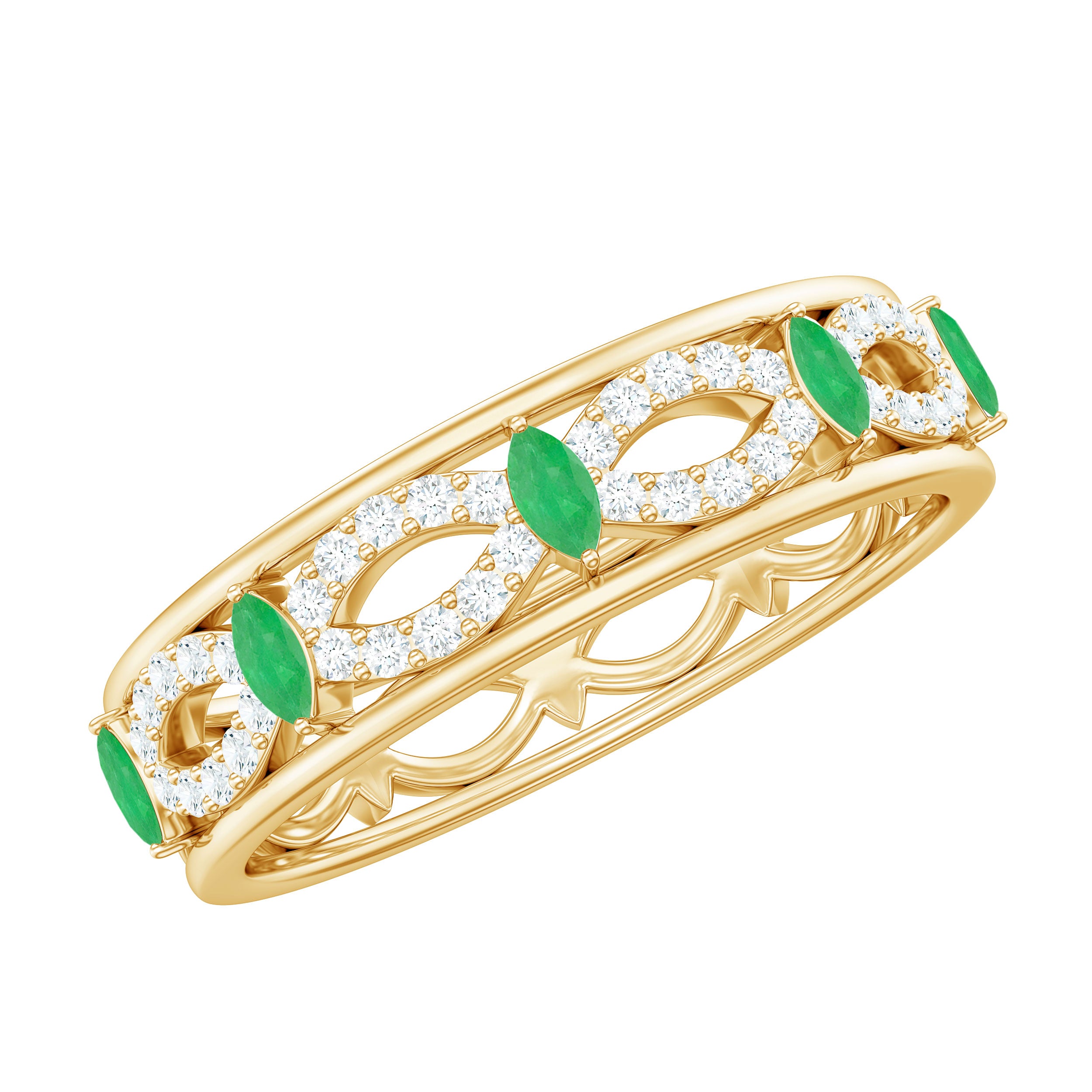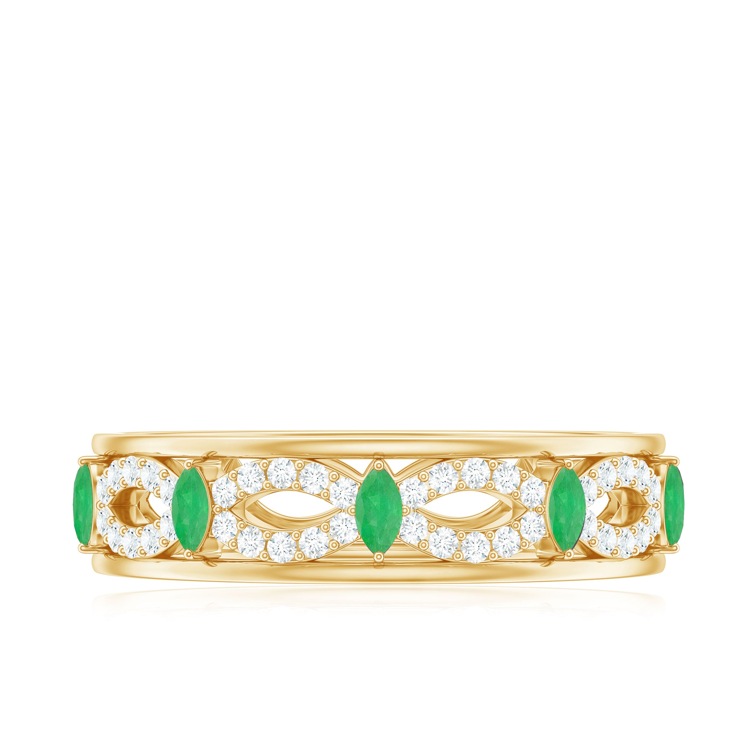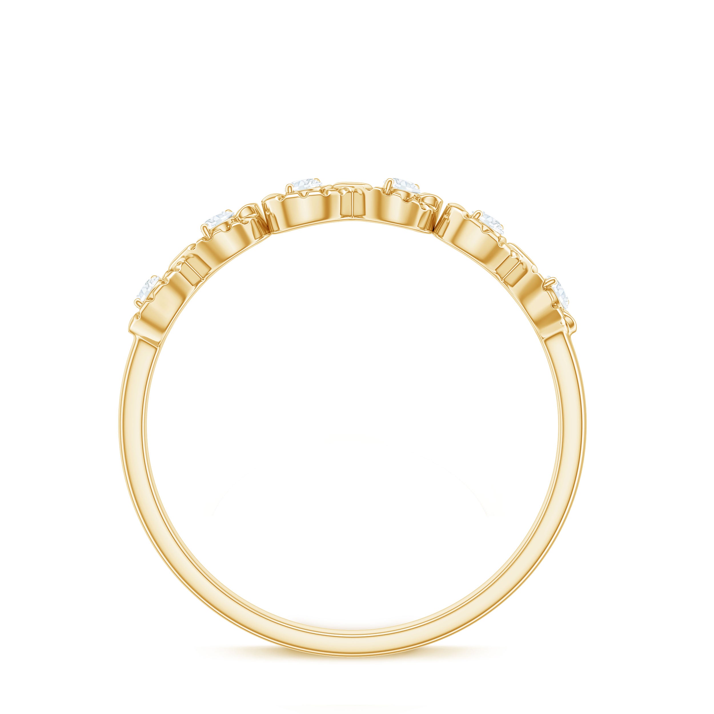 Marquise Wedding Bands: Marquise wedding bands would fascinate you with their timeless charm. Elongated gemstone with pointed tips in the ring stands out as a stylish piece with vintage glam. Scattered marquise as cluster rings or east-west set marquise diamond eternity bands are some of the elegant designs that add a whimsical touch.