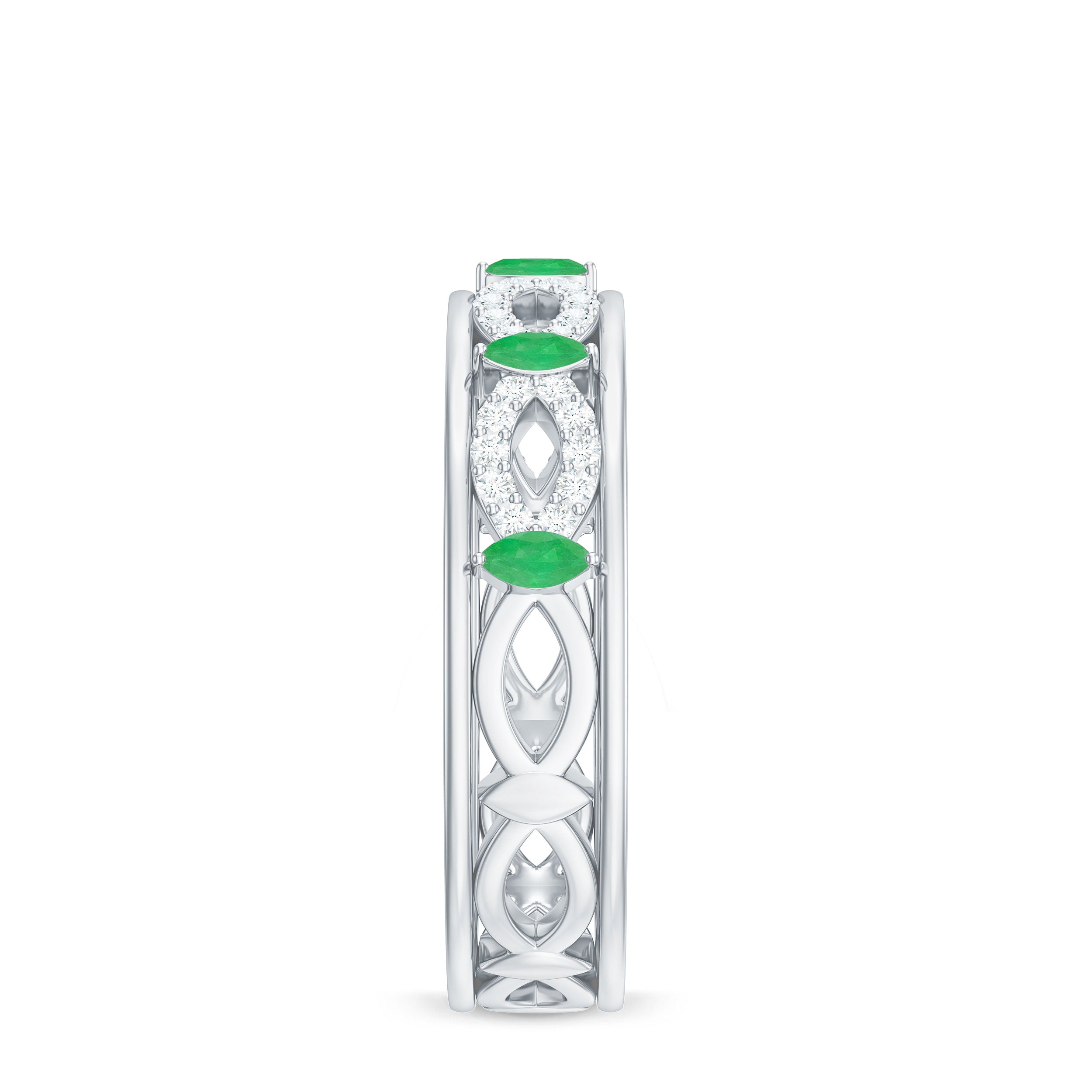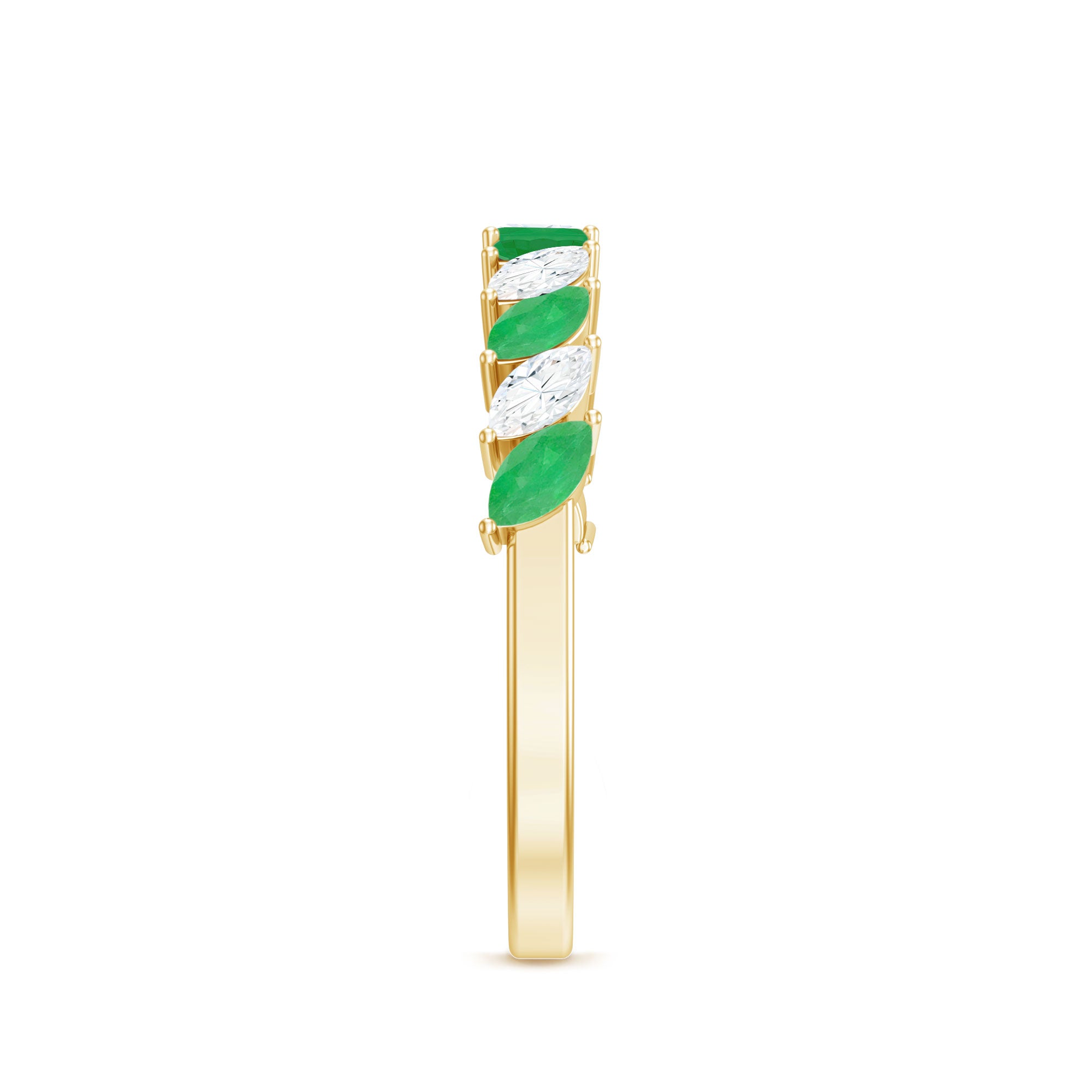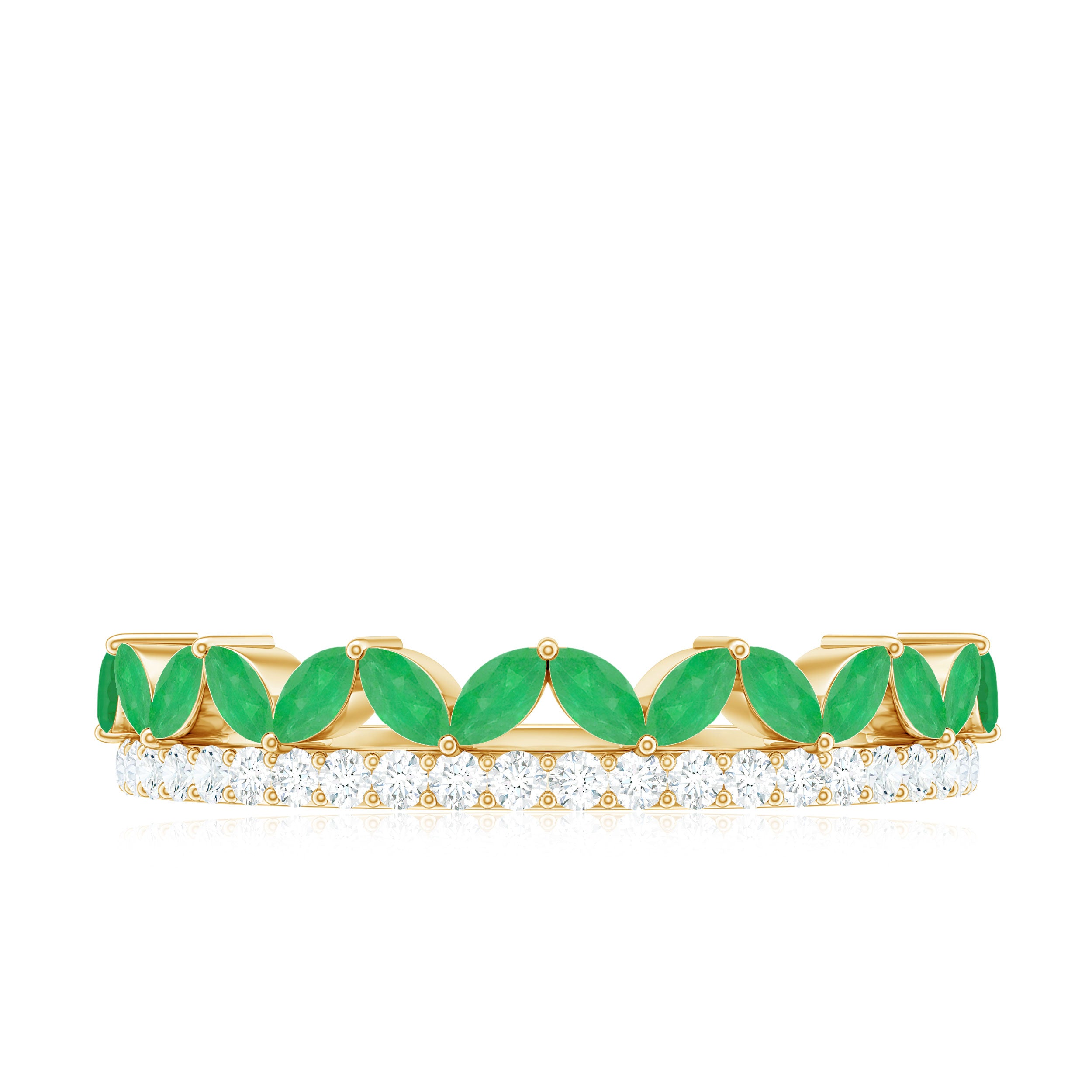 Marquise Wedding Bands: Marquise wedding bands would fascinate you with their timeless charm. Elongated gemstone with pointed tips in the ring stands out as a stylish piece with vintage glam. Scattered marquise as cluster rings or east-west set marquise diamond eternity bands are some of the elegant designs that add a whimsical touch.