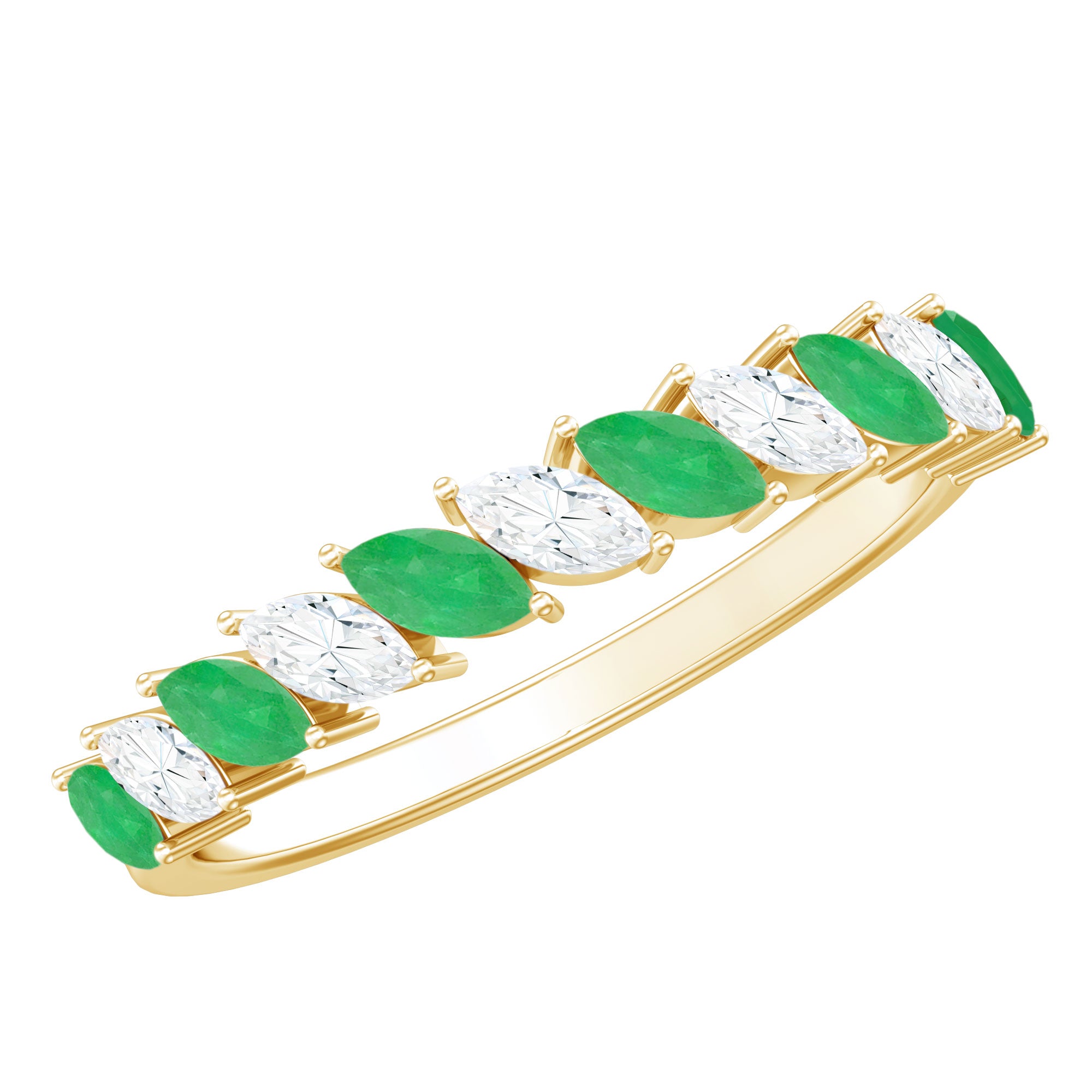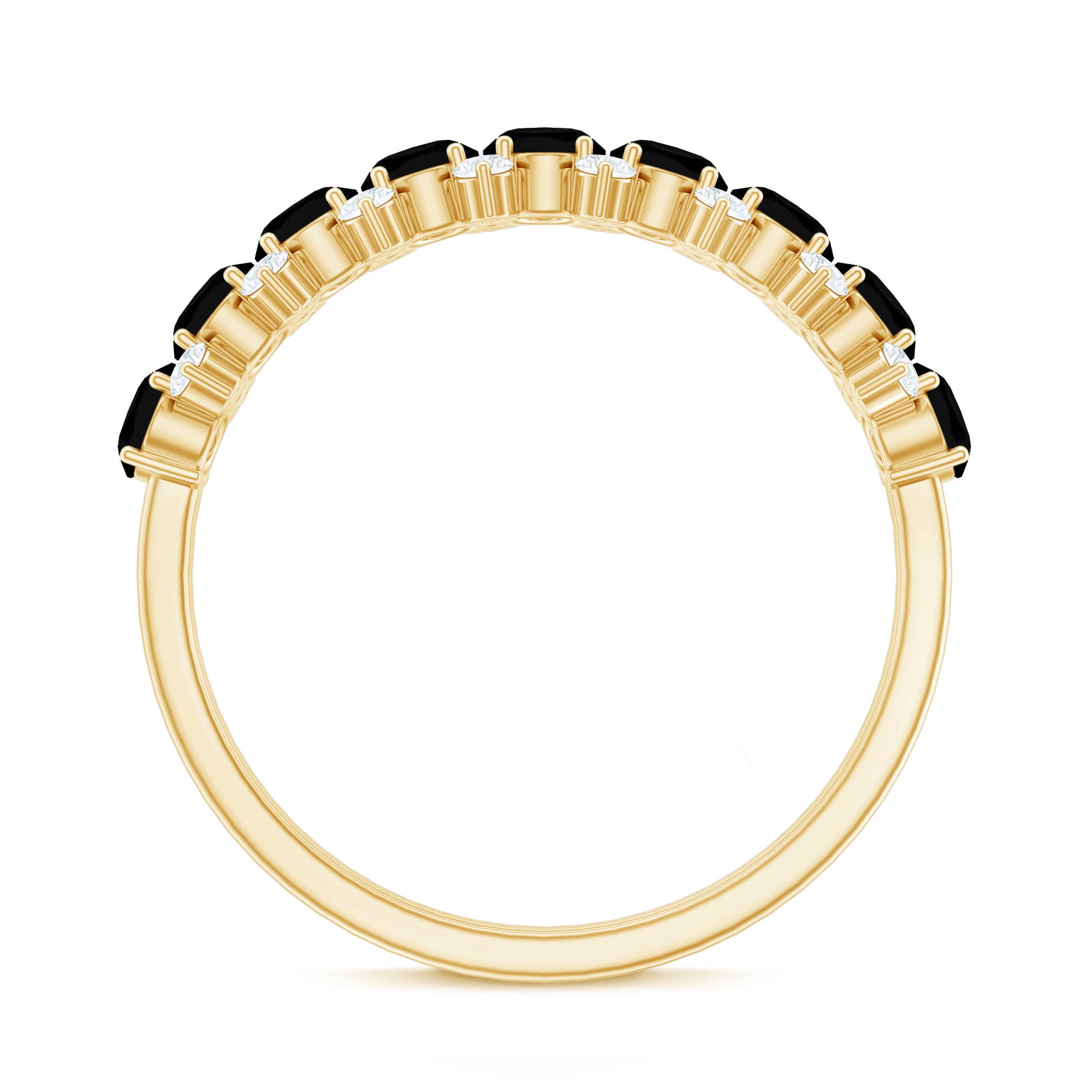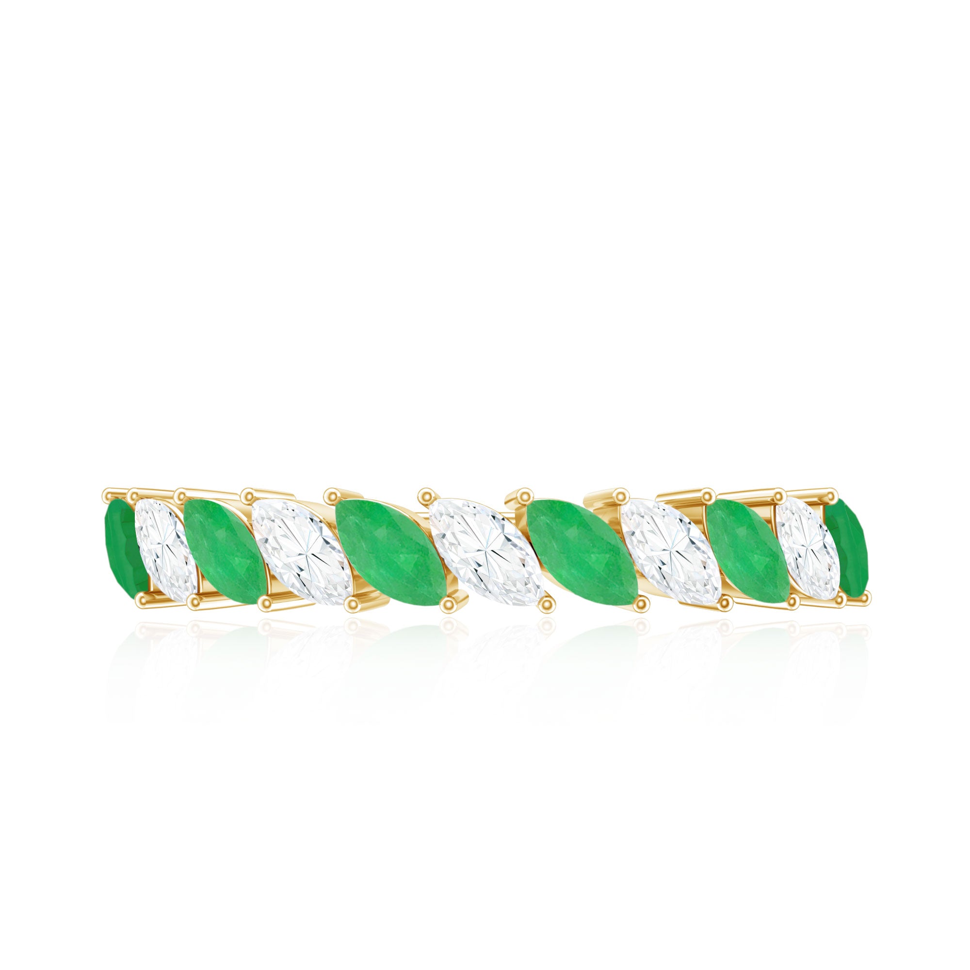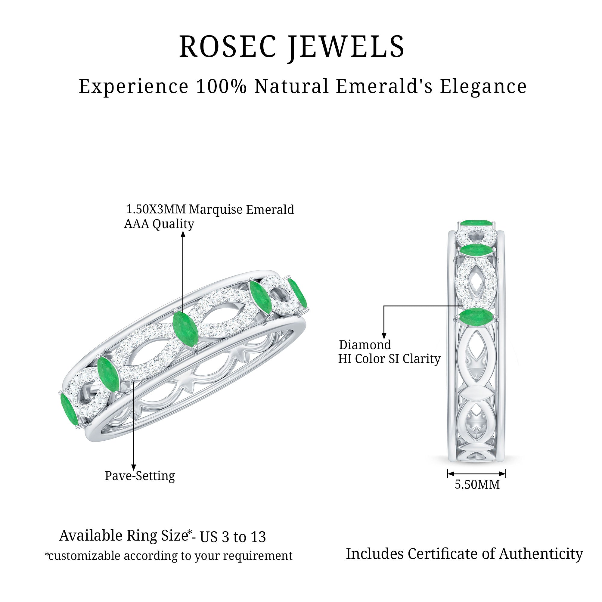 Marquise Wedding Bands: Marquise wedding bands would fascinate you with their timeless charm. Elongated gemstone with pointed tips in the ring stands out as a stylish piece with vintage glam. Scattered marquise as cluster rings or east-west set marquise diamond eternity bands are some of the elegant designs that add a whimsical touch.