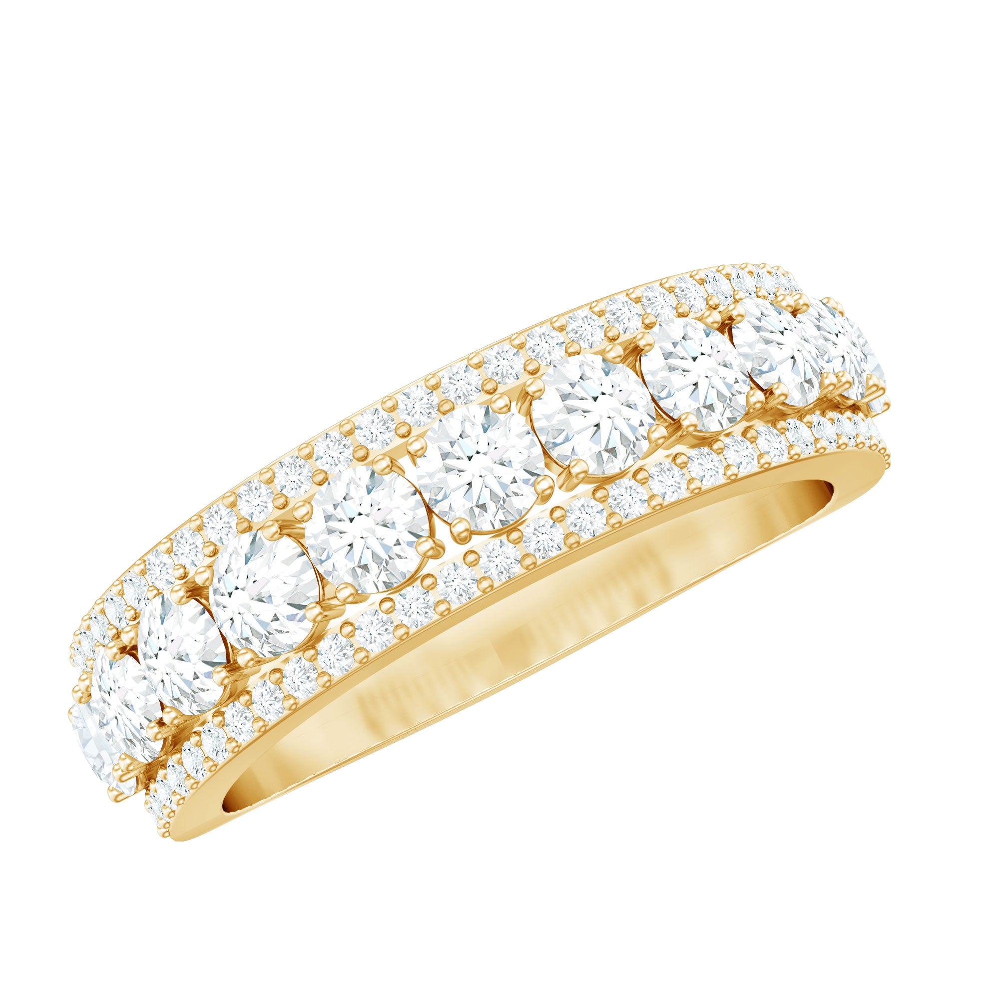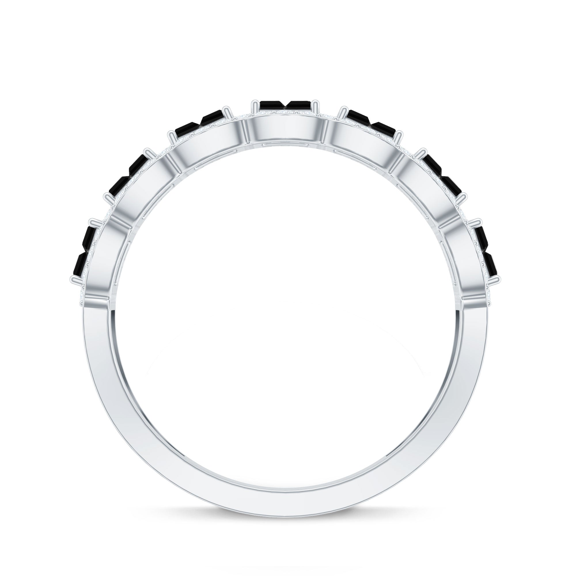 Heart Wedding Bands: Heart shaped moissanite wedding bands are usually the choice of romantic couples, who look for symbolism, besides meaning in their ring. Ruby hearts with alternate diamond hearts or topaz hearts side by side with their clefts facing opposite direction create stunning visual appeal. Explore more such heartfelt symbols in our wedding bands collection.