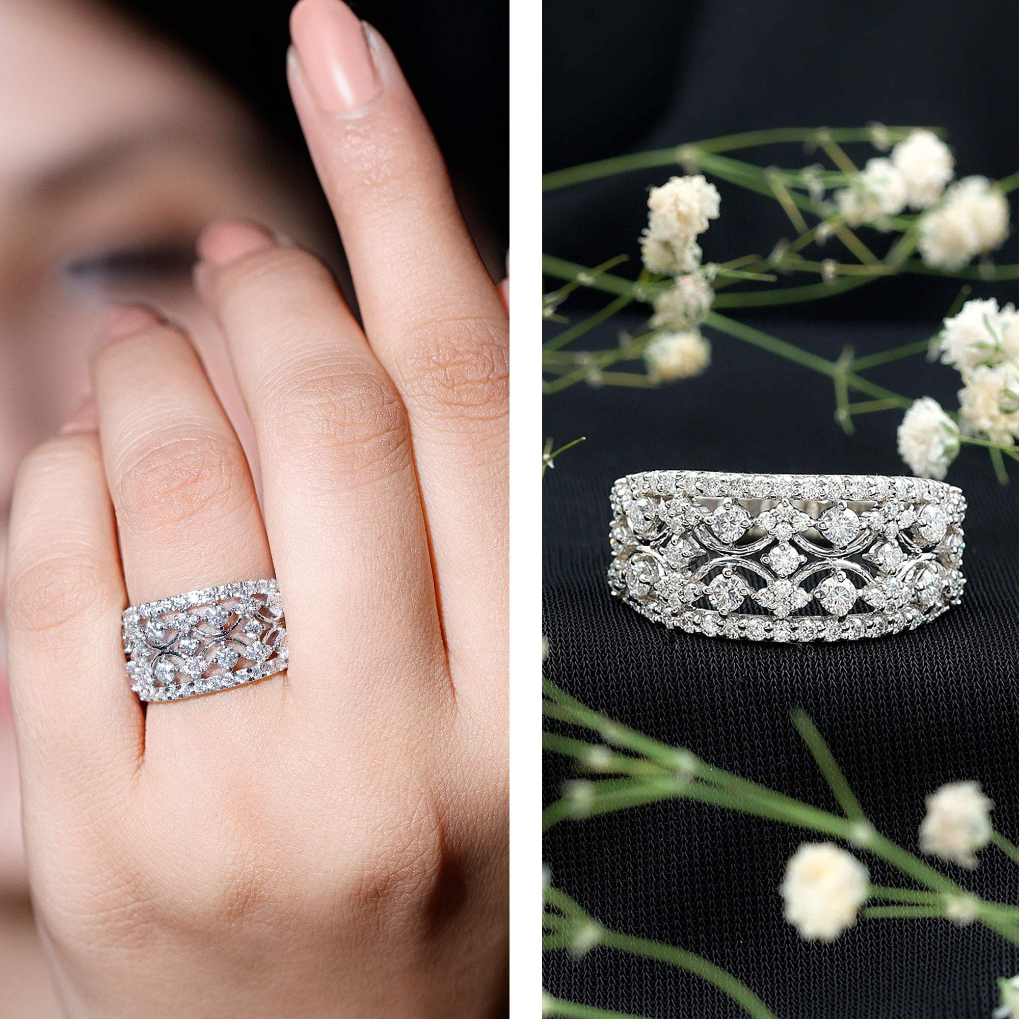 The ideal wedding bands for women can be 2MM to 8 MM in width. 2-3 MM can be a good choice if you are looking for a band for your minimalist ring. 4-5 MM is generally a standard choice for all types of rings. 6-8 MM bandwidth should be your choice if you love bold statement rings.