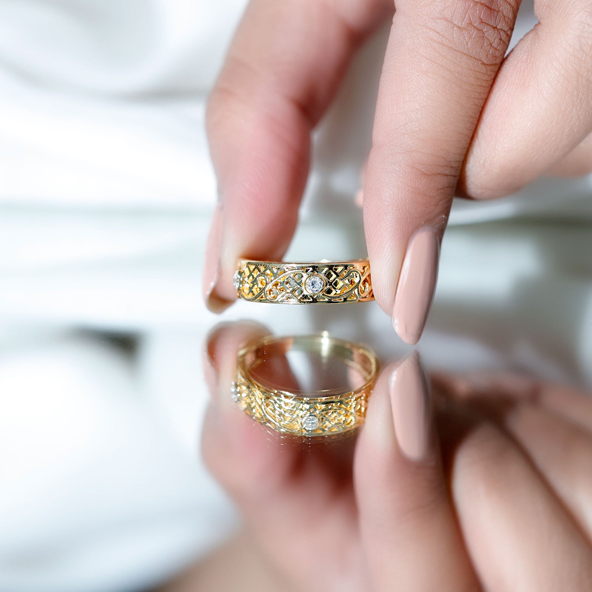 - Hallmarked Gold: The gold used for crafting the eternity rings should be hallmarked to certify the purity of gold that is 10K, 14K and 18 K.